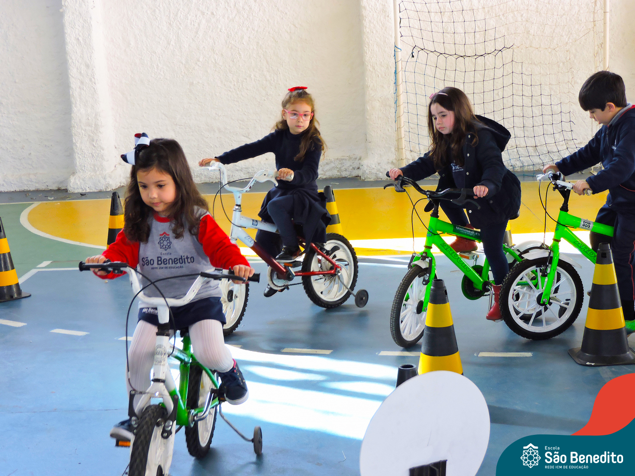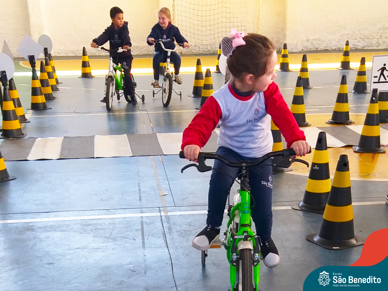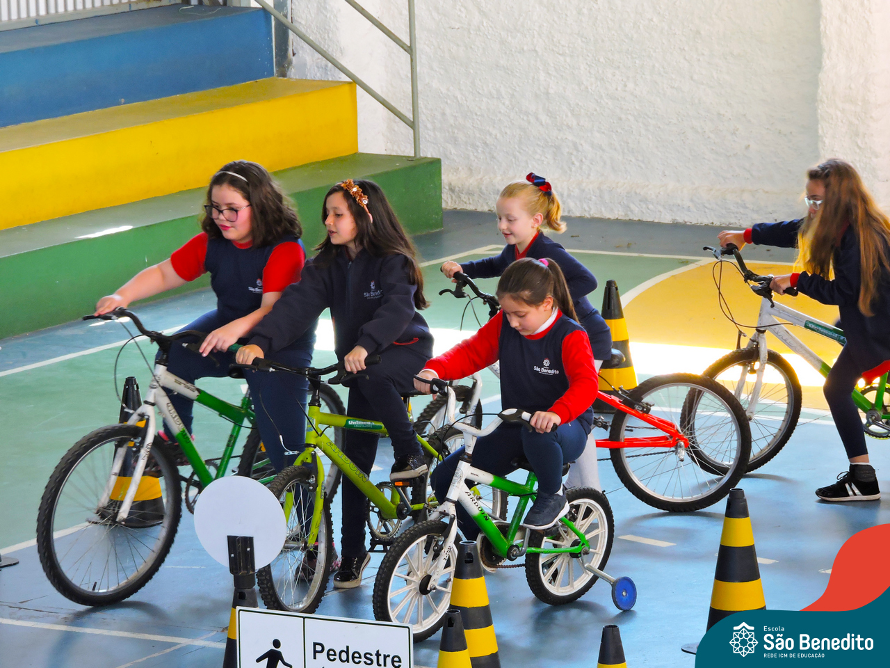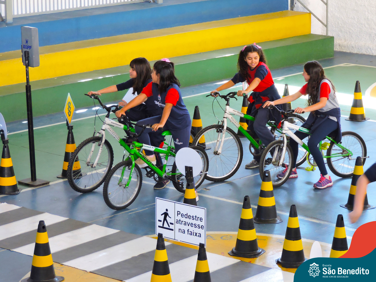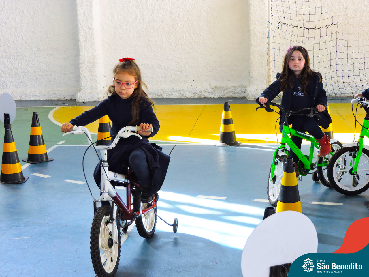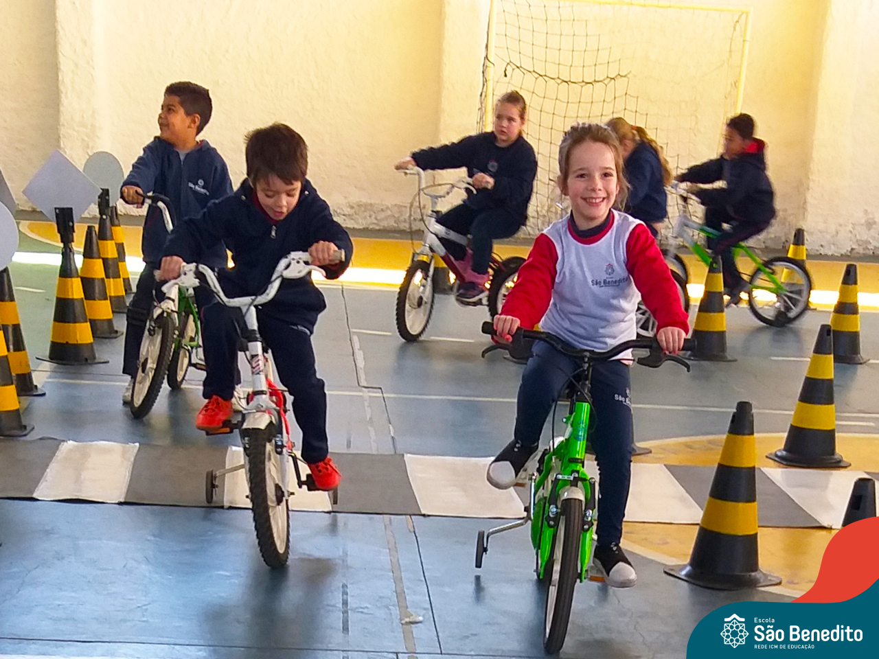 Os alunos da Educação Infantil até o 6º Ano, participaram de um circuito que simula o trânsito, que foi montado na quadra da Escola. Esse é o projeto “Escolinha de Trânsito”, do 2º BRBM.