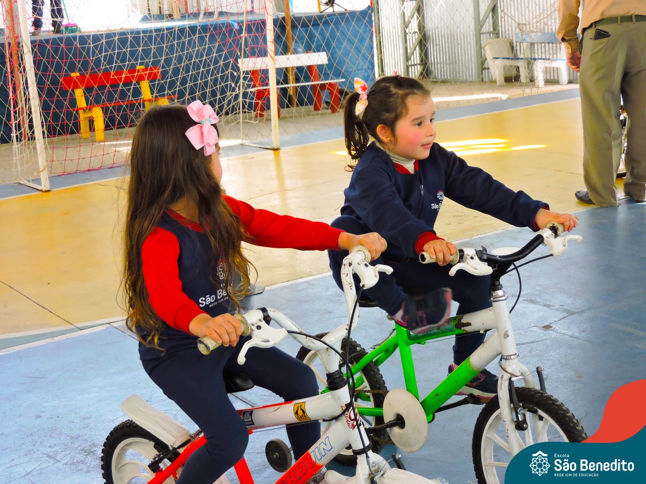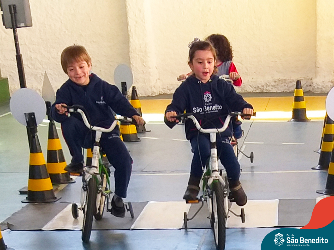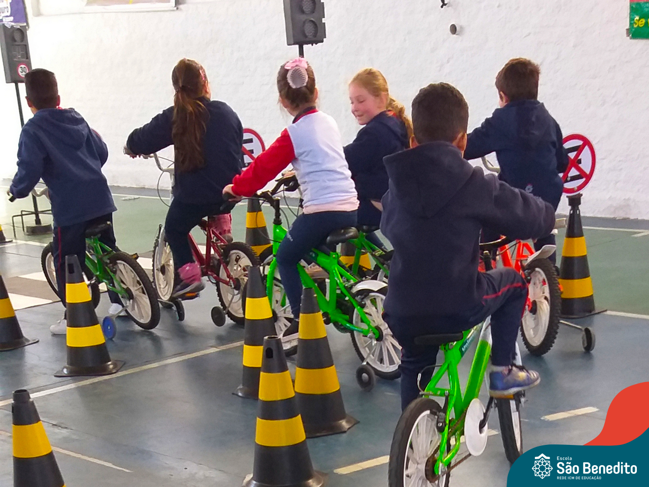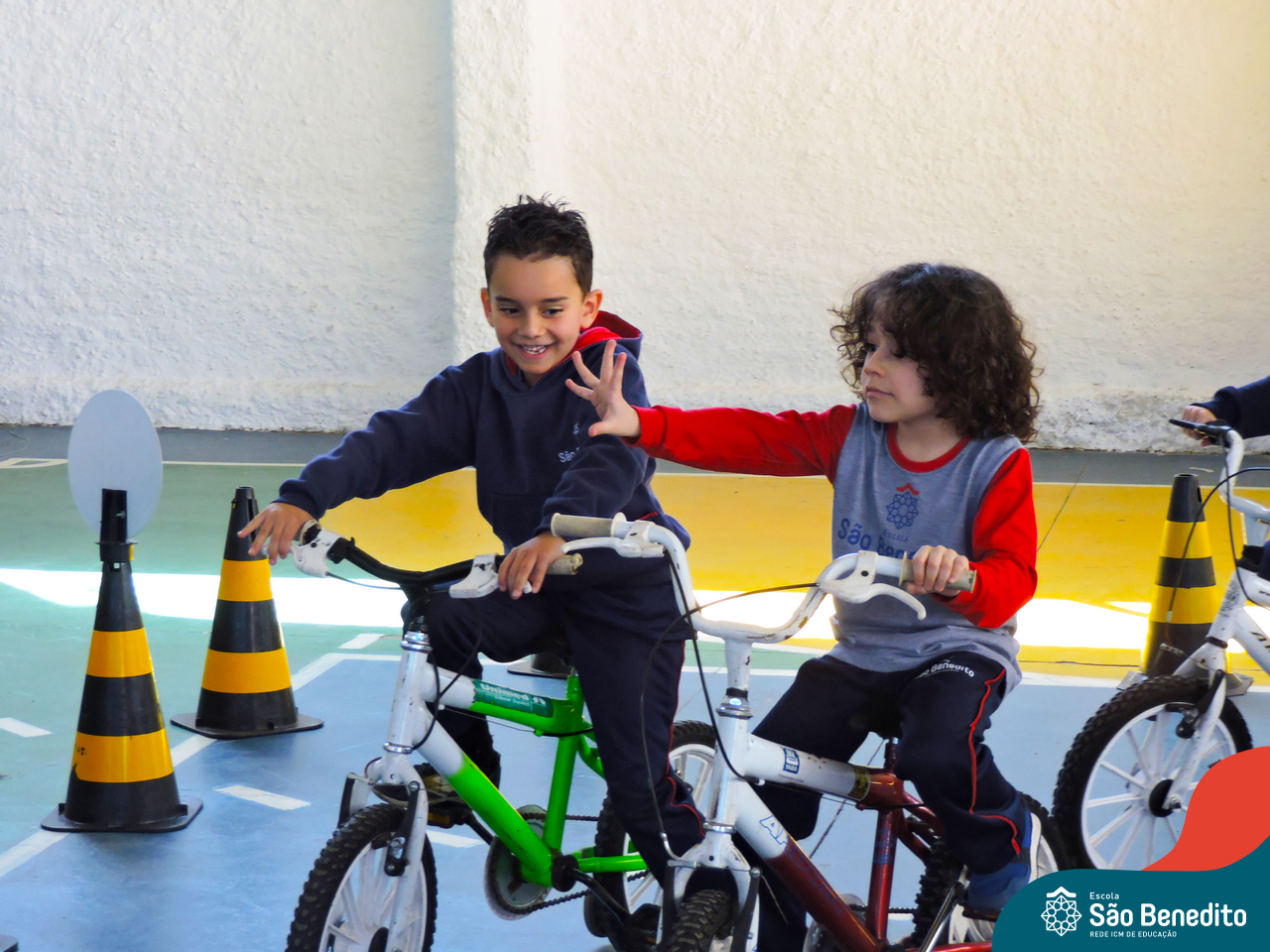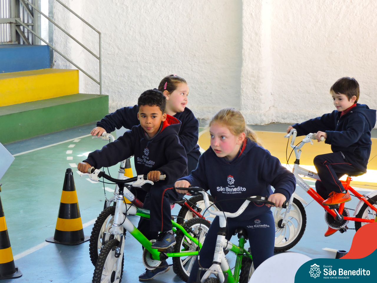 Os alunos da Educação Infantil até o 6º Ano, participaram de um circuito que simula o trânsito, que foi montado na quadra da Escola. Esse é o projeto “Escolinha de Trânsito”, do 2º BRBM.
