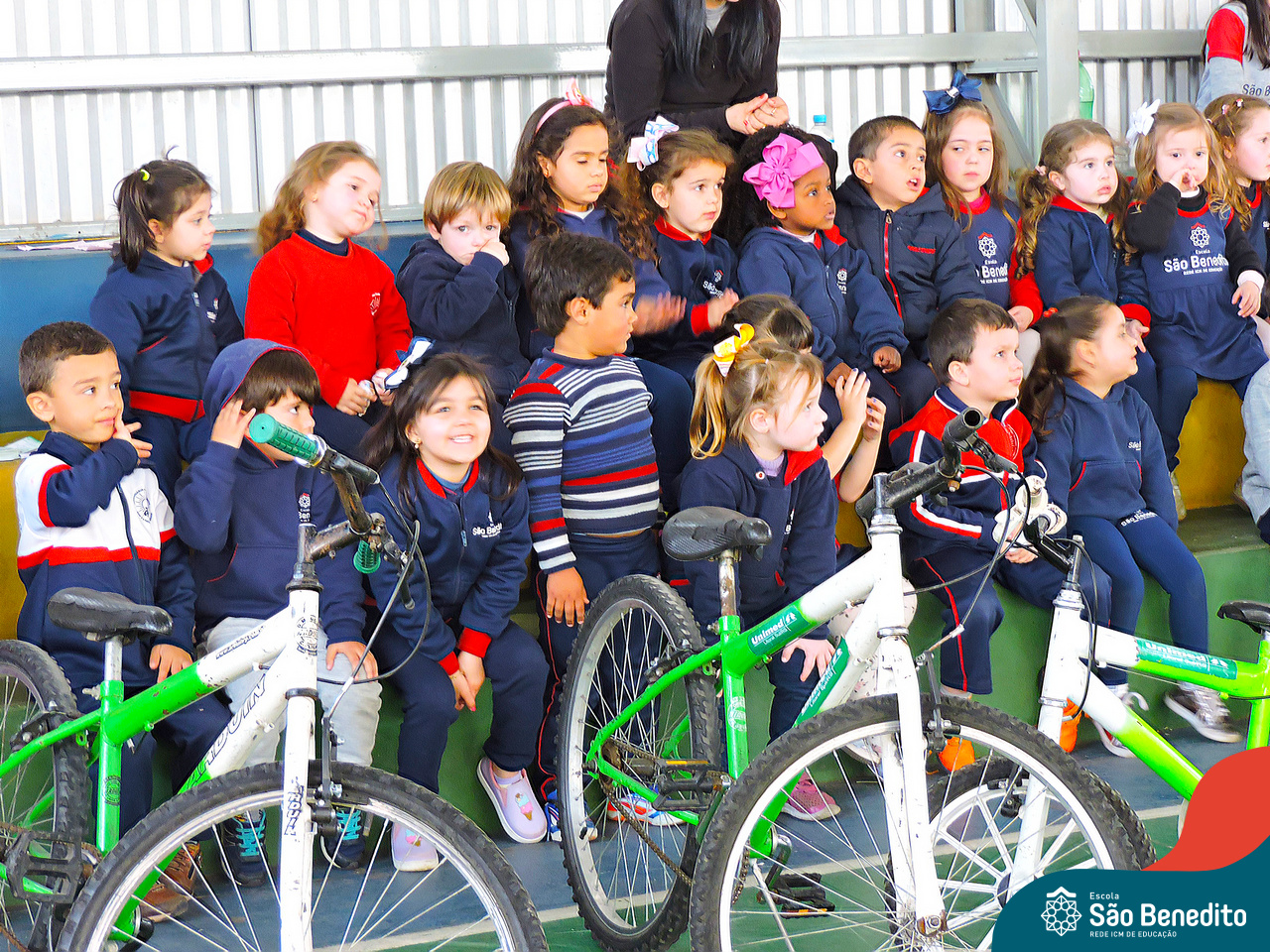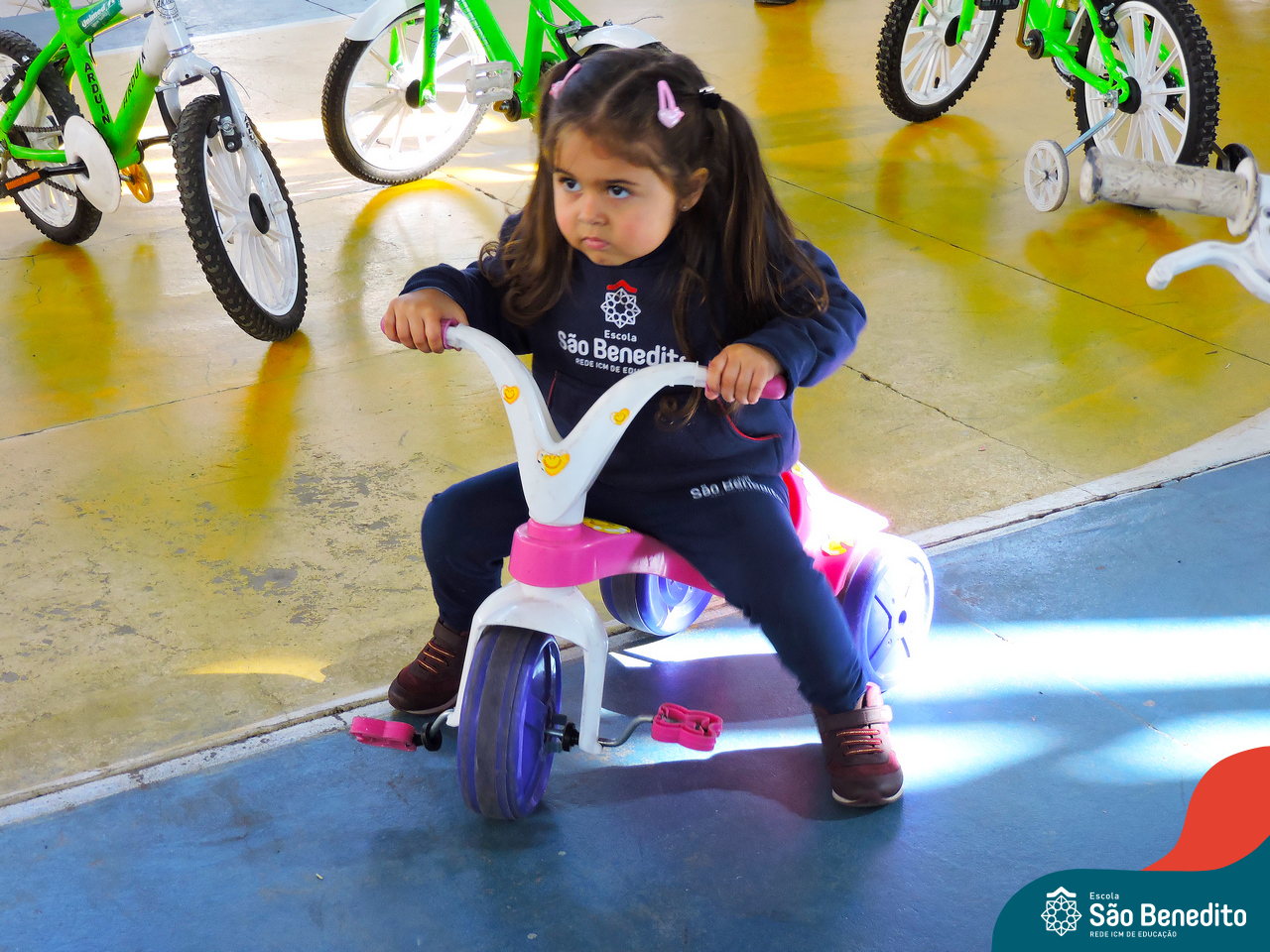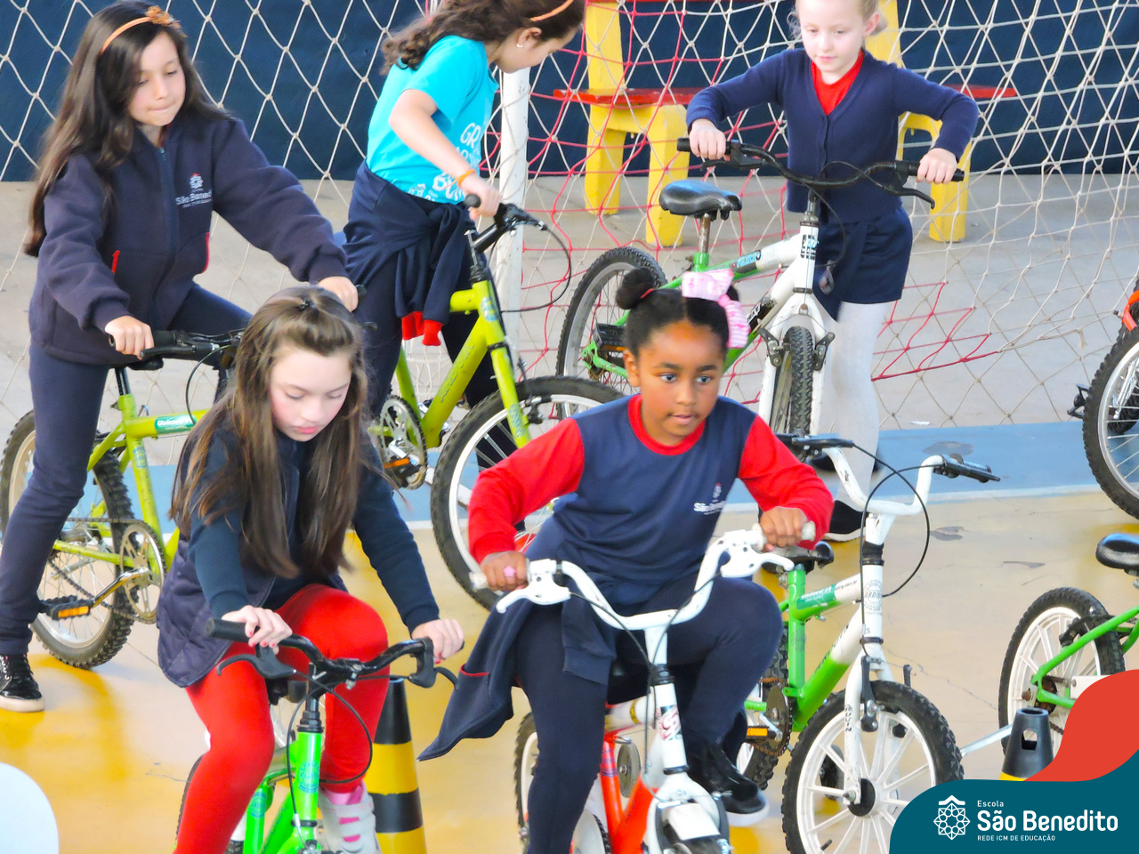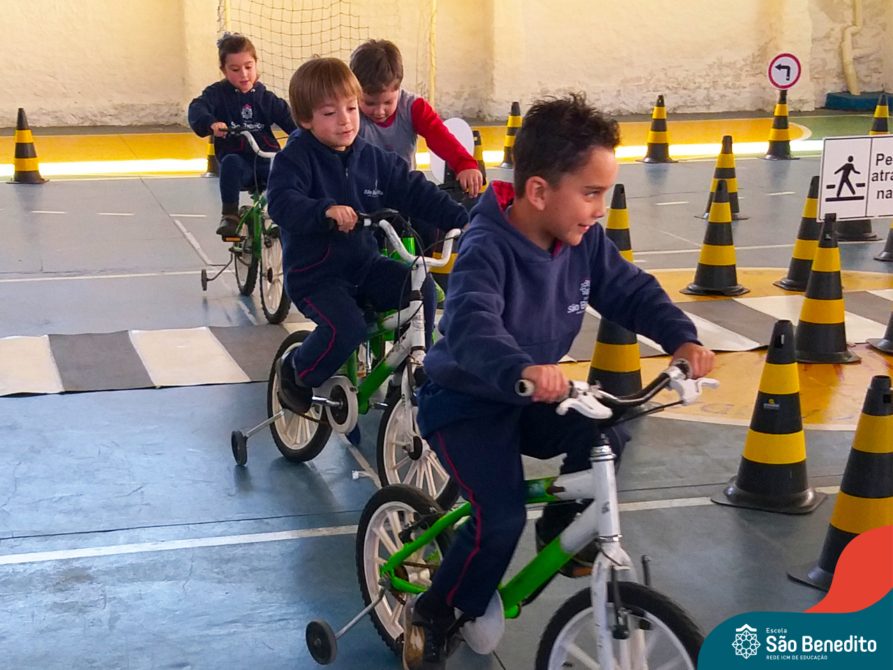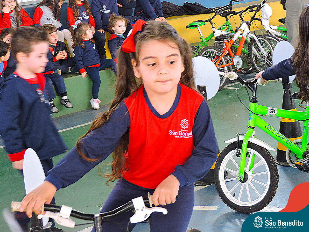 Os alunos da Educação Infantil até o 6º Ano, participaram de um circuito que simula o trânsito, que foi montado na quadra da Escola. Esse é o projeto “Escolinha de Trânsito”, do 2º BRBM.