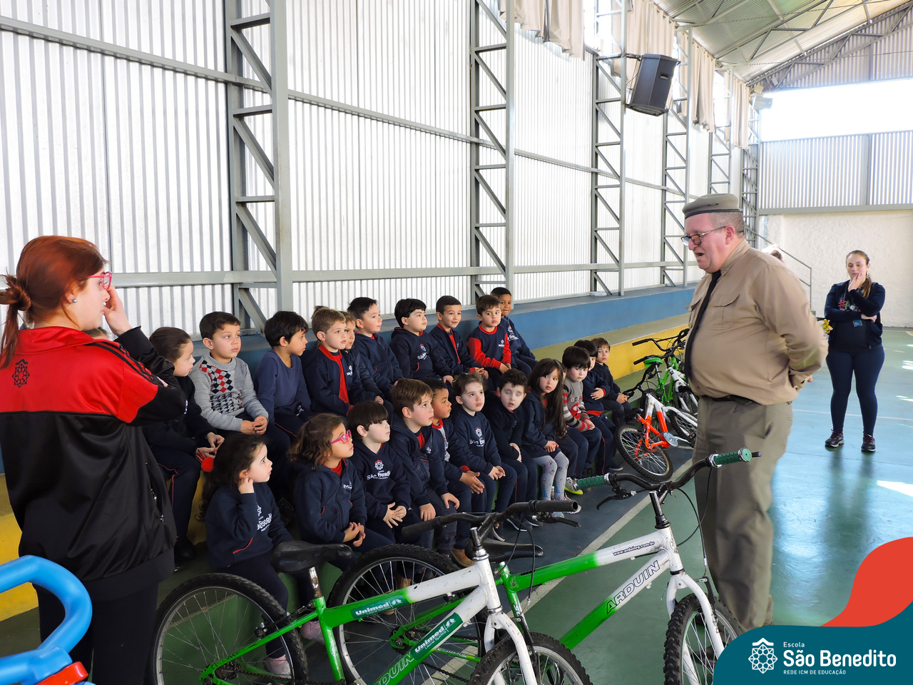 Os alunos puderam aprender as noções básicas de trânsito: os sinais, como atravessar a rua com segurança, quando devem parar, como ser um bom pedestre e um bom motorista. O responsável que compartilhou conhecimento através da aula prática instrutiva, foi o 2º Sargento PME Delmar De Azevedo.