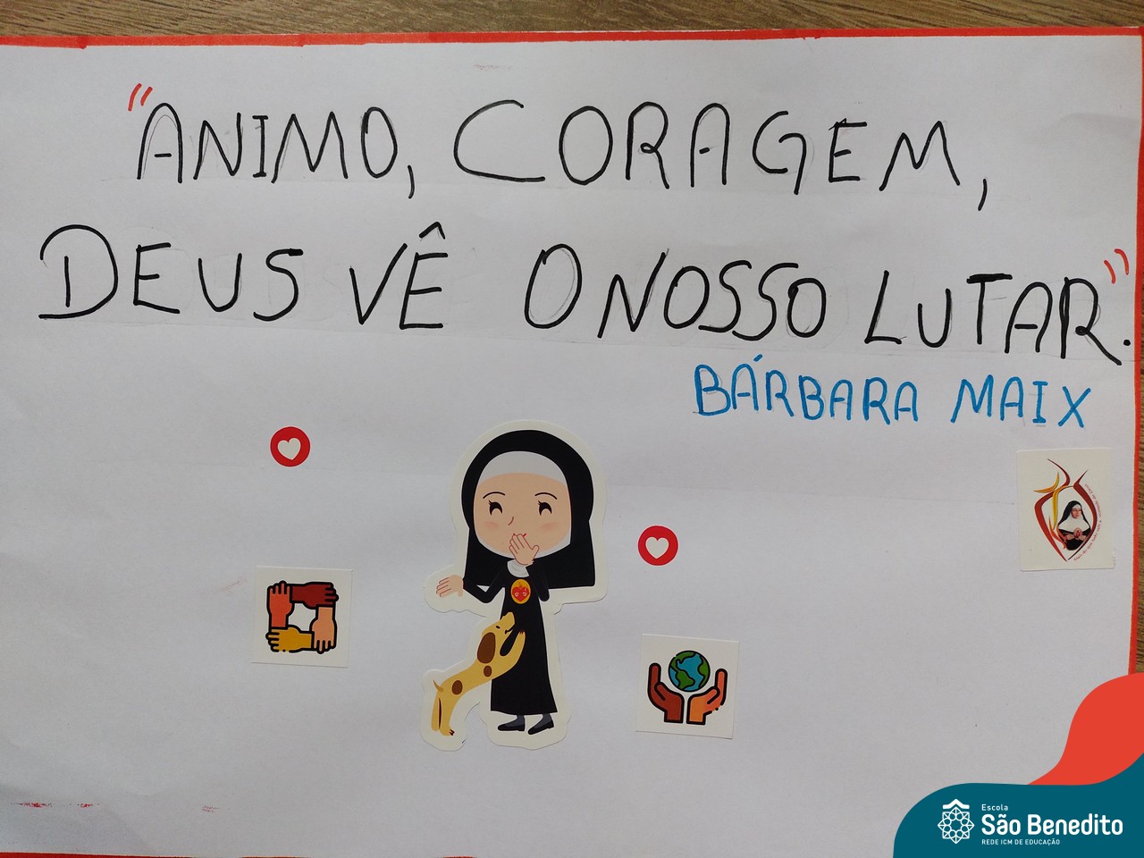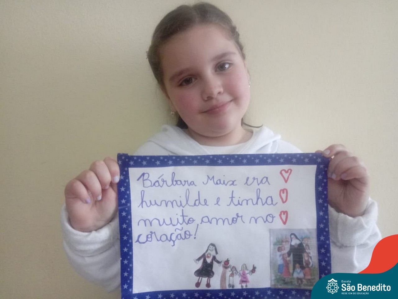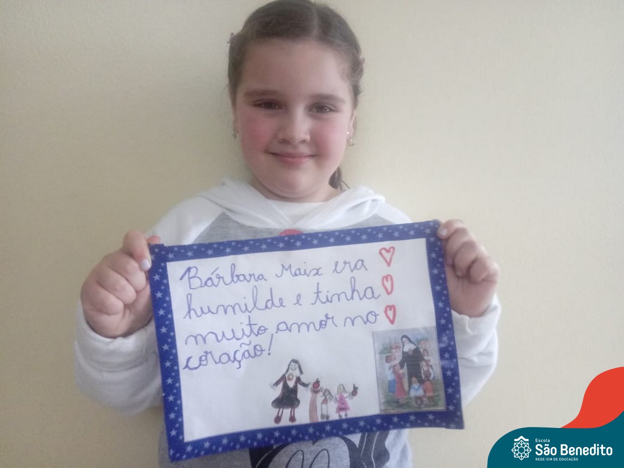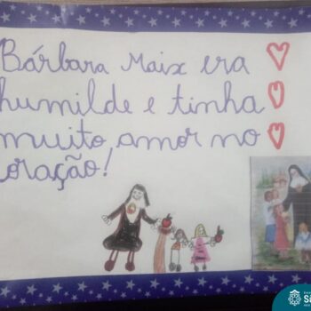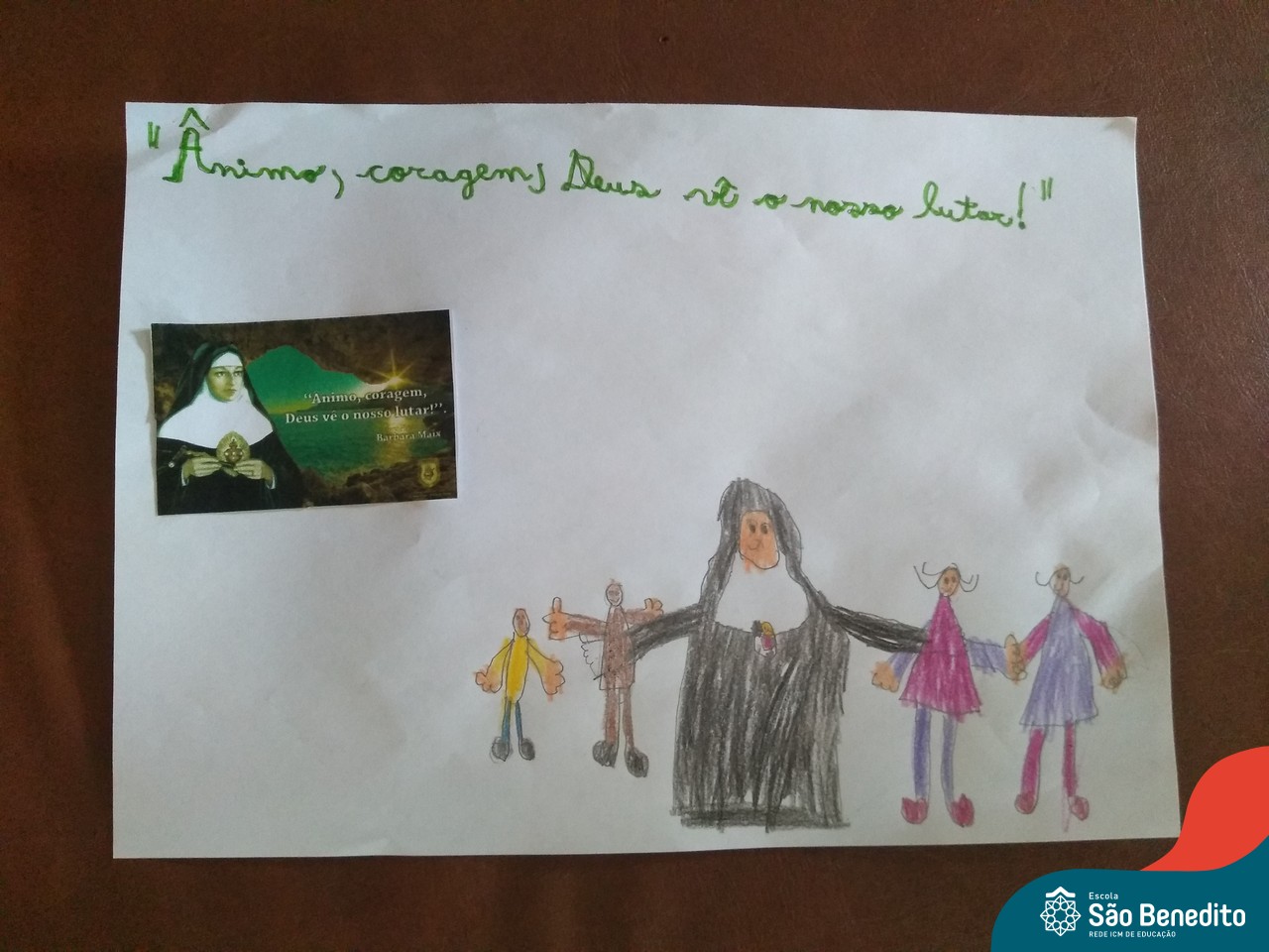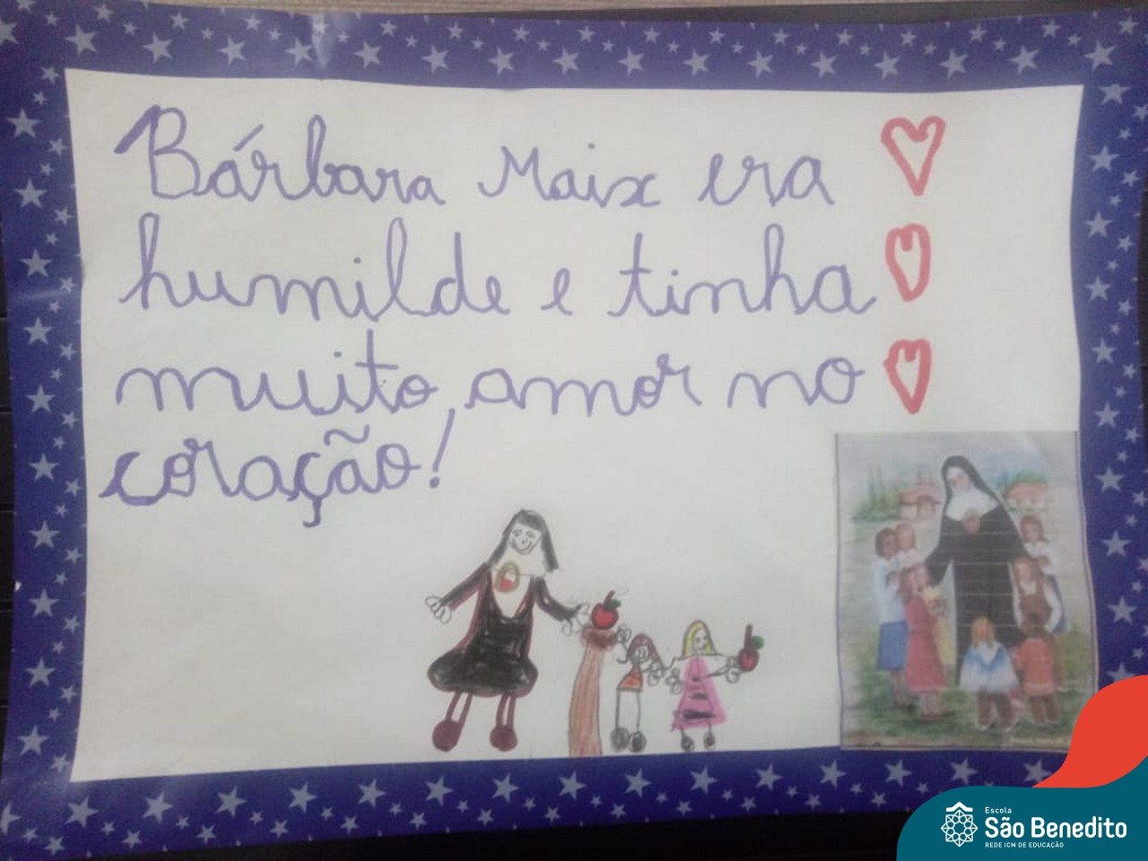 Os alunos do 2º Ano encerraram suas atividades sobre a vida da Bem-Aventurada Bárbara Maix com uma pesquisa. Cada um foi convidado a encontrar uma frase de Bárbara, que tivesse uma mensagem significativa para si, e representá-la através de um desenho.