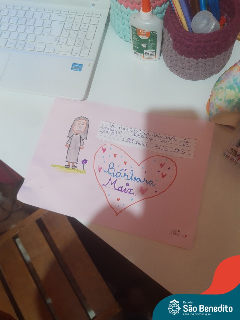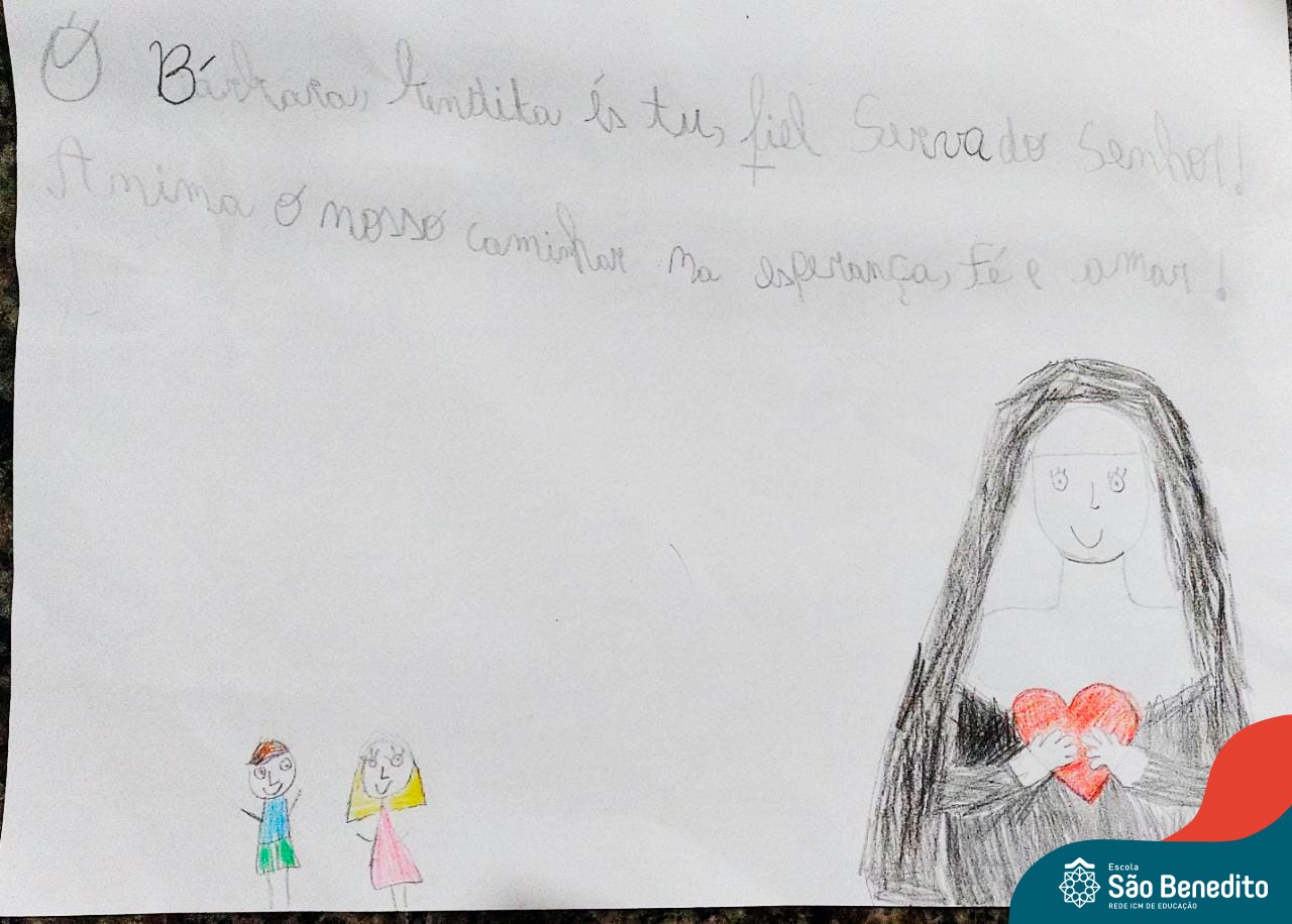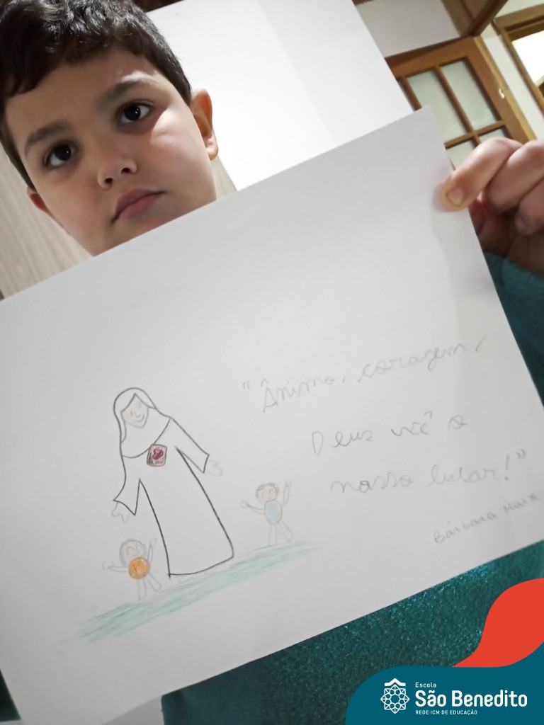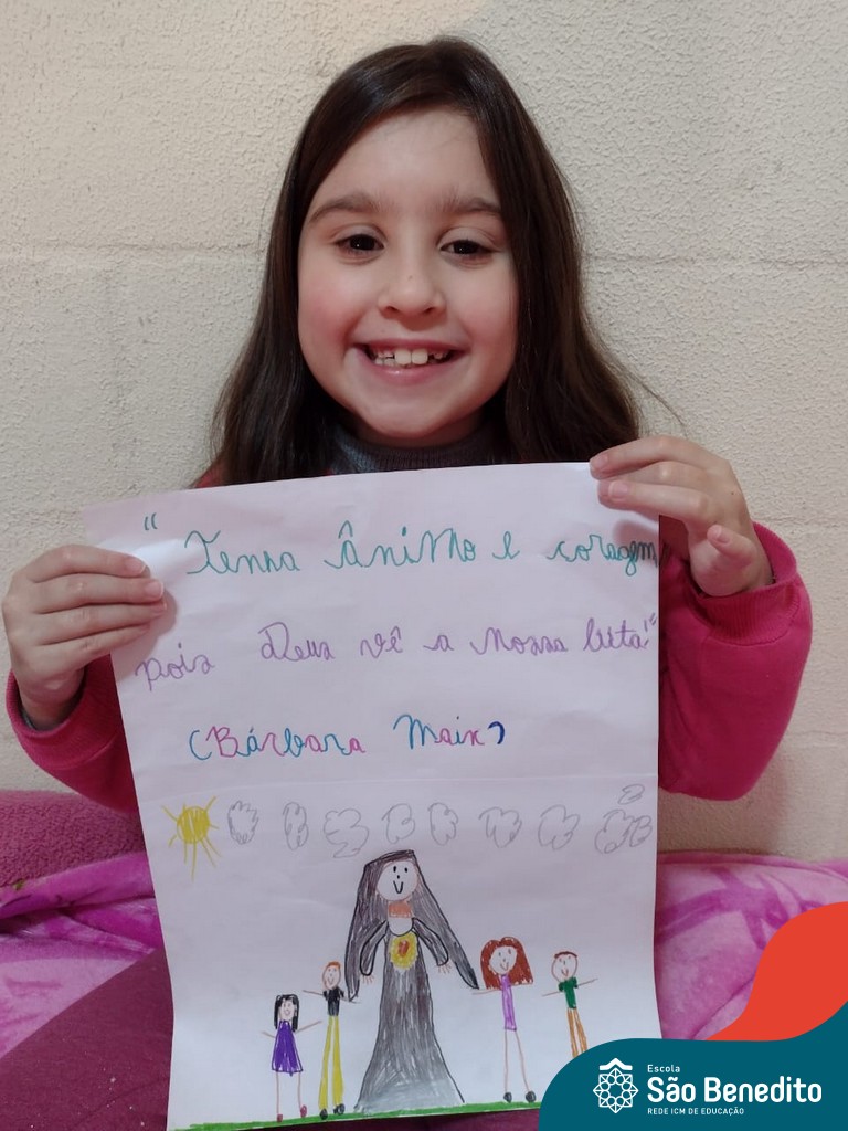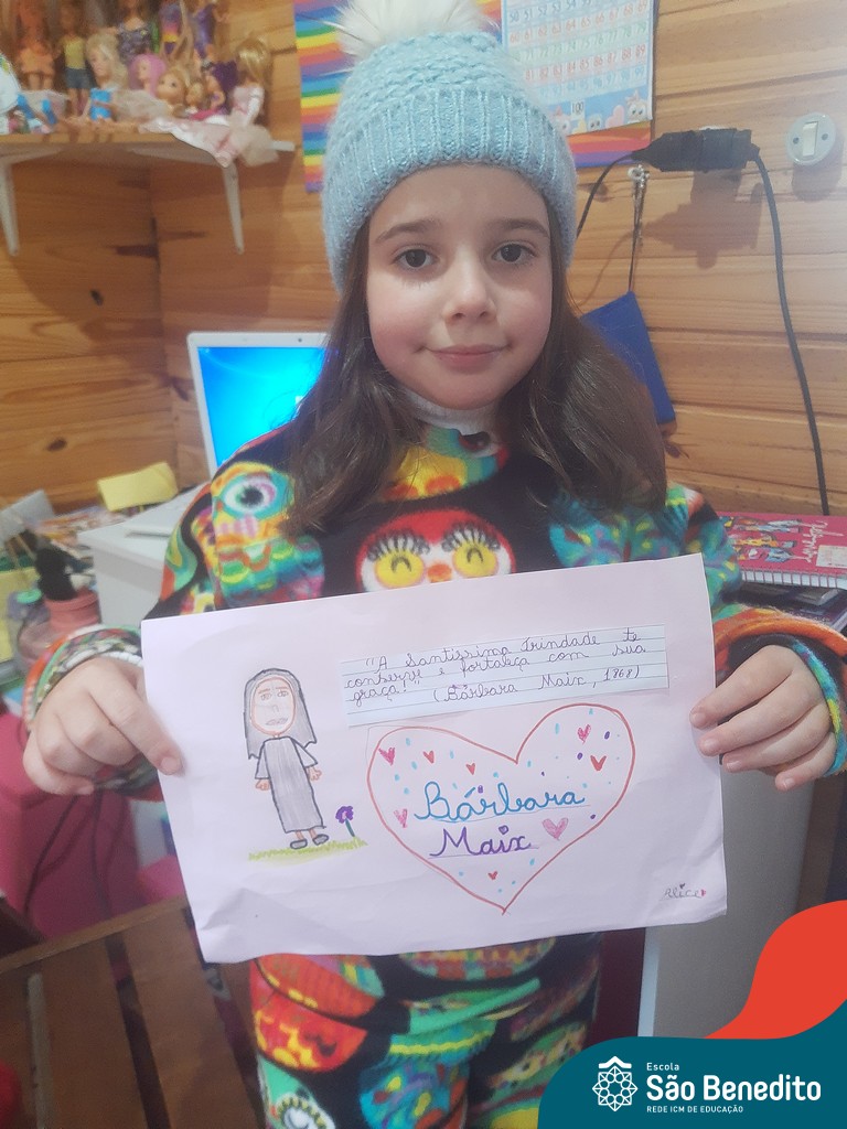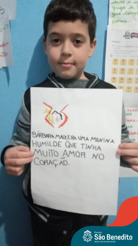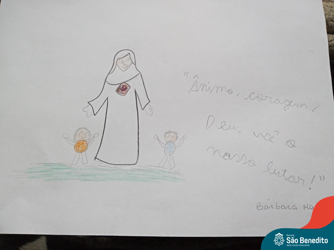 Os alunos do 2º Ano encerraram suas atividades sobre a vida da Bem-Aventurada Bárbara Maix com uma pesquisa. Cada um foi convidado a encontrar uma frase de Bárbara, que tivesse uma mensagem significativa para si, e representá-la através de um desenho.