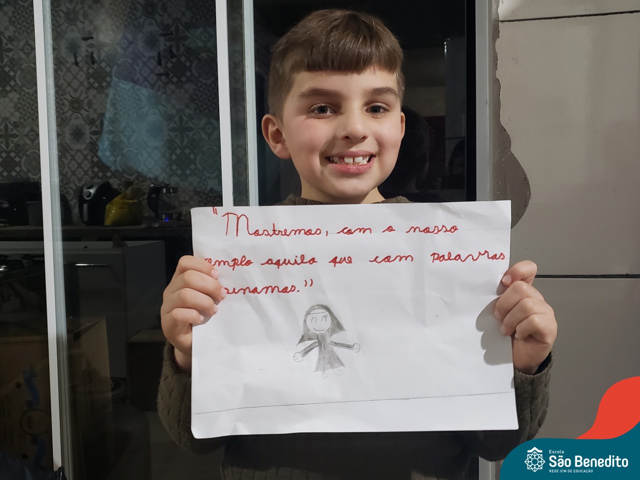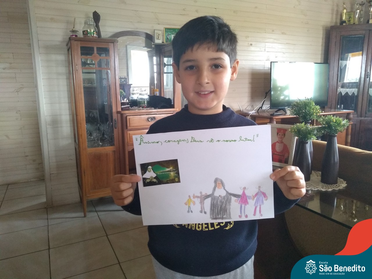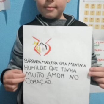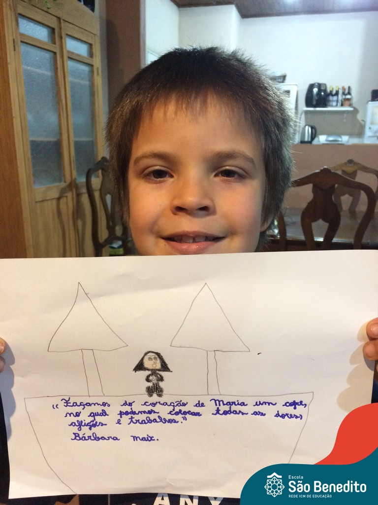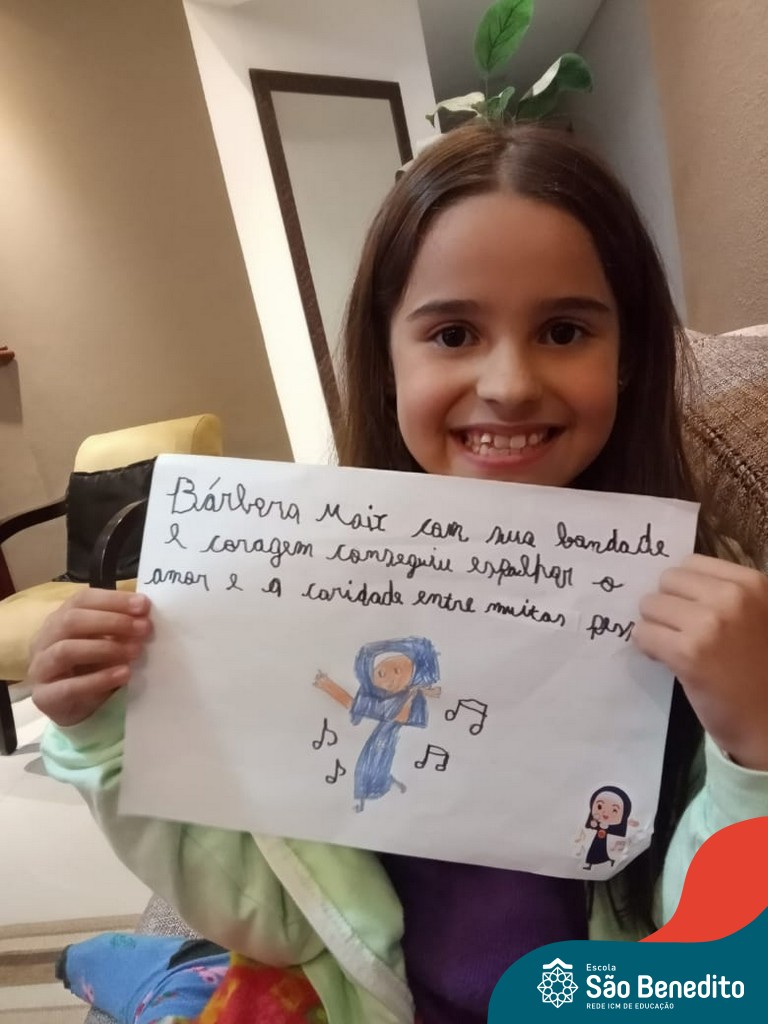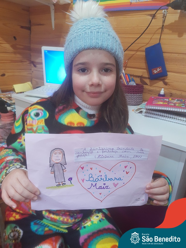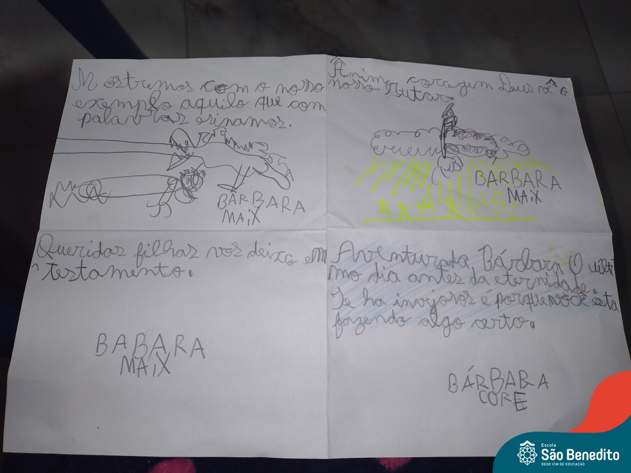 Os alunos do 2º Ano encerraram suas atividades sobre a vida da Bem-Aventurada Bárbara Maix com uma pesquisa. Cada um foi convidado a encontrar uma frase de Bárbara, que tivesse uma mensagem significativa para si, e representá-la através de um desenho.