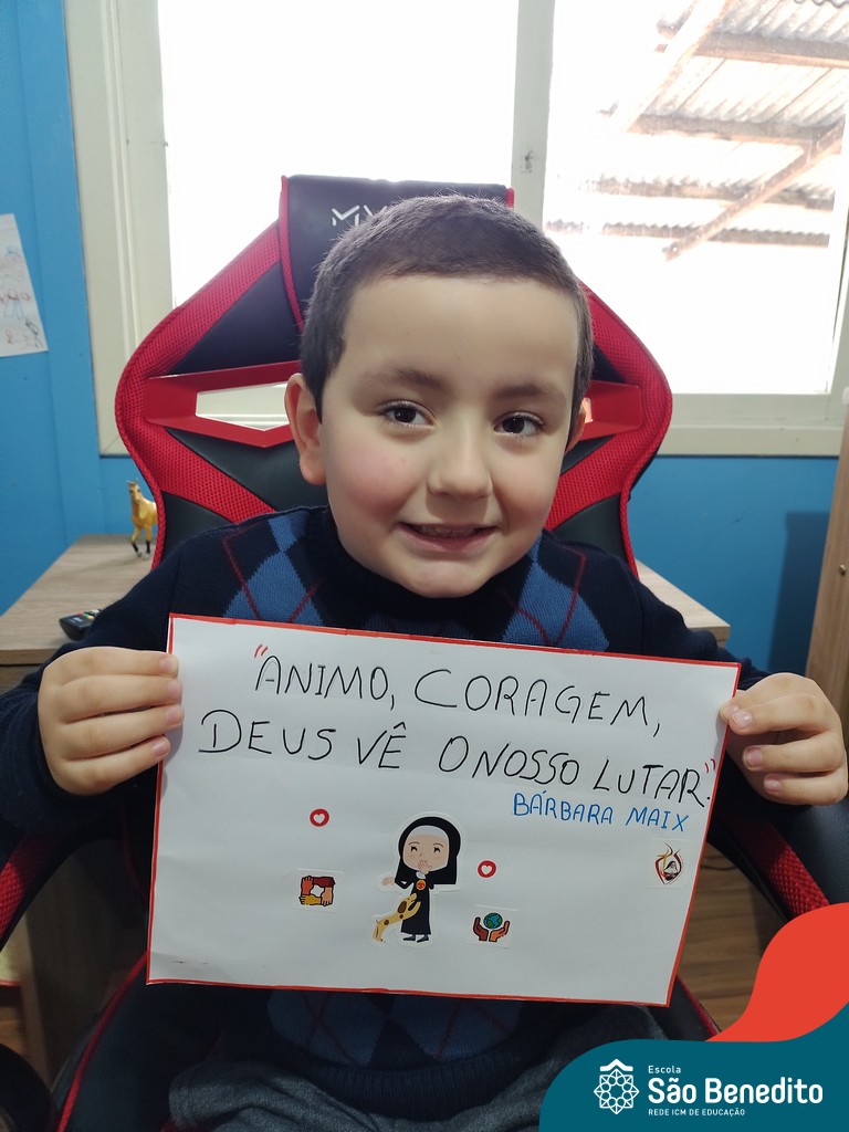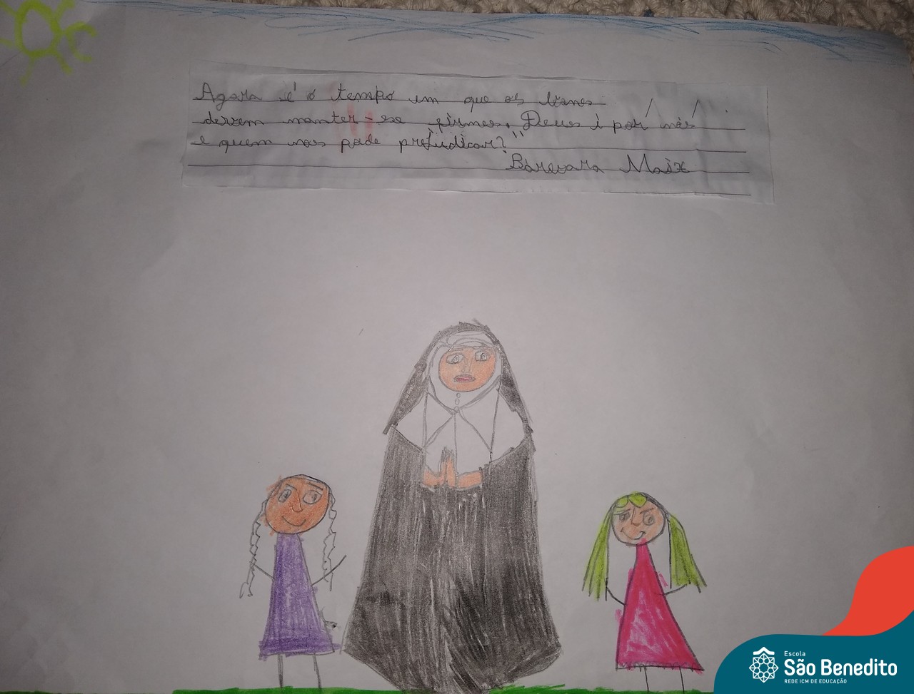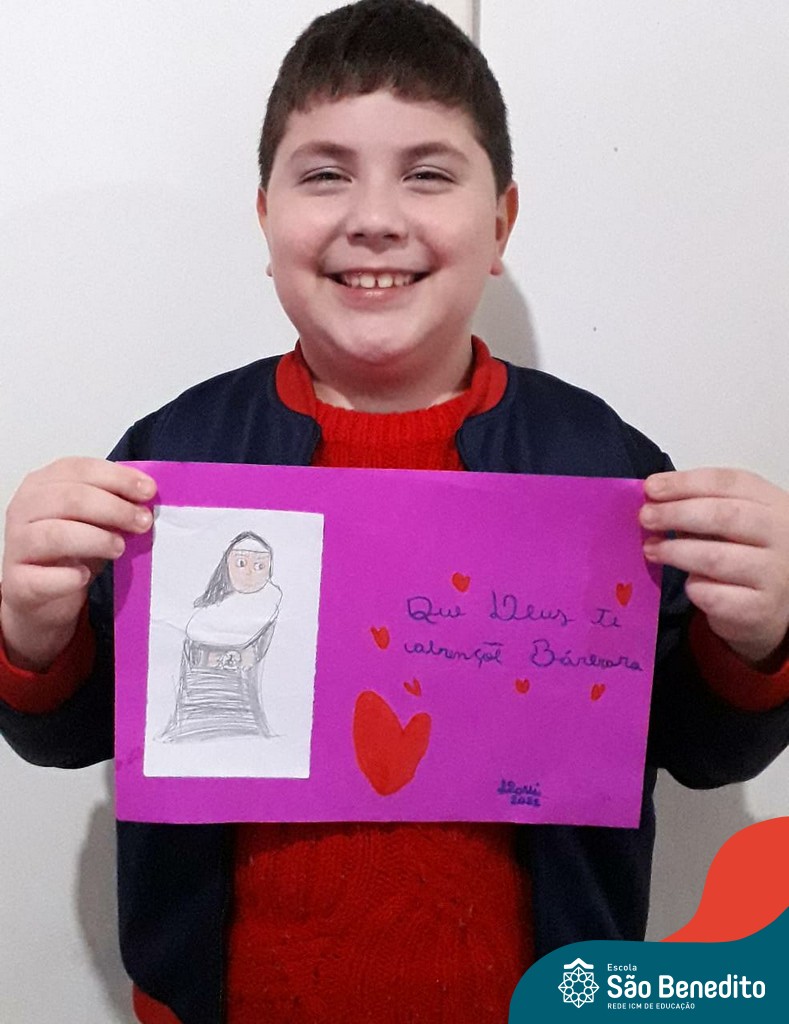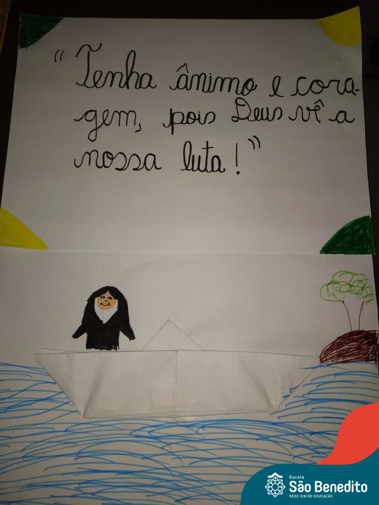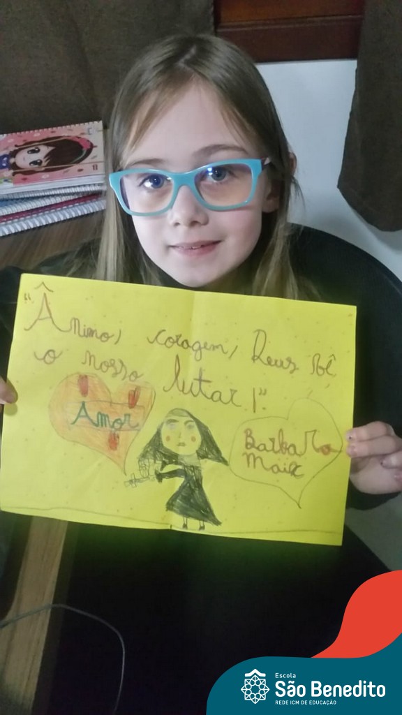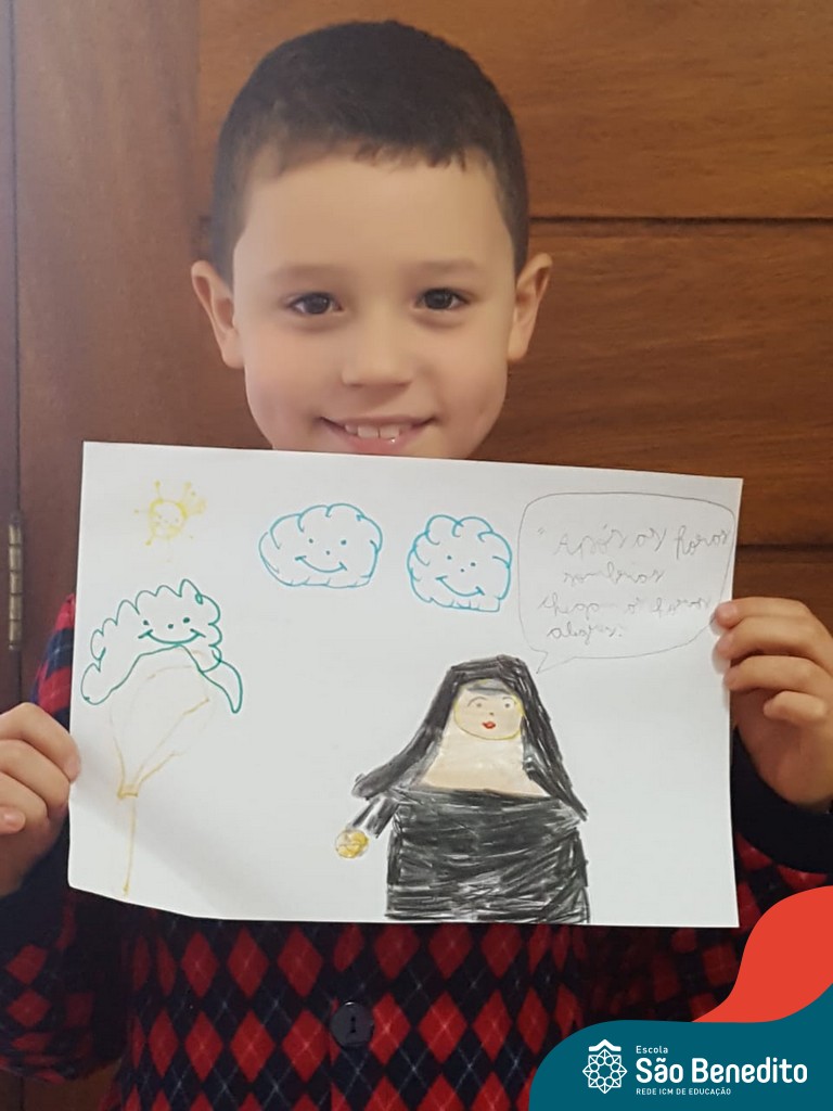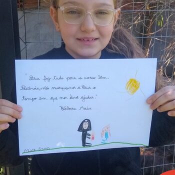 Os alunos do 2º Ano encerraram suas atividades sobre a vida da Bem-Aventurada Bárbara Maix com uma pesquisa. Cada um foi convidado a encontrar uma frase de Bárbara, que tivesse uma mensagem significativa para si, e representá-la através de um desenho.