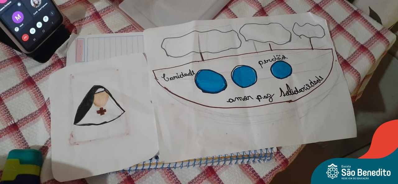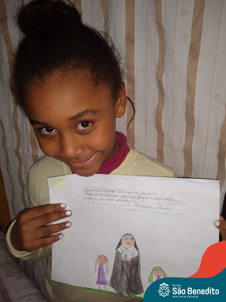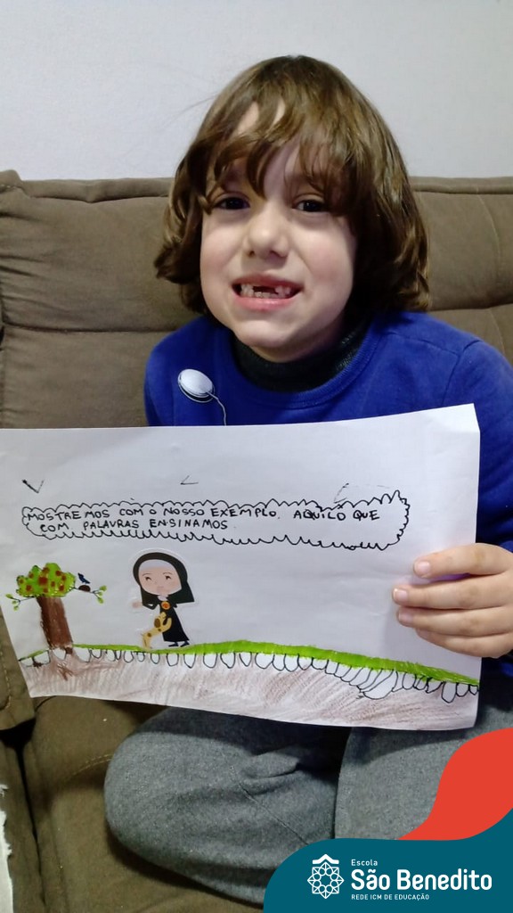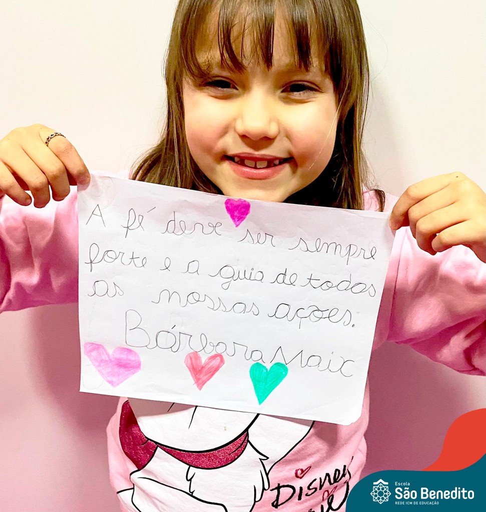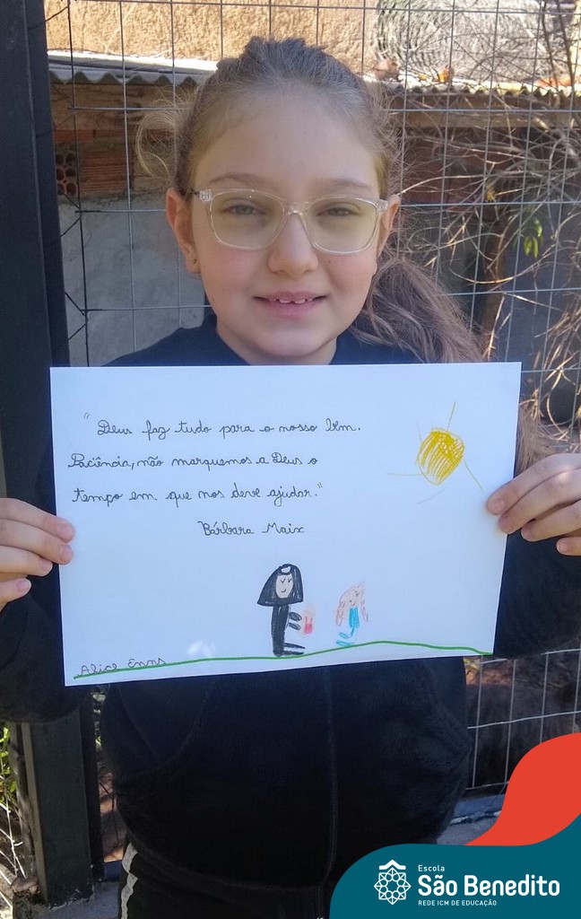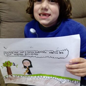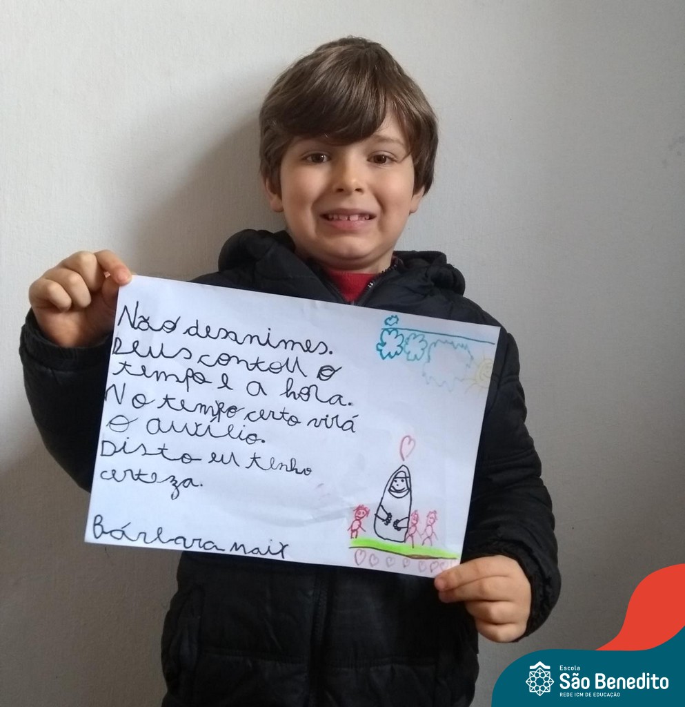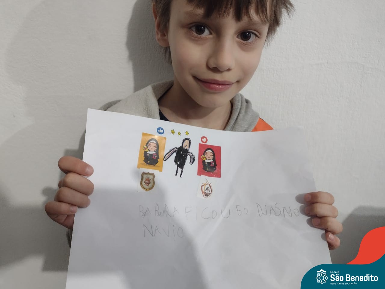 Os alunos do 2º Ano encerraram suas atividades sobre a vida da Bem-Aventurada Bárbara Maix com uma pesquisa. Cada um foi convidado a encontrar uma frase de Bárbara, que tivesse uma mensagem significativa para si, e representá-la através de um desenho.
