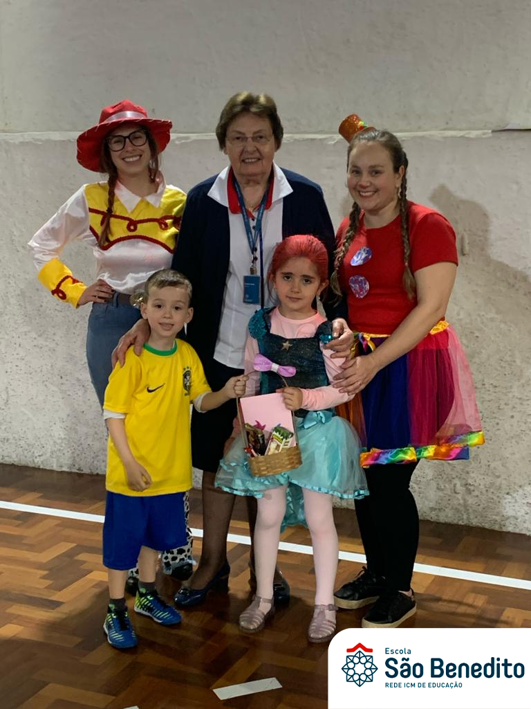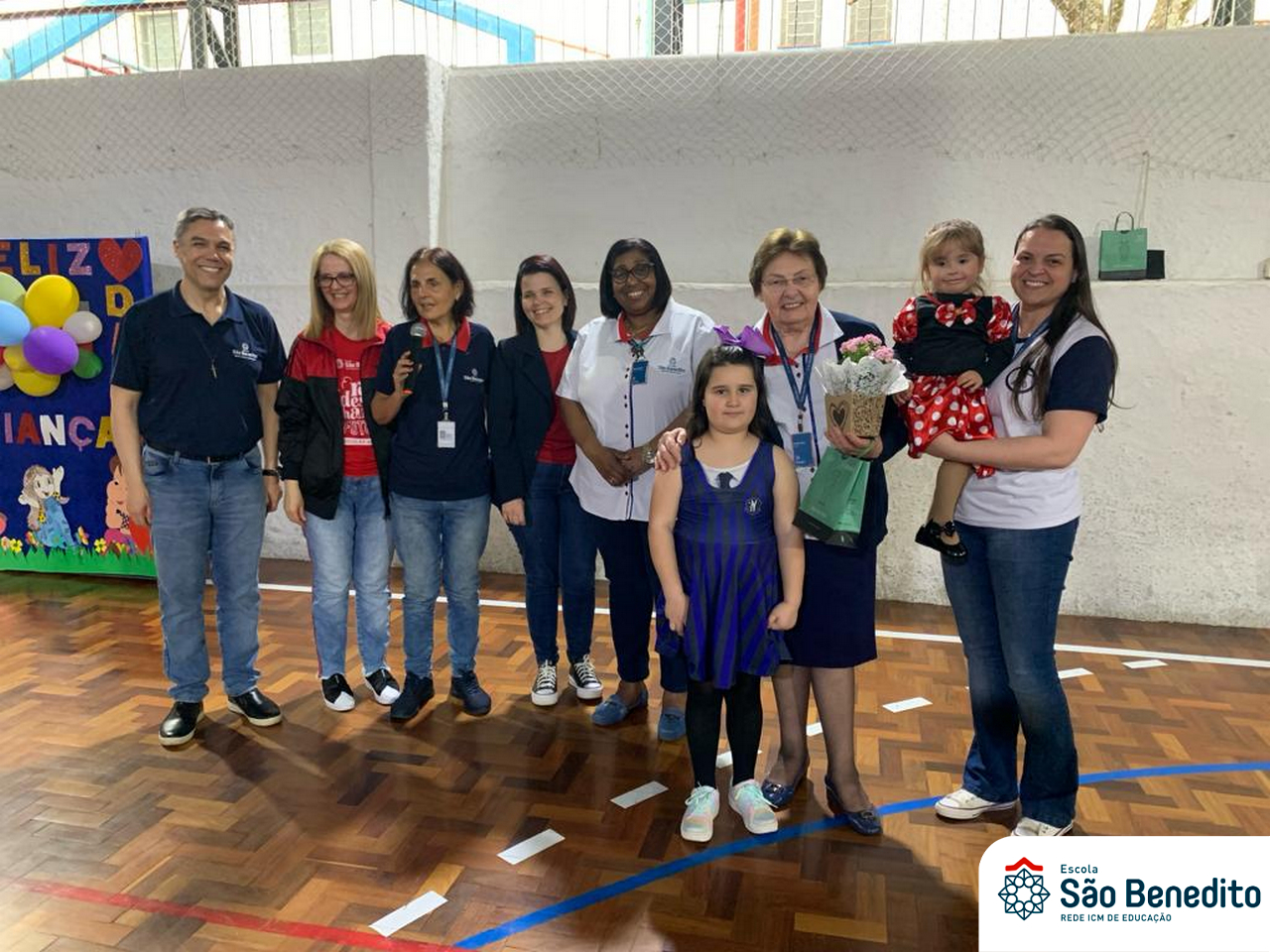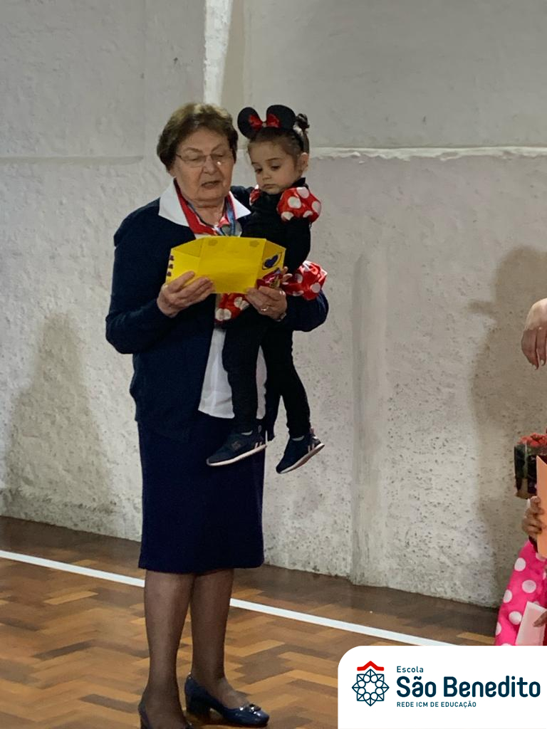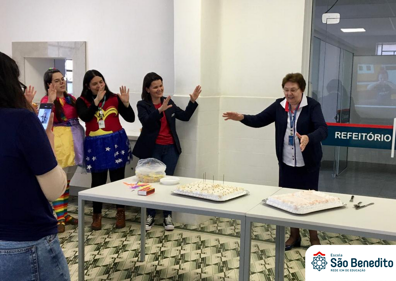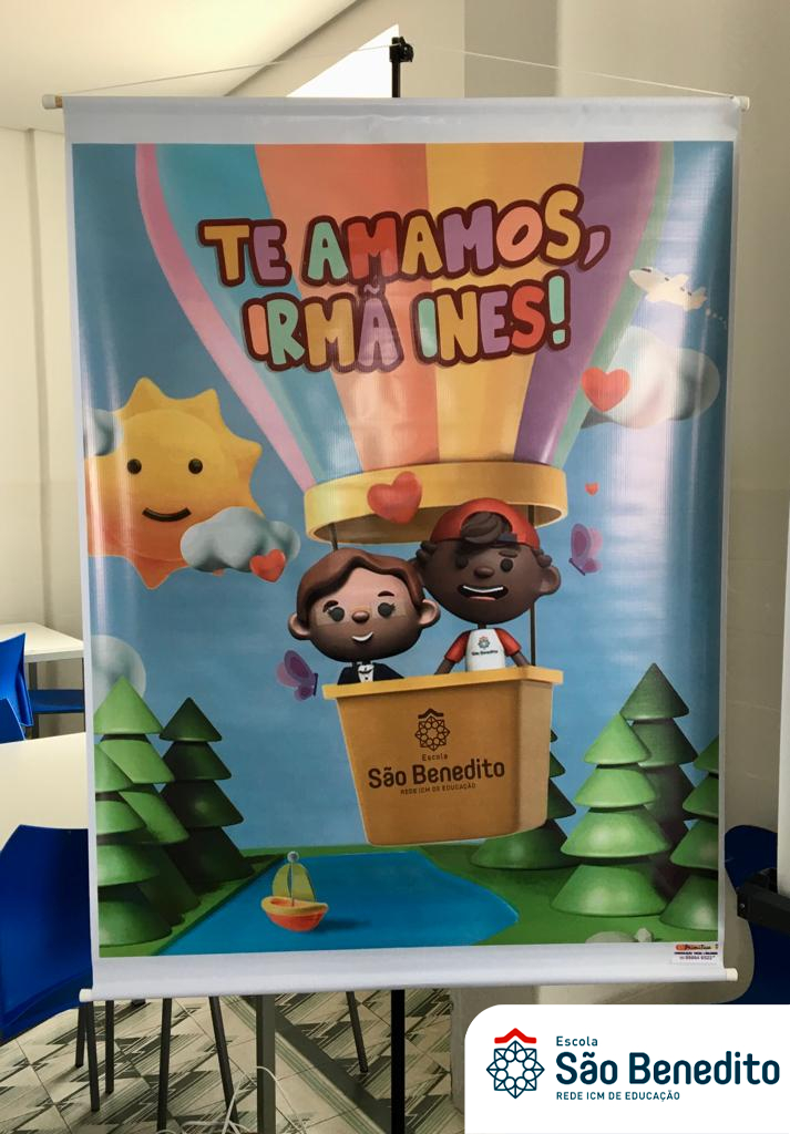 Na quarta-feira, 11 de outubro, comemoramos mais um ano de vida da nossa amada diretora, Irmã Ines Terezinha Sangalli. Durante os turnos da manhã, tarde e noite, estudantes, educadores e funcionários realizaram suas homenagens, tendo se iniciado de manhã, com o Ensino Fundamental II, se estendido ao Ensino Fundamental I e Educação Infantil no período da tarde, e aos coloboradores de noite.
