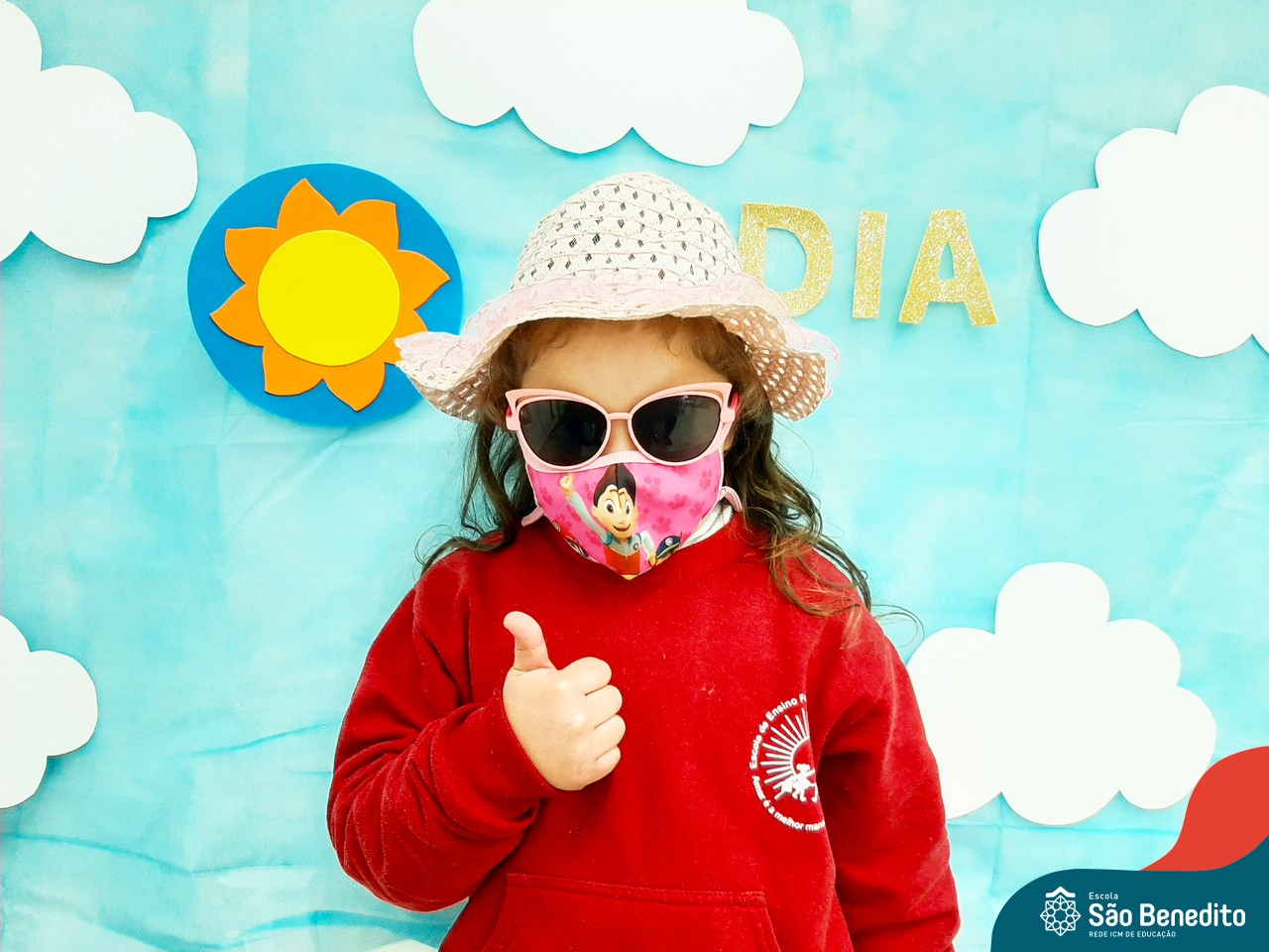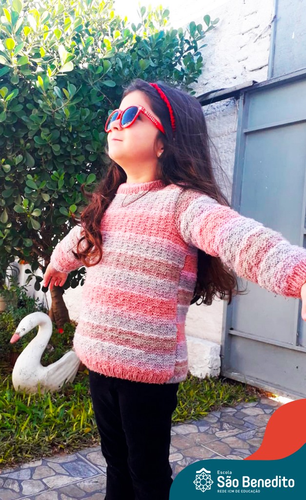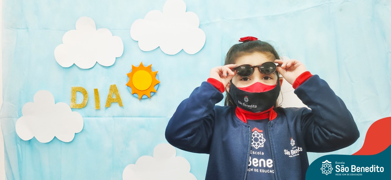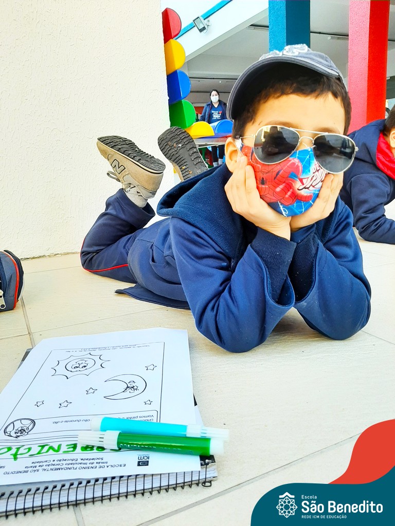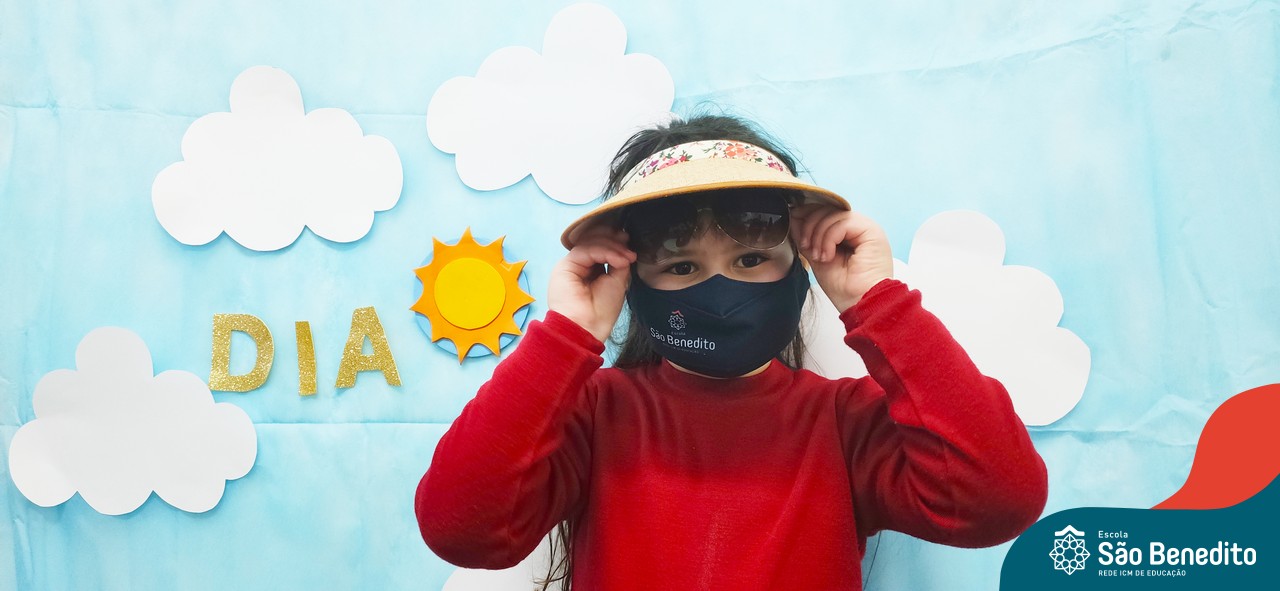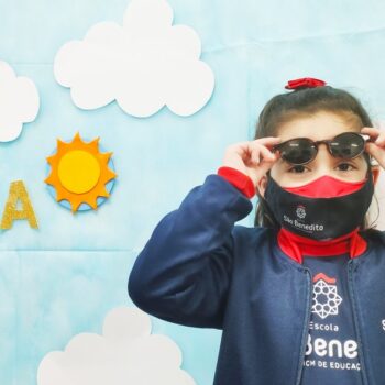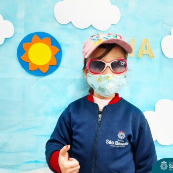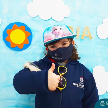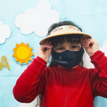 Mas como na Educação Infantil sempre tem uma explosão de criatividade, cores e sensações, nossas tardes foram abrilhantadas pelos acessórios – que são ferramentas importantes para a proteção durante o dia -, trazidos pelos pequenos, que tornaram tudo ainda mais estiloso! Para a finalização, um super momento de absorver vitamina D, tomando um banho de Sol! Que delícia!
