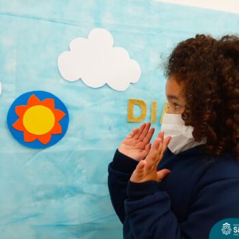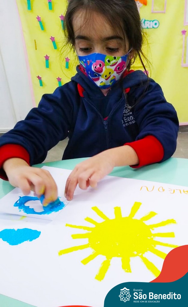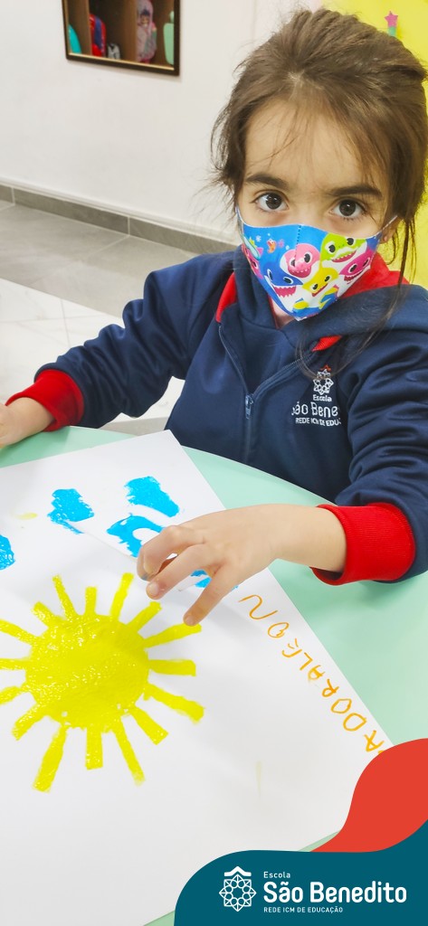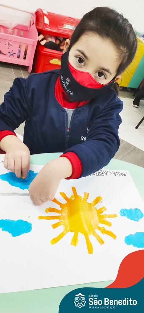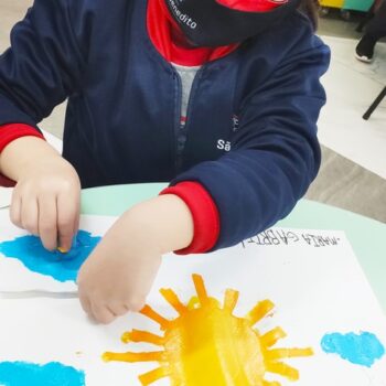 O aprendizado no Pré 1 não para nunca! Ainda na descoberta das noções de tempo, o objeto de estudo da vez foi o Sol, o nosso Astro-rei, que além de alegrar os dias, também traz um calorzinho que deixa tudo mais confortável! Nessa época de inverno rigoroso, não tem coisa melhor!
