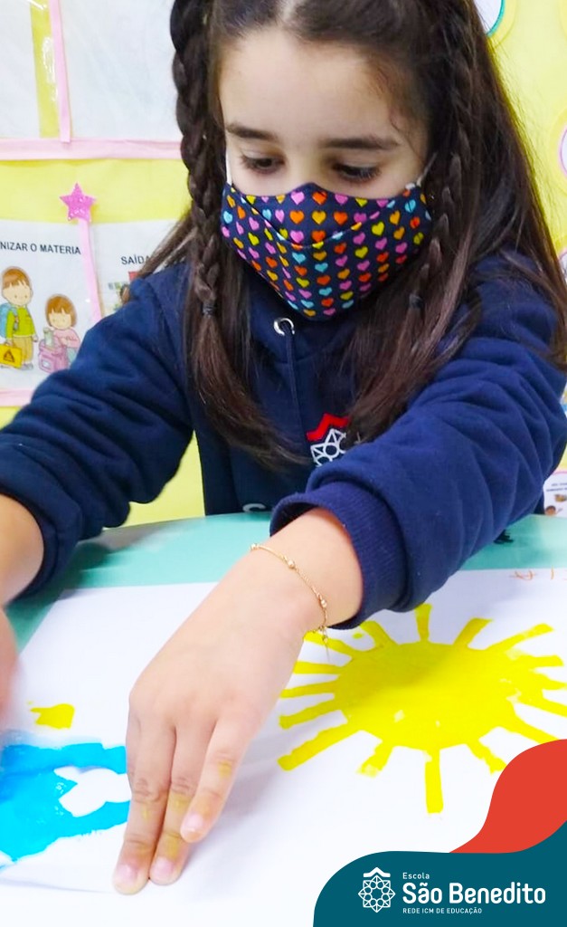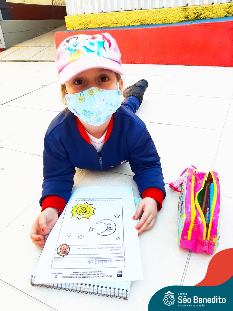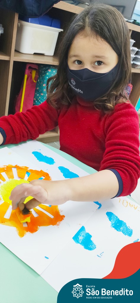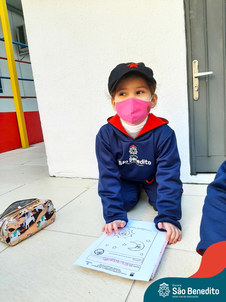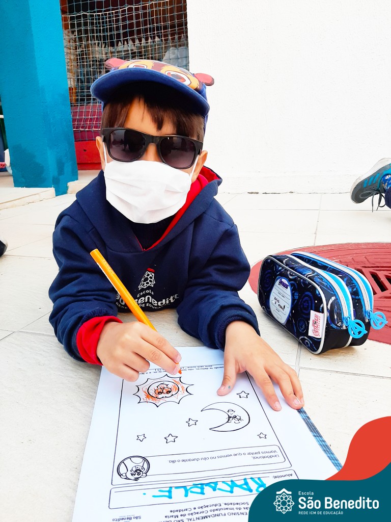 As turminhas começaram as atividades através da observação. Cada um, em sua casa, pôde admirar a Estrela e ter as primeiras impressões. Depois, tiveram um momento muito rico em sala de aula, que tratou dos movimentos da Terra em torno da nossa bola de fogo, e dos cuidados que precisamos ter para não sofrer queimaduras, porque mesmo sendo lindo, o Sol pode machucar a nossa pele.