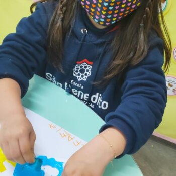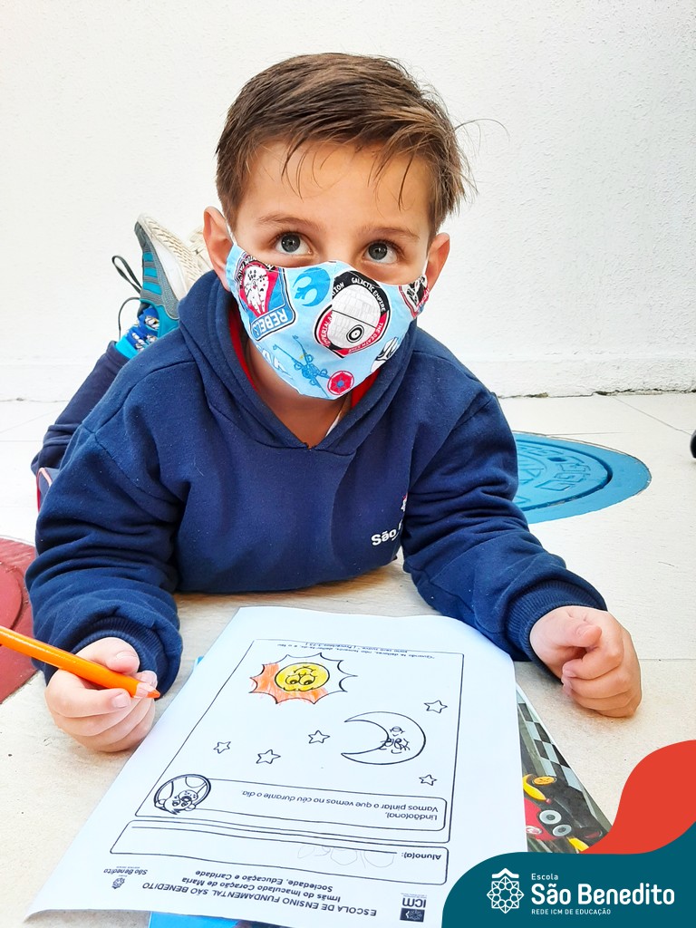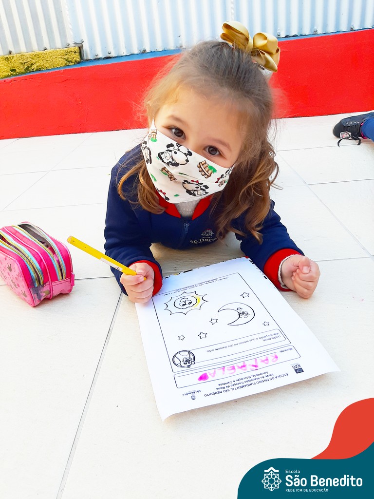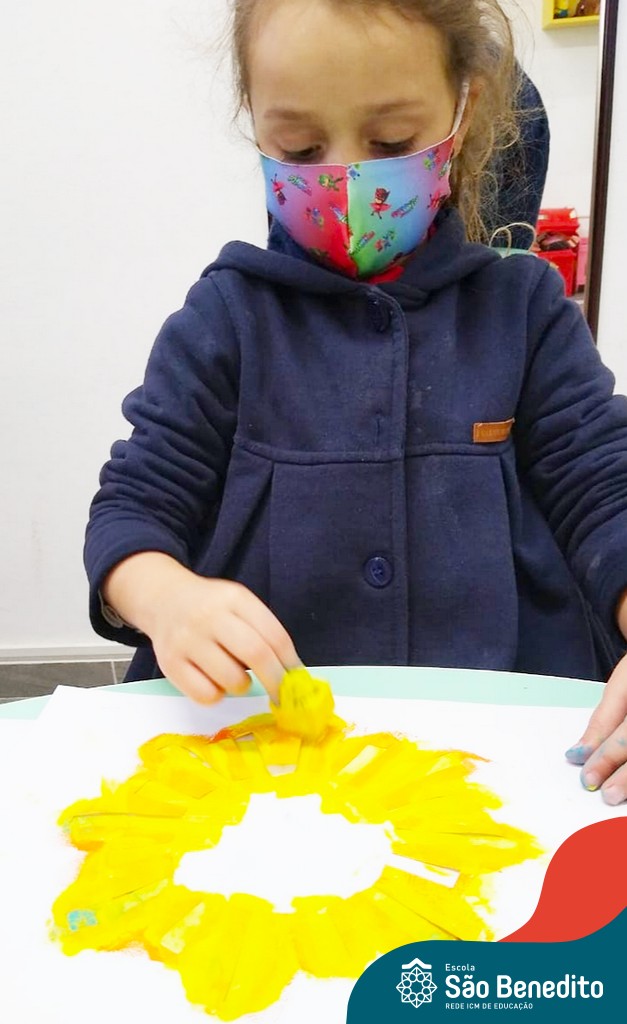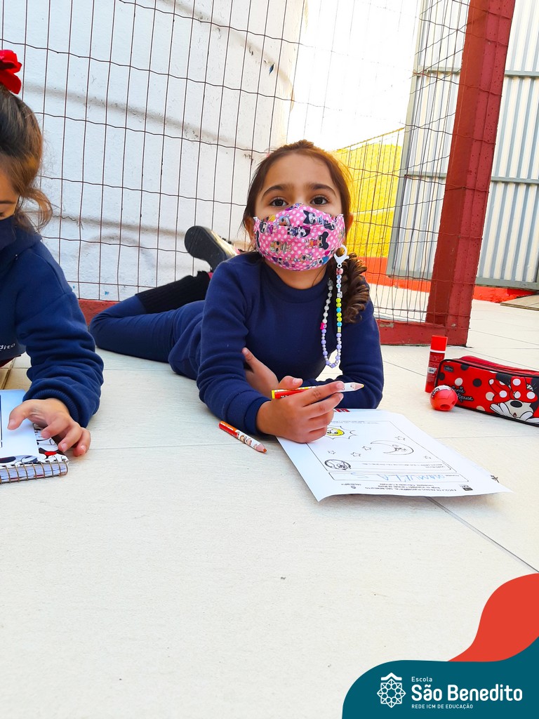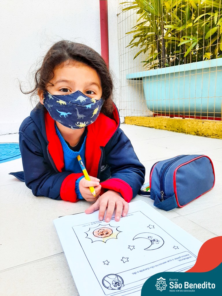 As turminhas começaram as atividades através da observação. Cada um, em sua casa, pôde admirar a Estrela e ter as primeiras impressões. Depois, tiveram um momento muito rico em sala de aula, que tratou dos movimentos da Terra em torno da nossa bola de fogo, e dos cuidados que precisamos ter para não sofrer queimaduras, porque mesmo sendo lindo, o Sol pode machucar a nossa pele.