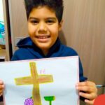 Os alunos do 2º Ano aprenderam sobre o significado da data e confeccionaram peças para o tradicional tapete, que durante os anos sem pandemia, fazem parte da procissão de Corpus Christi. Através da Eucaristia, Jesus nos mostra que está presente ao nosso lado, e se faz alimento para nos dar força para continuar. Jesus nos comunica seu amor e se entrega por nós.