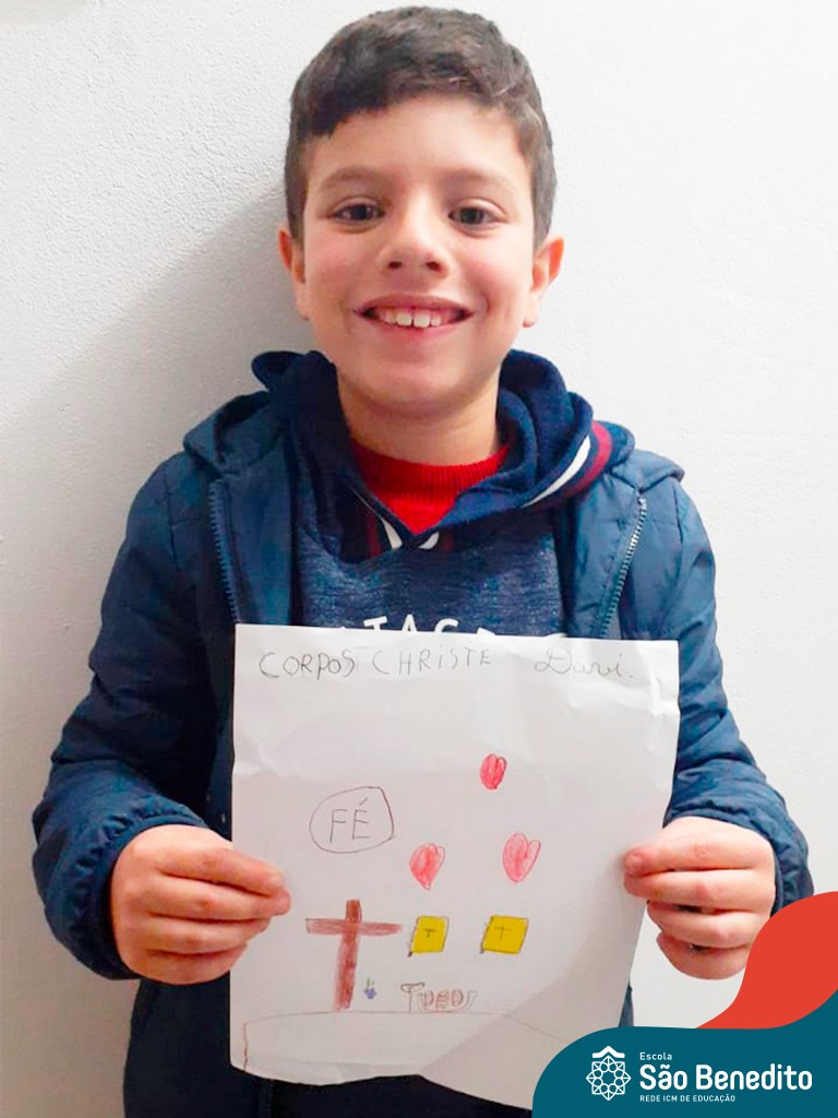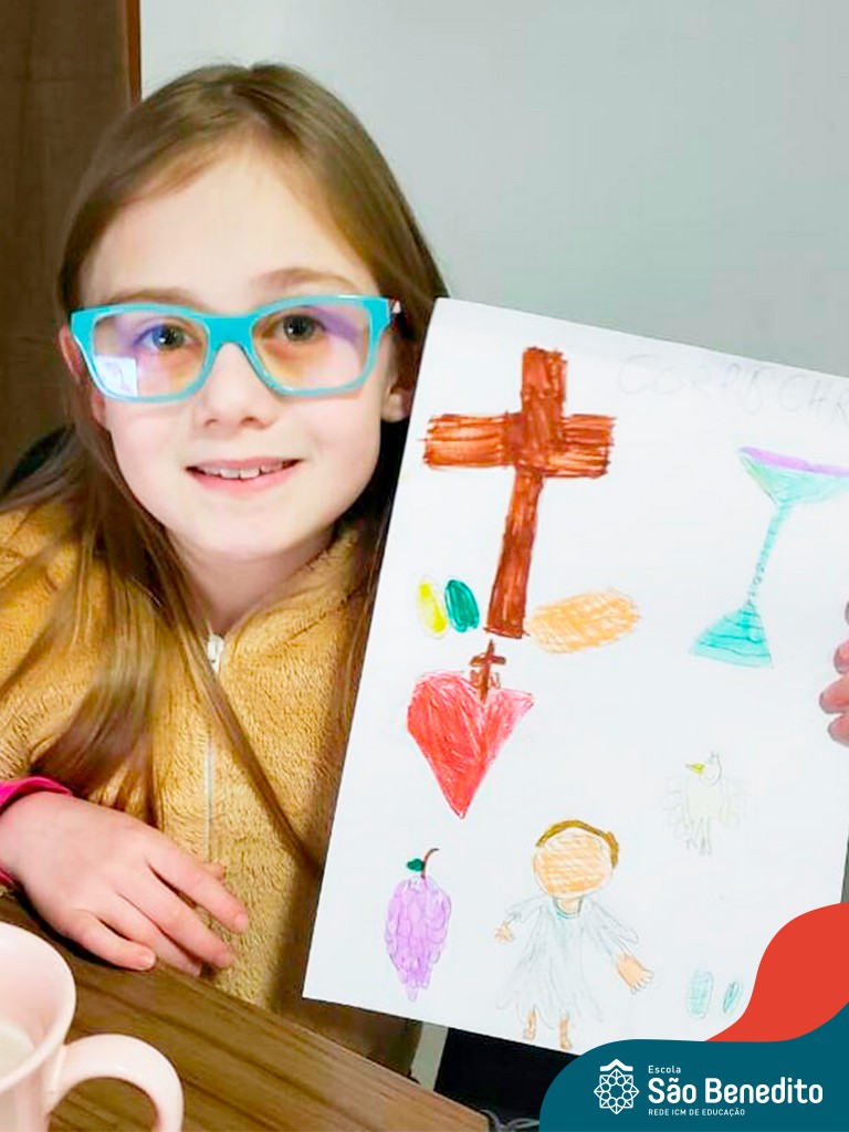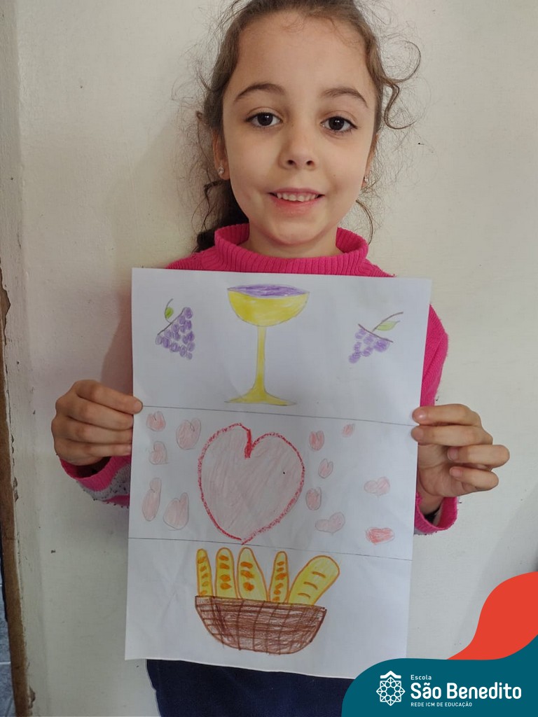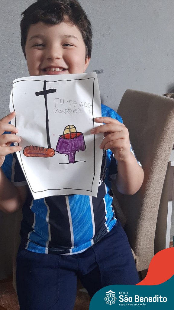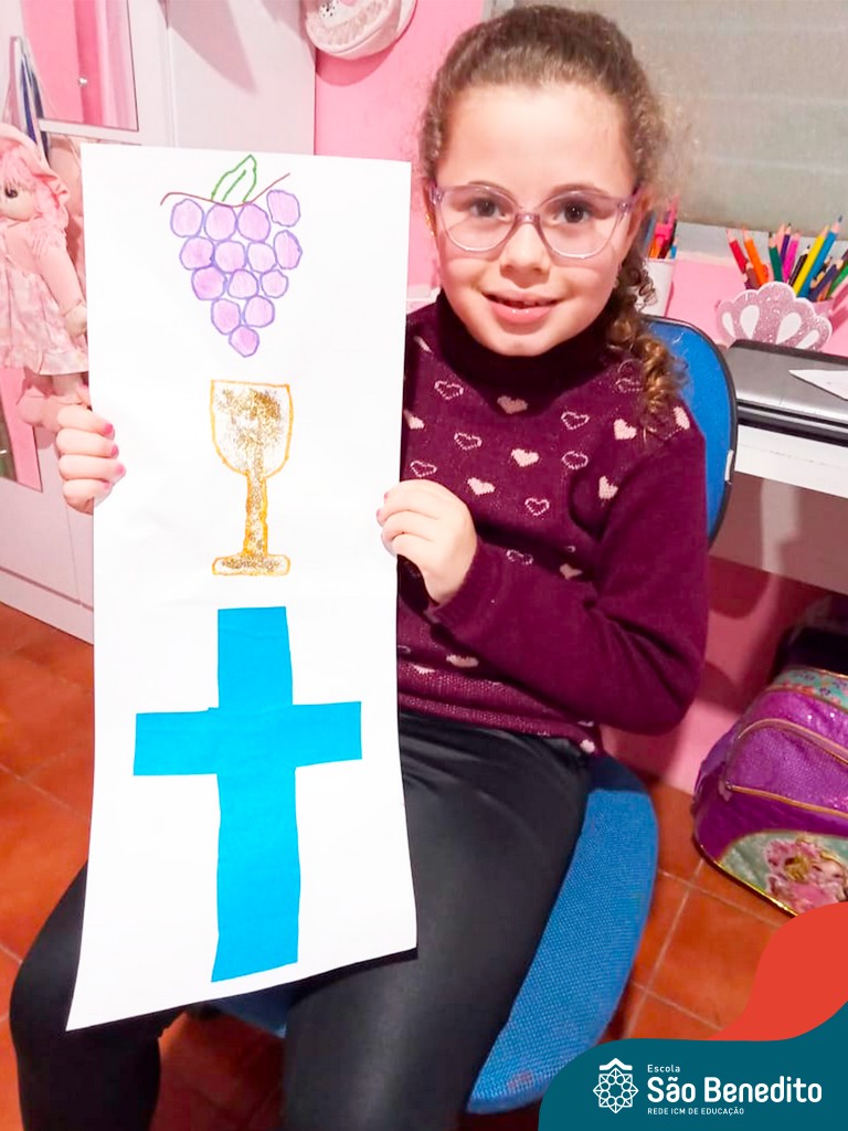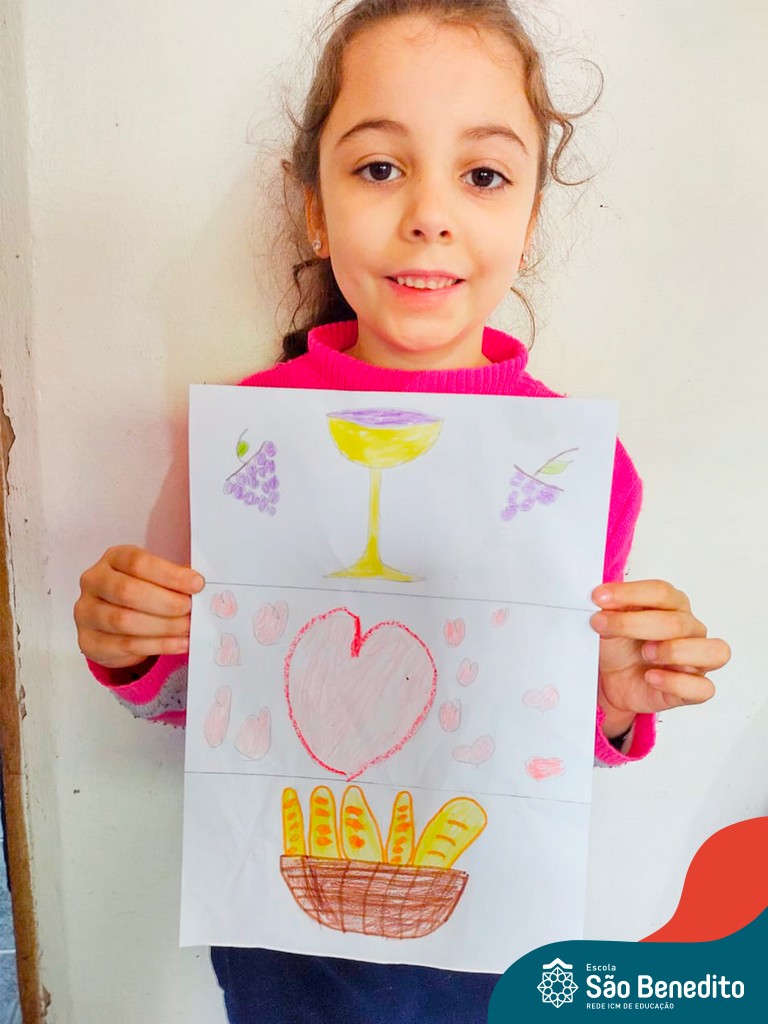 Os alunos do 2º Ano aprenderam sobre o significado da data e confeccionaram peças para o tradicional tapete, que durante os anos sem pandemia, fazem parte da procissão de Corpus Christi. Através da Eucaristia, Jesus nos mostra que está presente ao nosso lado, e se faz alimento para nos dar força para continuar. Jesus nos comunica seu amor e se entrega por nós.