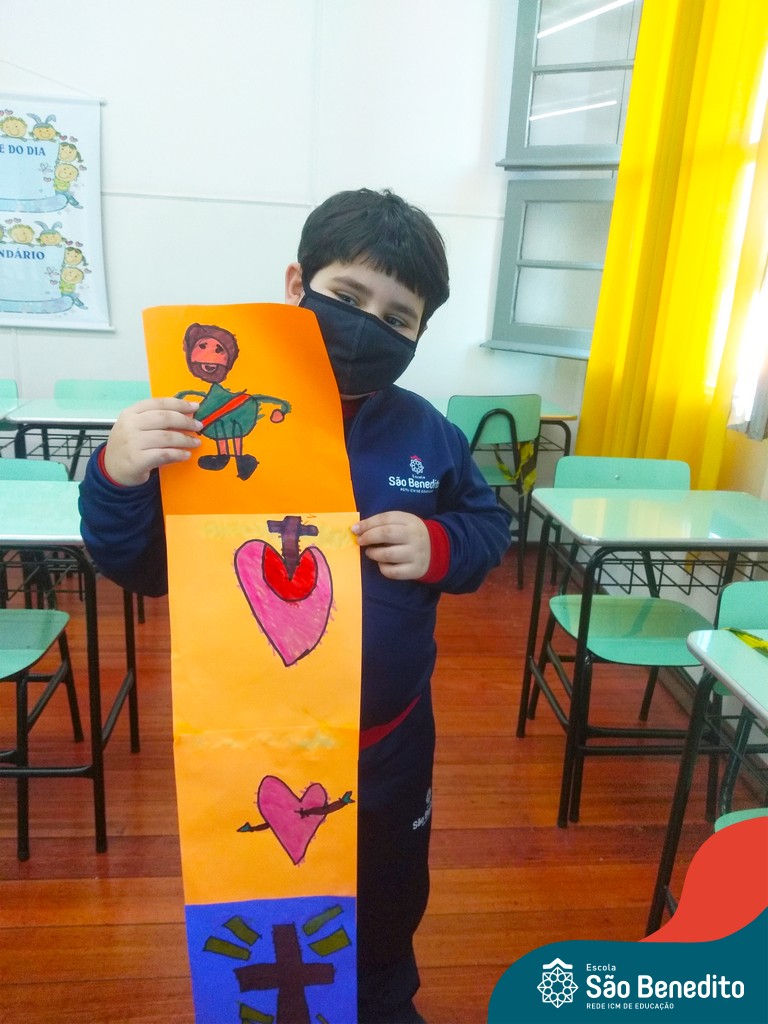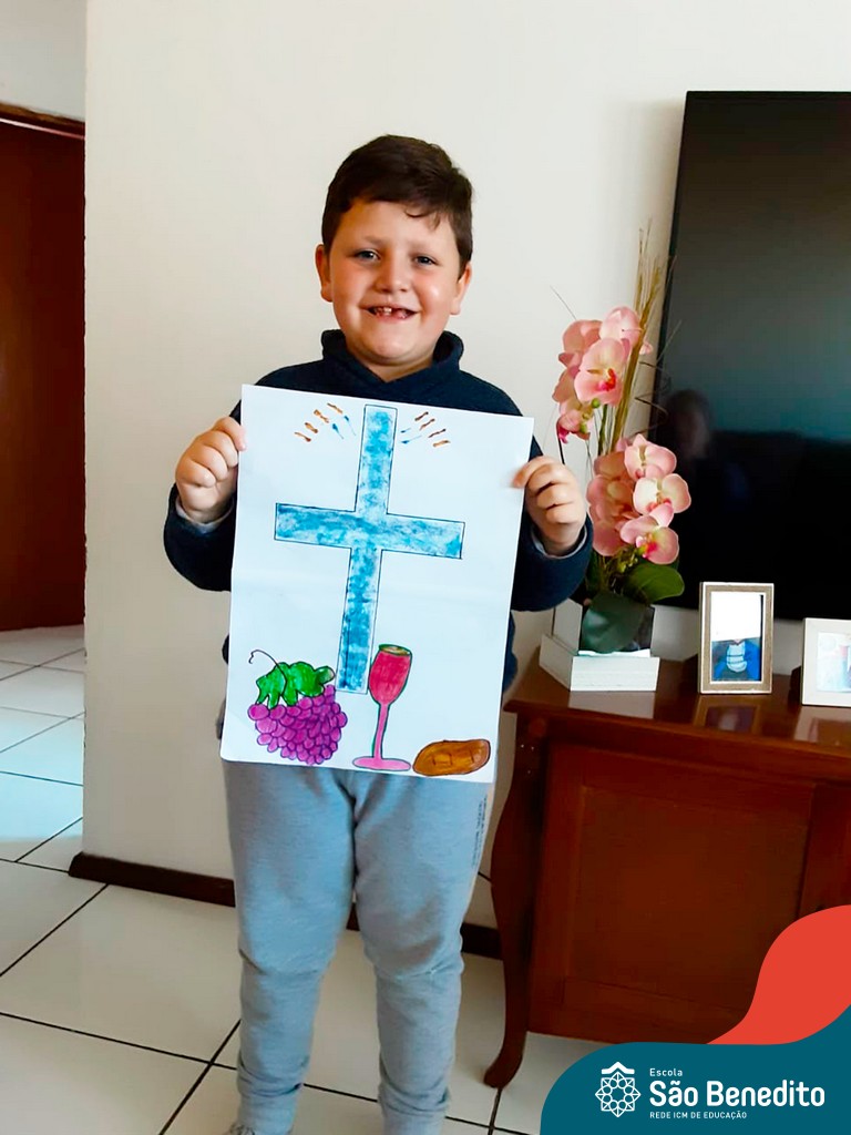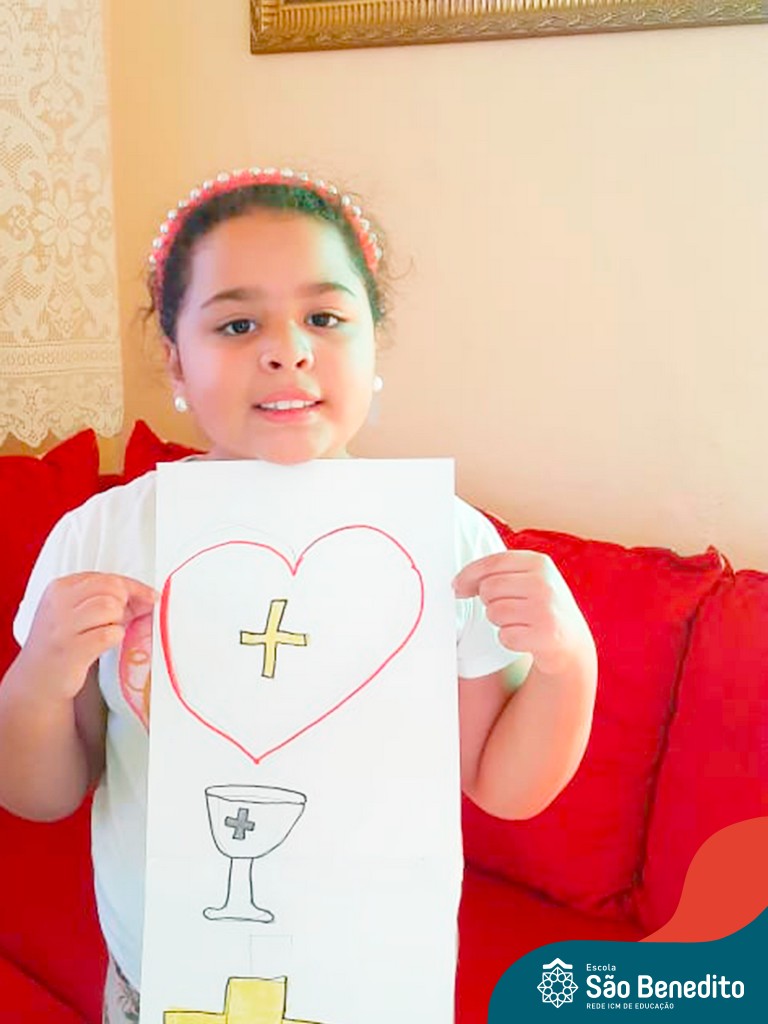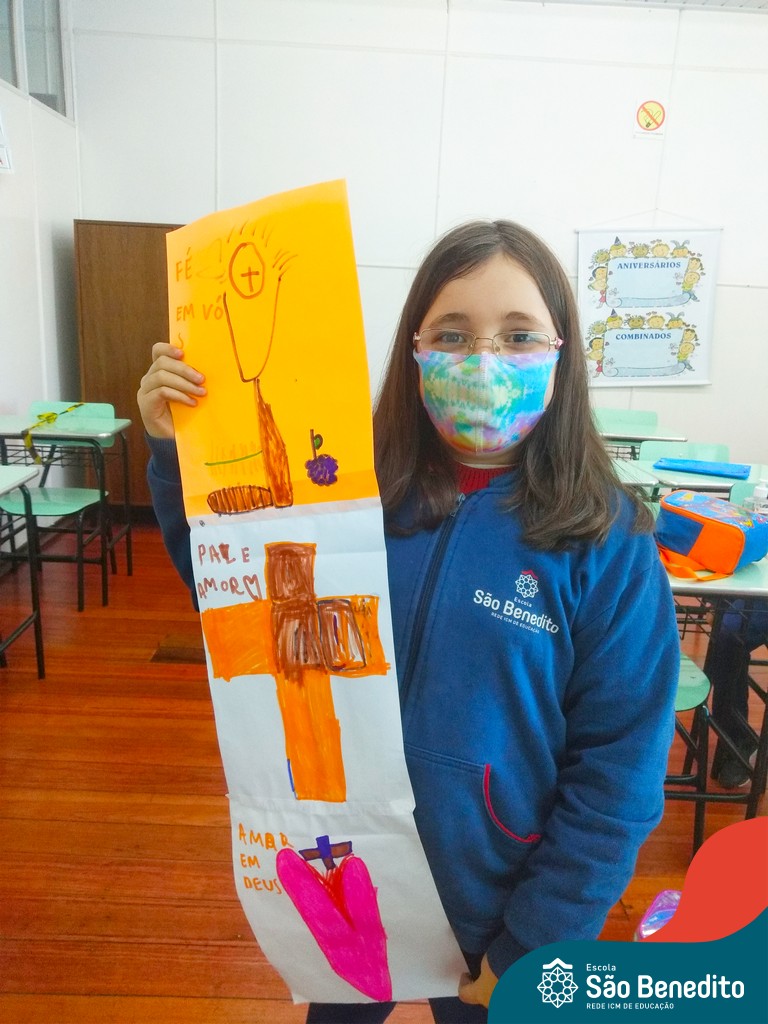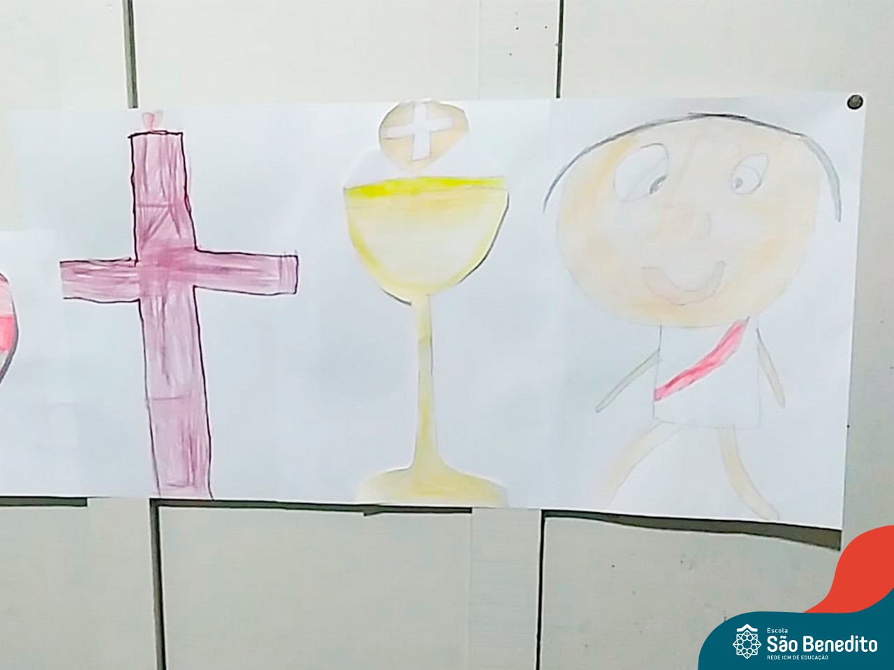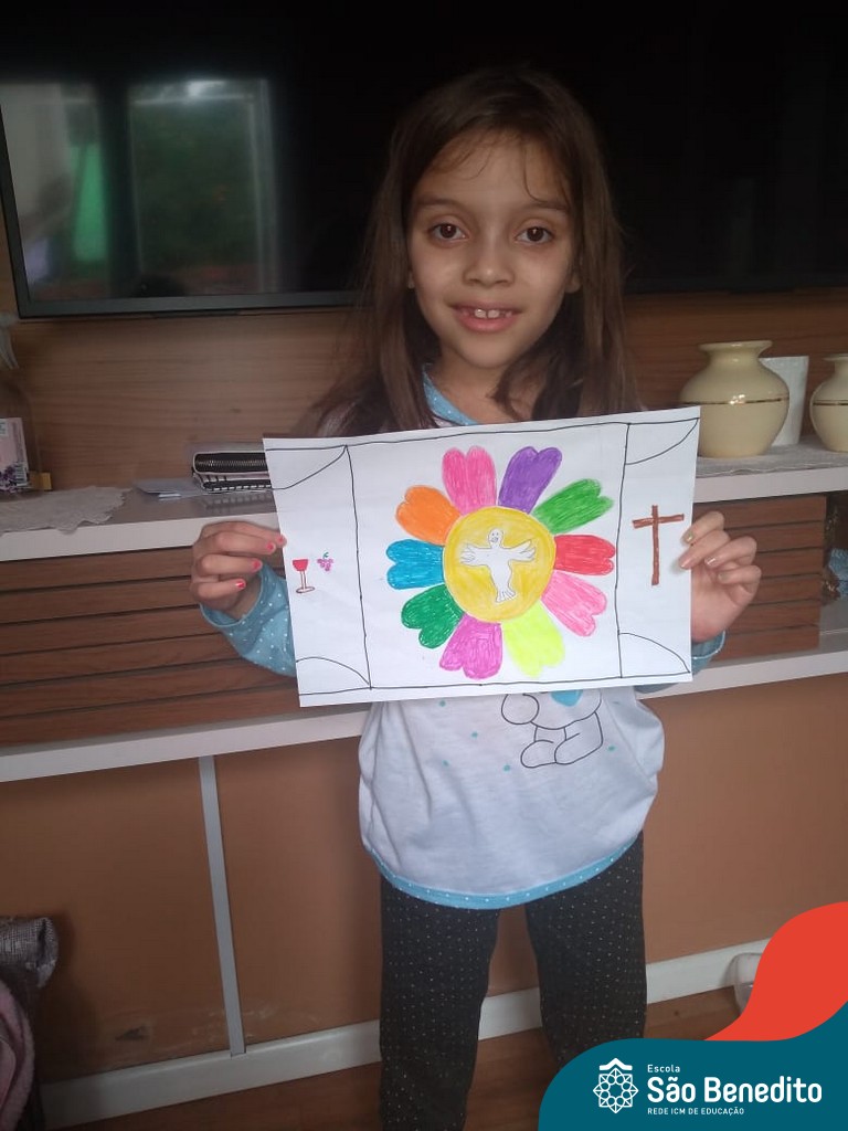Os alunos do 2º Ano aprenderam sobre o significado da data e confeccionaram peças para o tradicional tapete, que durante os anos sem pandemia, fazem parte da procissão de Corpus Christi. Através da Eucaristia, Jesus nos mostra que está presente ao nosso lado, e se faz alimento para nos dar força para continuar. Jesus nos comunica seu amor e se entrega por nós.