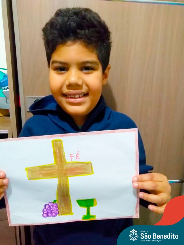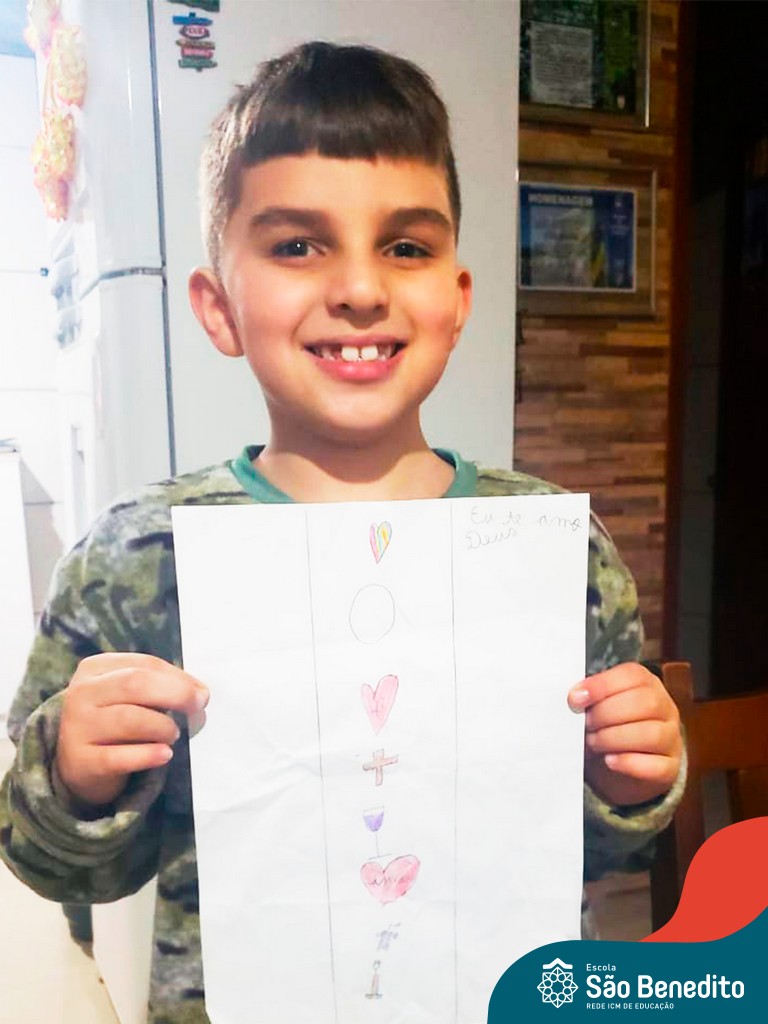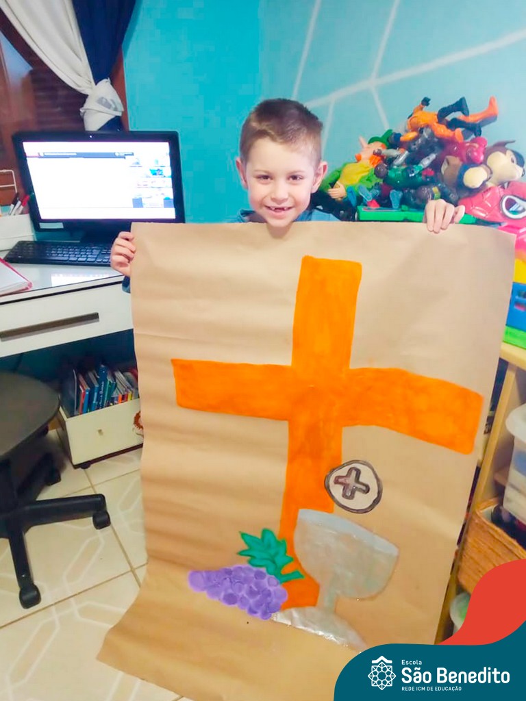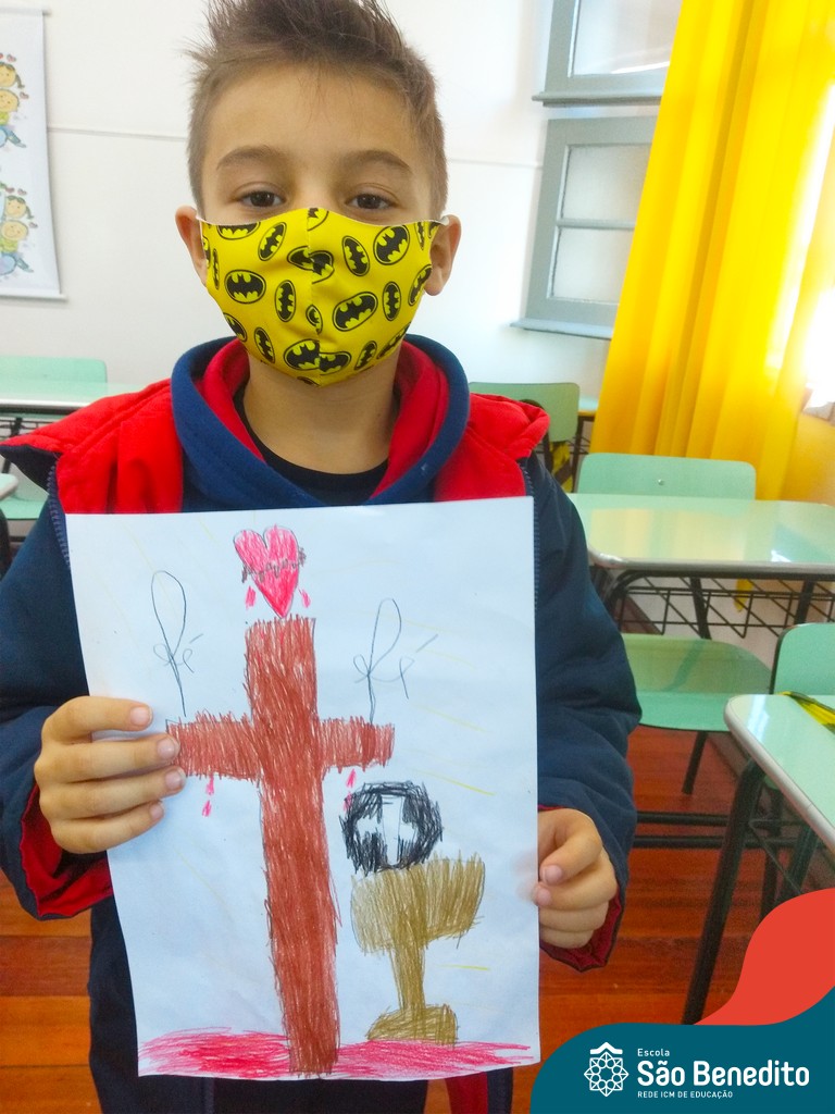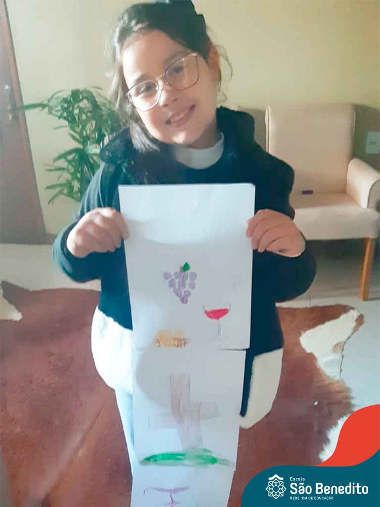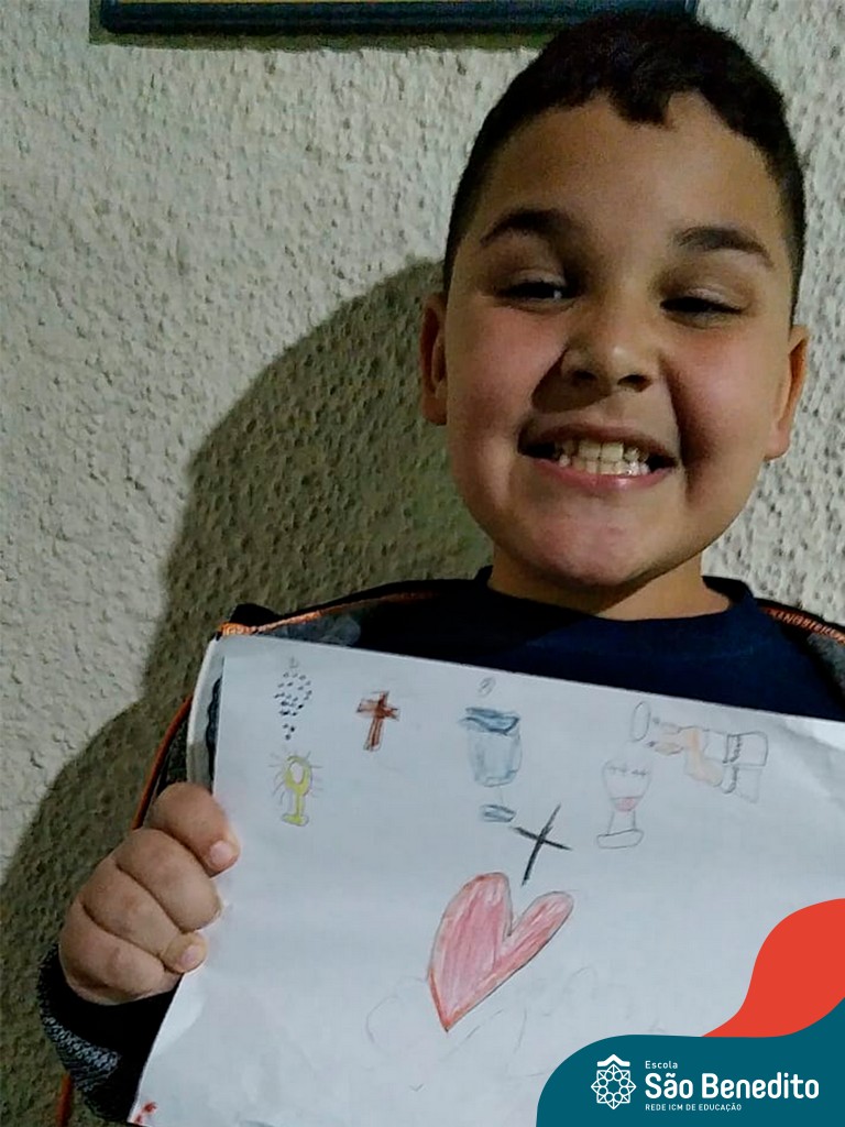 Os alunos do 2º Ano aprenderam sobre o significado da data e confeccionaram peças para o tradicional tapete, que durante os anos sem pandemia, fazem parte da procissão de Corpus Christi. Através da Eucaristia, Jesus nos mostra que está presente ao nosso lado, e se faz alimento para nos dar força para continuar. Jesus nos comunica seu amor e se entrega por nós.
