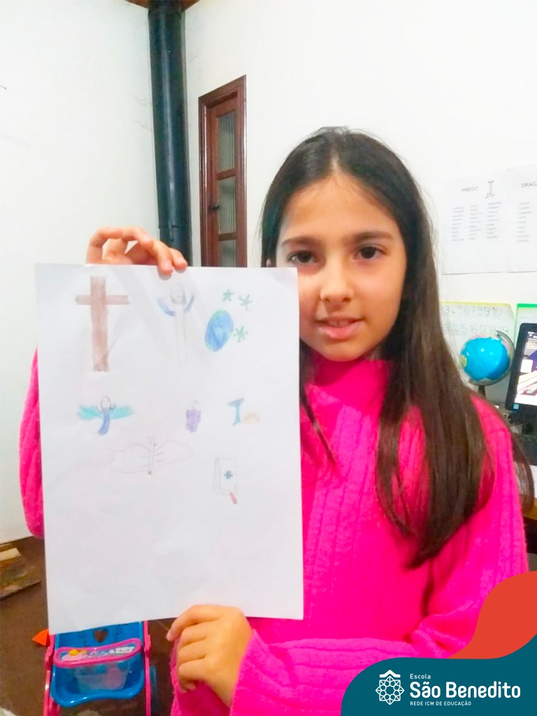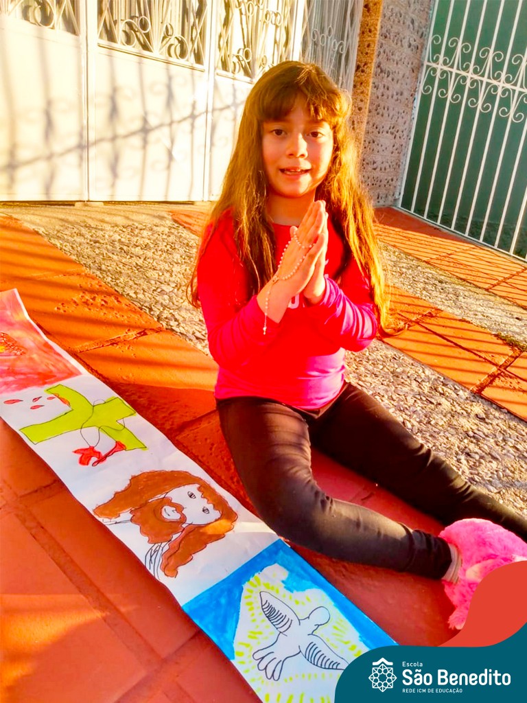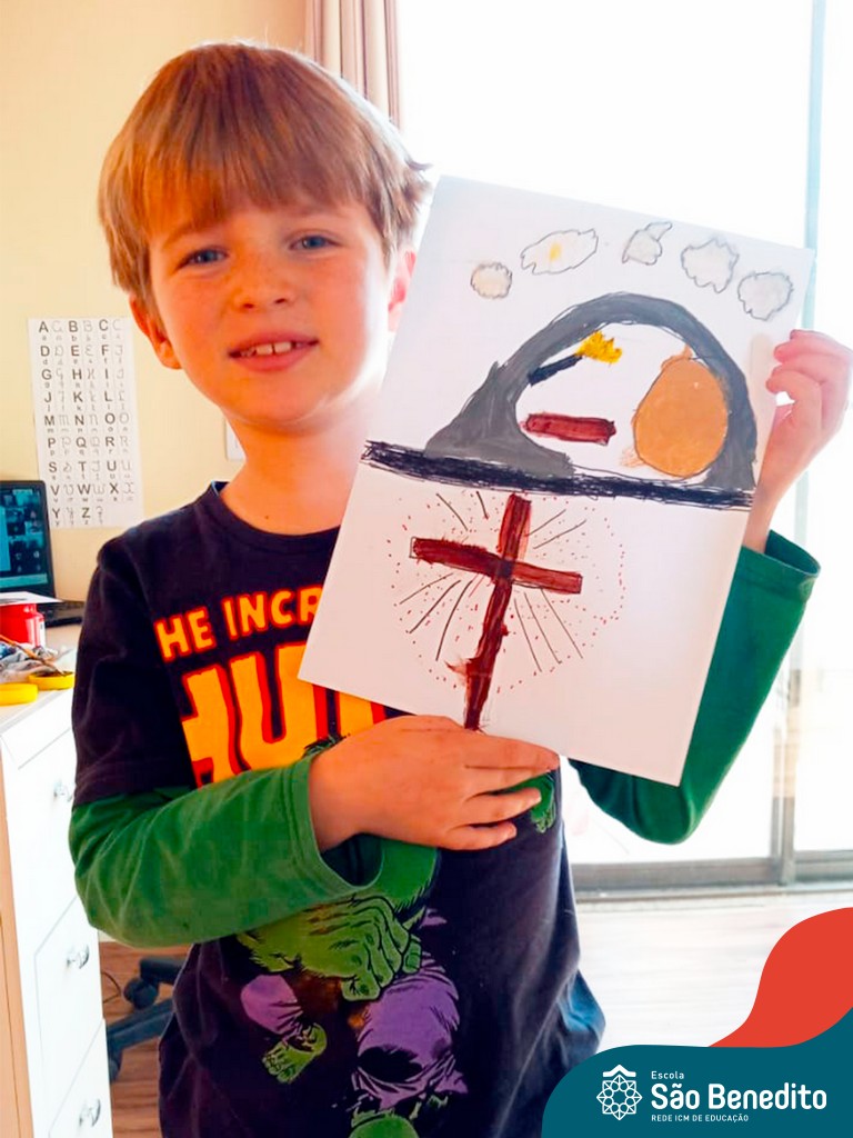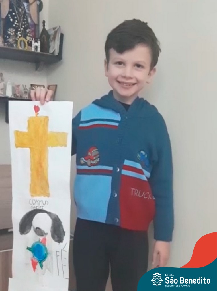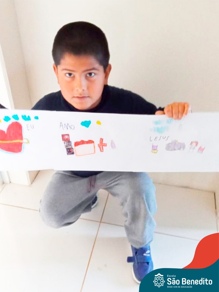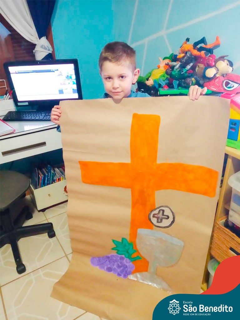 Os alunos do 2º Ano aprenderam sobre o significado da data e confeccionaram peças para o tradicional tapete, que durante os anos sem pandemia, fazem parte da procissão de Corpus Christi. Através da Eucaristia, Jesus nos mostra que está presente ao nosso lado, e se faz alimento para nos dar força para continuar. Jesus nos comunica seu amor e se entrega por nós.