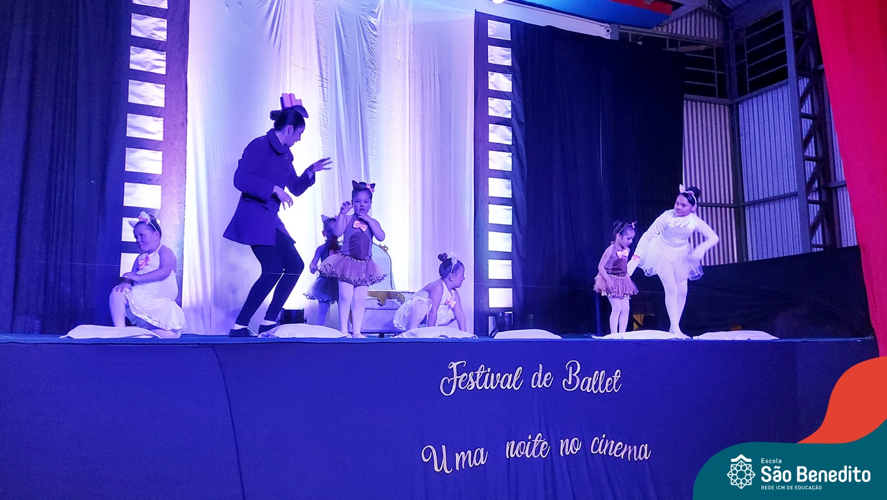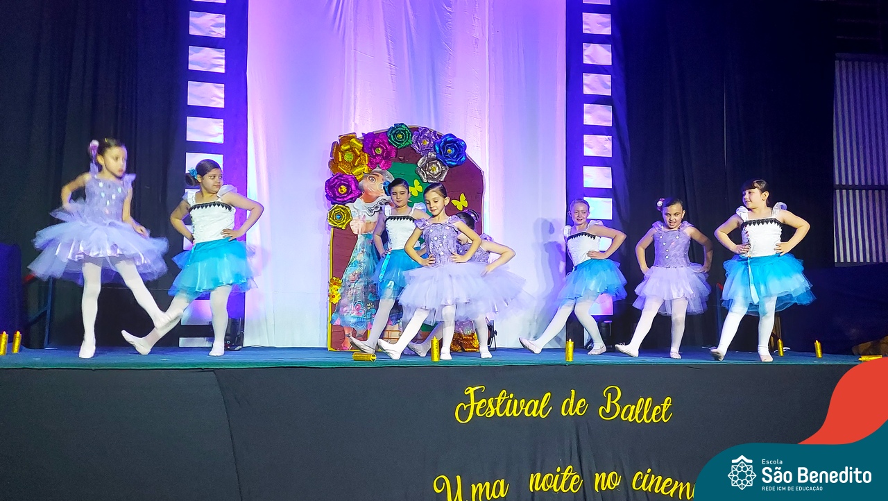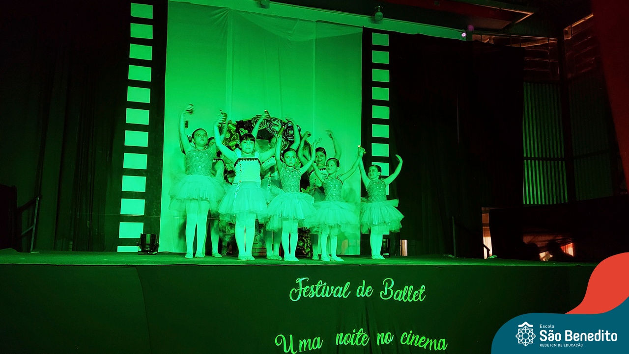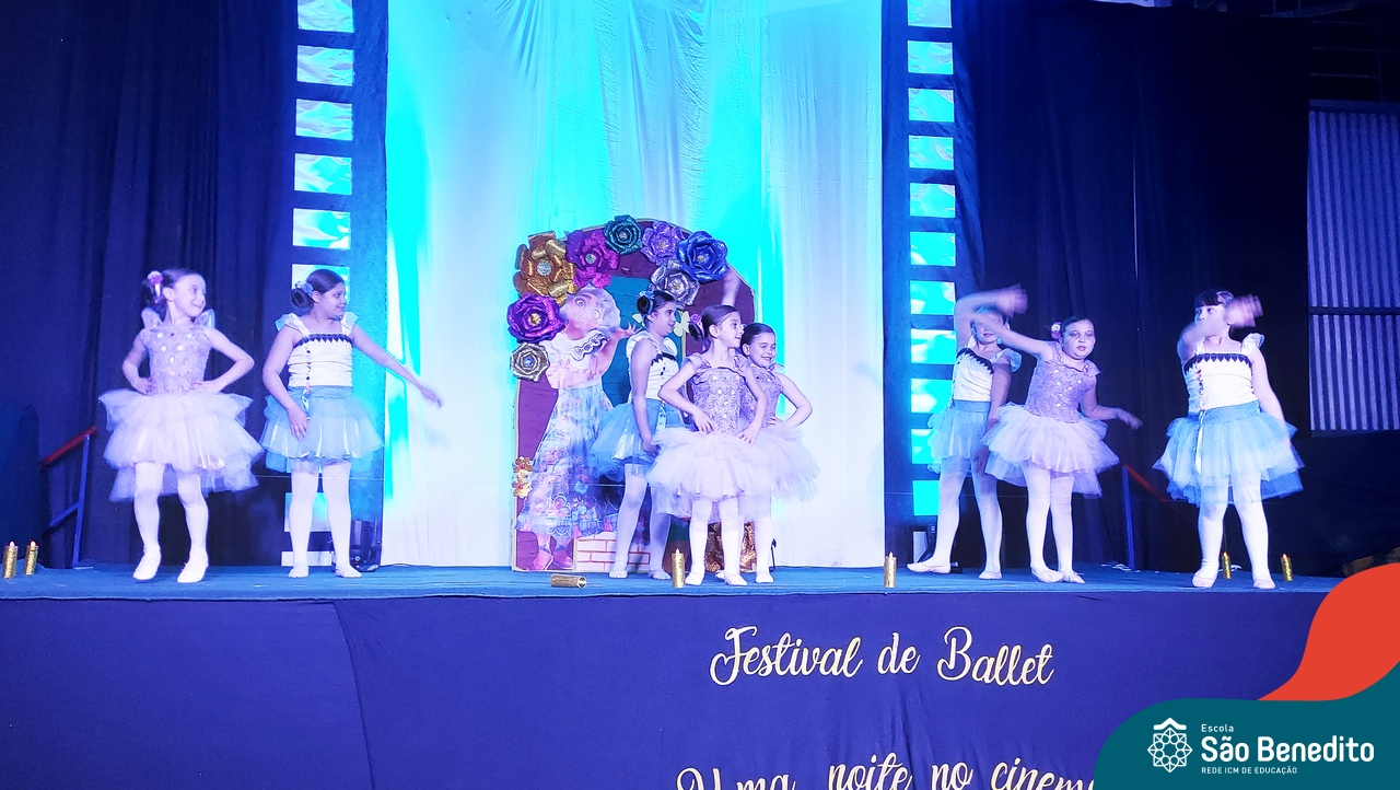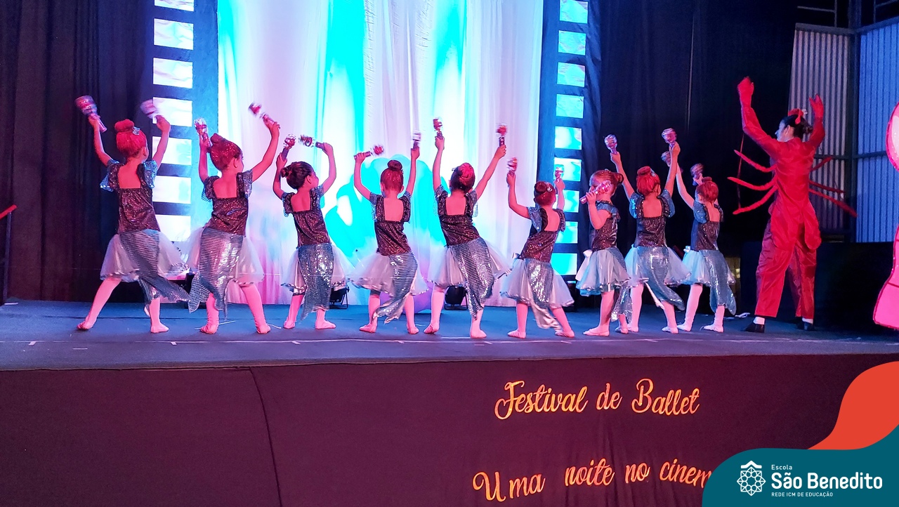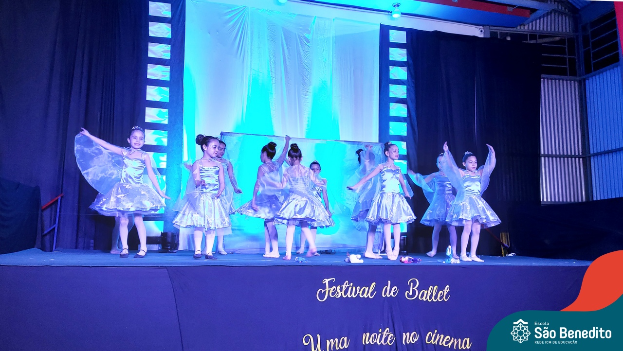 Na noite de 27 de outubro, a Escola São Benedito realizou um dos eventos anuais mais aclamados pela comunidade escolar: o Festival de Ballet. O espetáculo, que foi organizado pela professora Aryane Almeida de Leon e equipe, teve como tema “Uma noite no Cinema”, e buscou proporcionar muito mais do que um simples momento de prestígio: visou oferecer também, uma experiência altamente imersiva no mundo do cinema. Para isso, diversas das gerações presentes relembraram a infância com uma experiência visual, auditiva e tátil, que foi coroada com a guloseima mais amada dos cinemas: a pipoca.