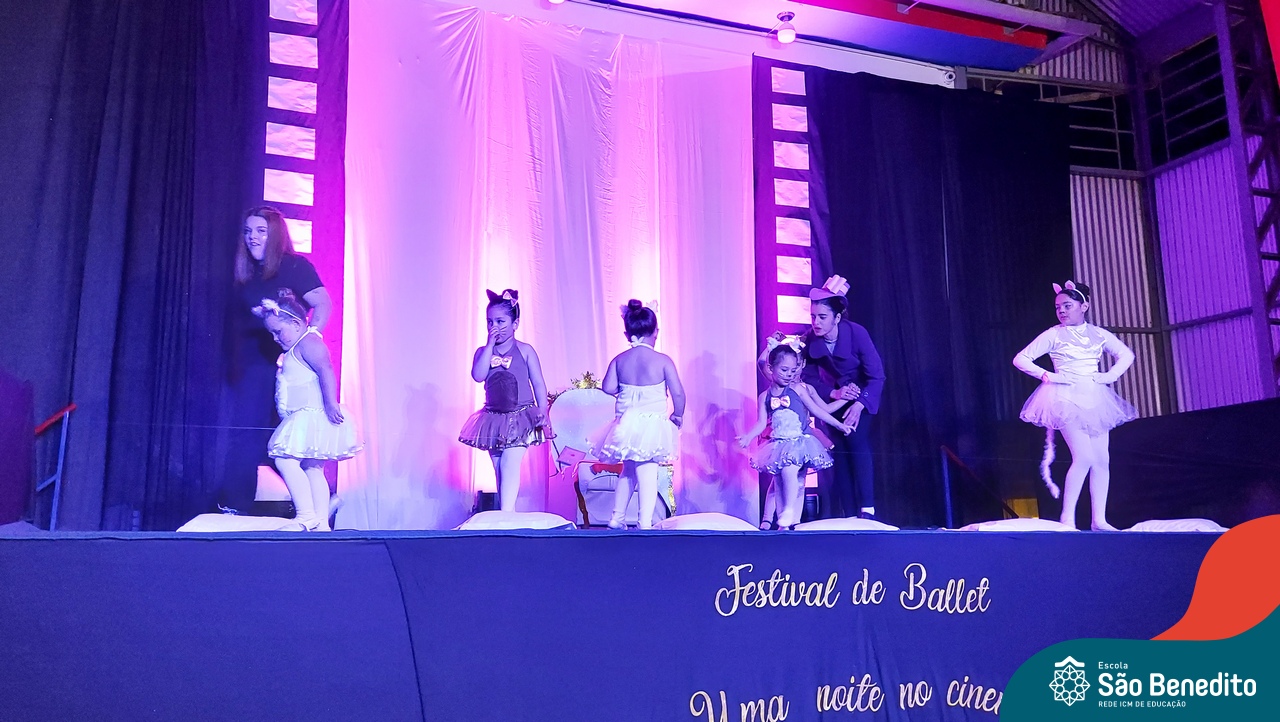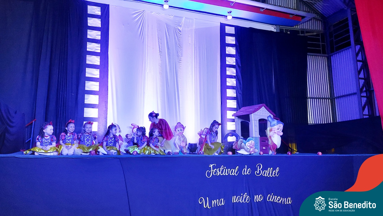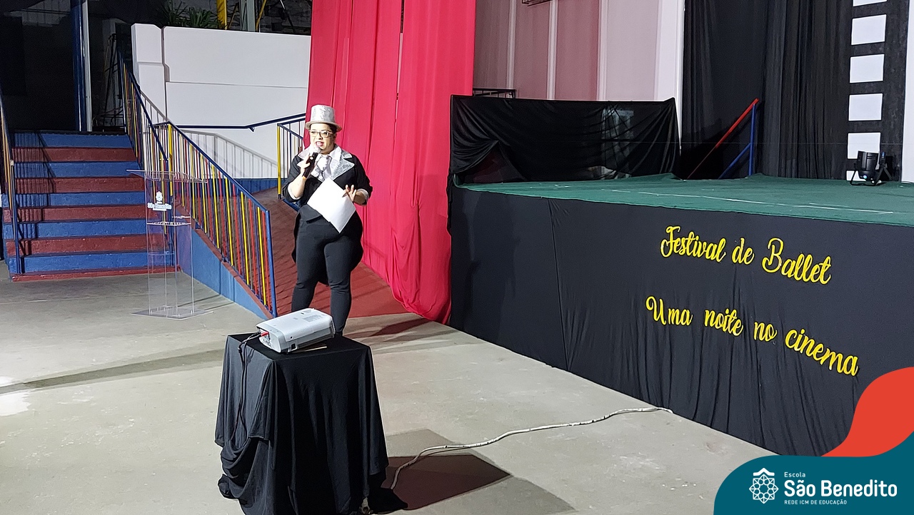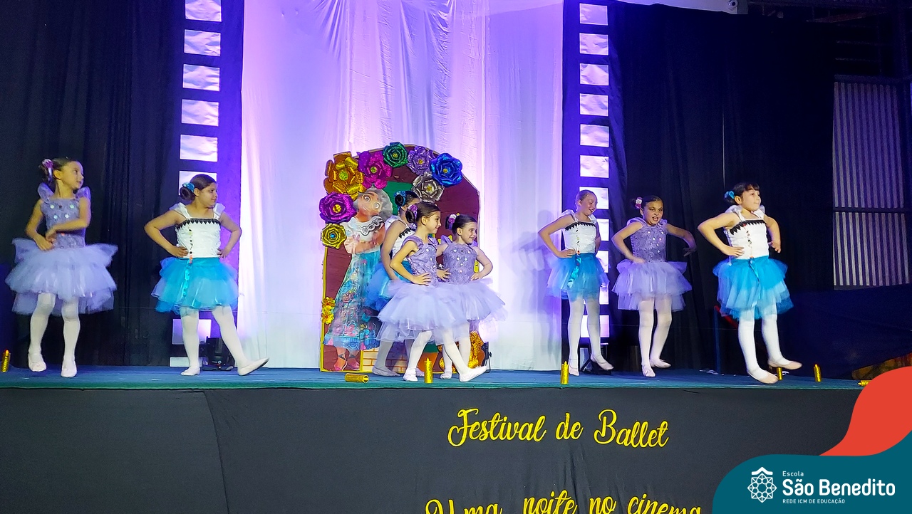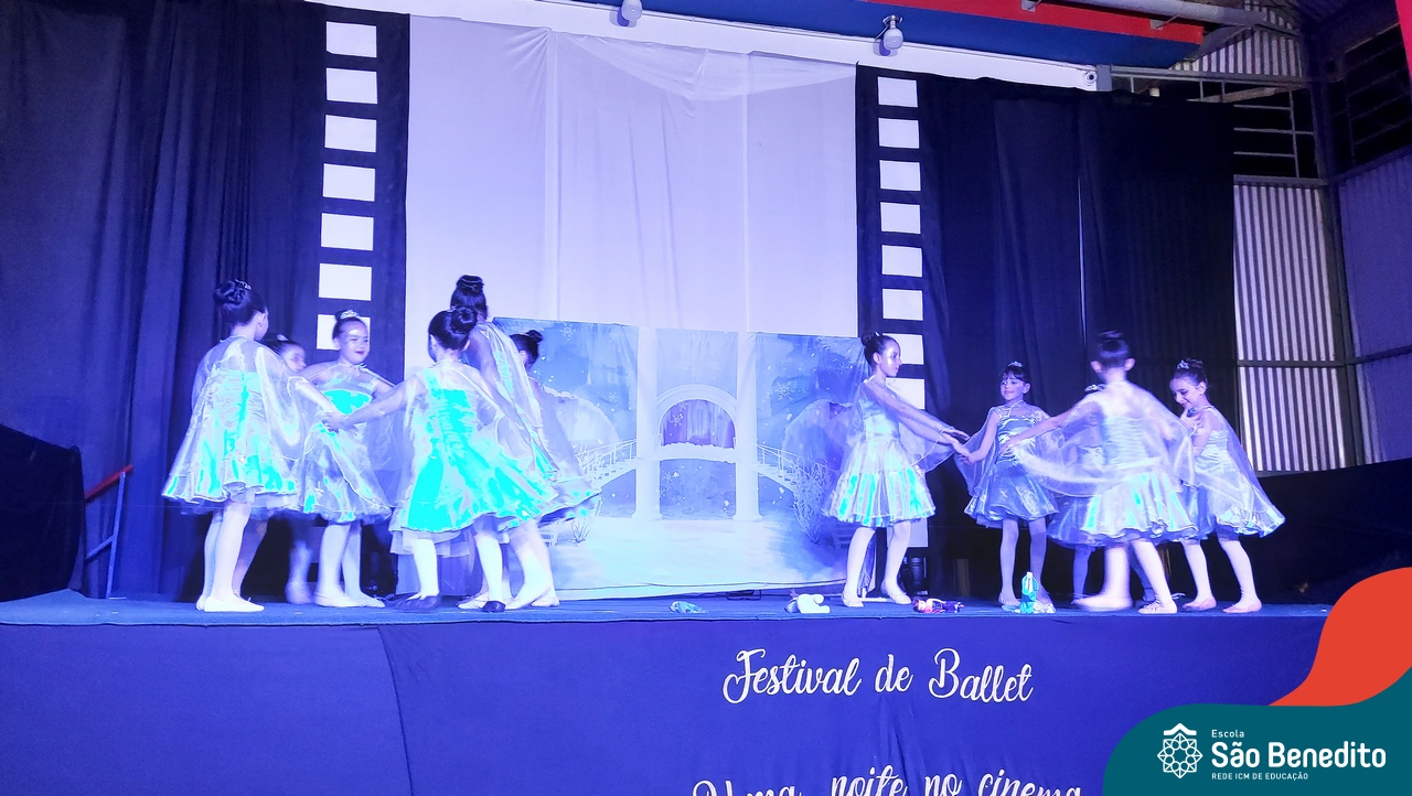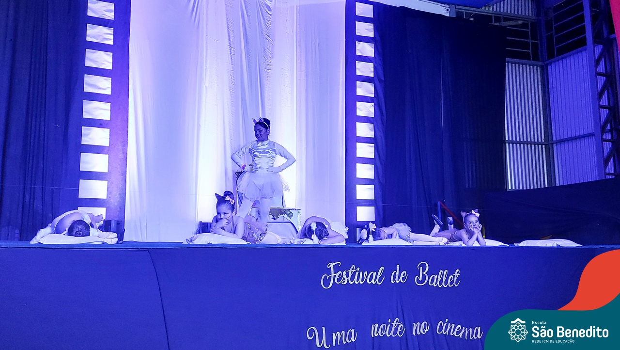 Na noite de 27 de outubro, a Escola São Benedito realizou um dos eventos anuais mais aclamados pela comunidade escolar: o Festival de Ballet. O espetáculo, que foi organizado pela professora Aryane Almeida de Leon e equipe, teve como tema “Uma noite no Cinema”, e buscou proporcionar muito mais do que um simples momento de prestígio: visou oferecer também, uma experiência altamente imersiva no mundo do cinema. Para isso, diversas das gerações presentes relembraram a infância com uma experiência visual, auditiva e tátil, que foi coroada com a guloseima mais amada dos cinemas: a pipoca.