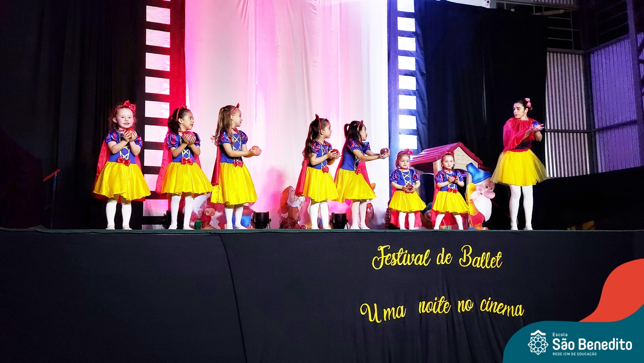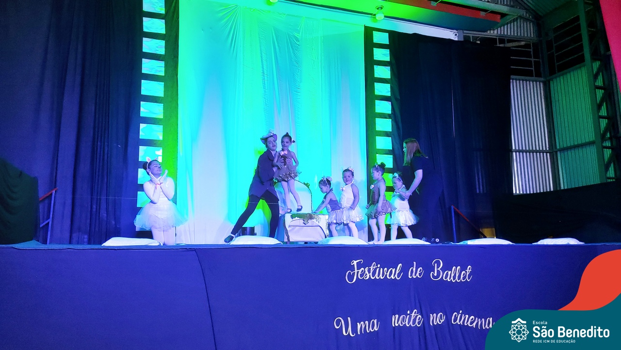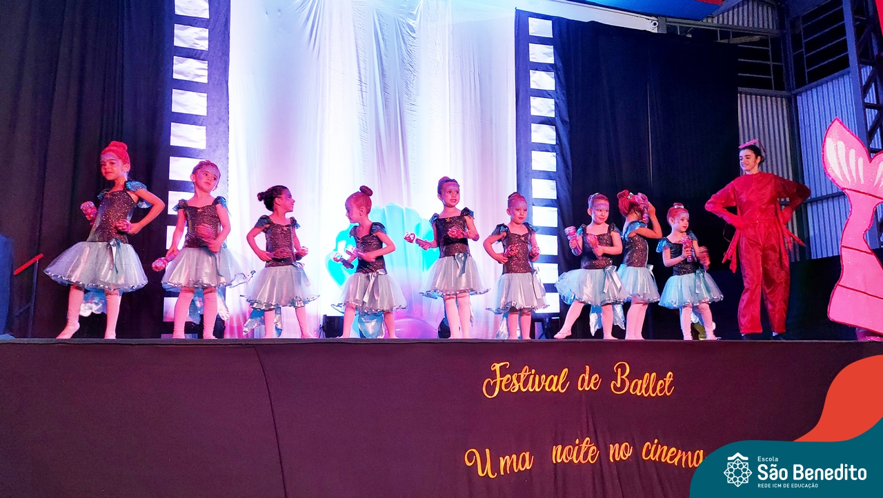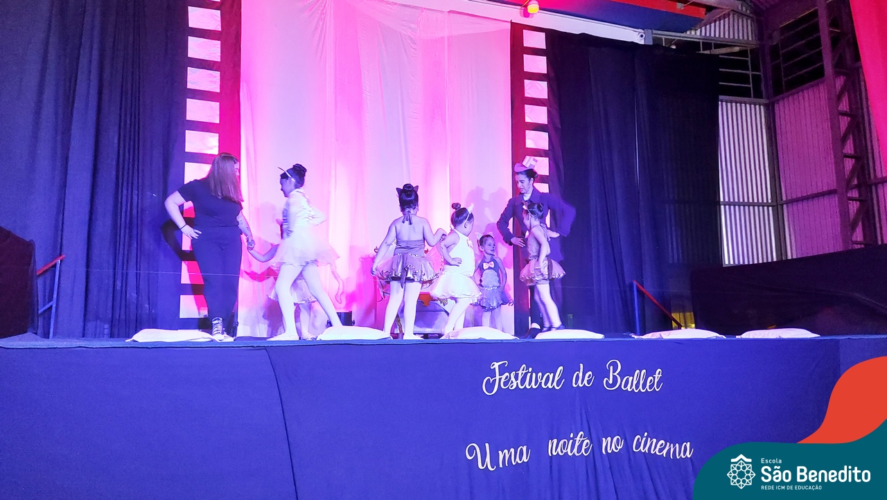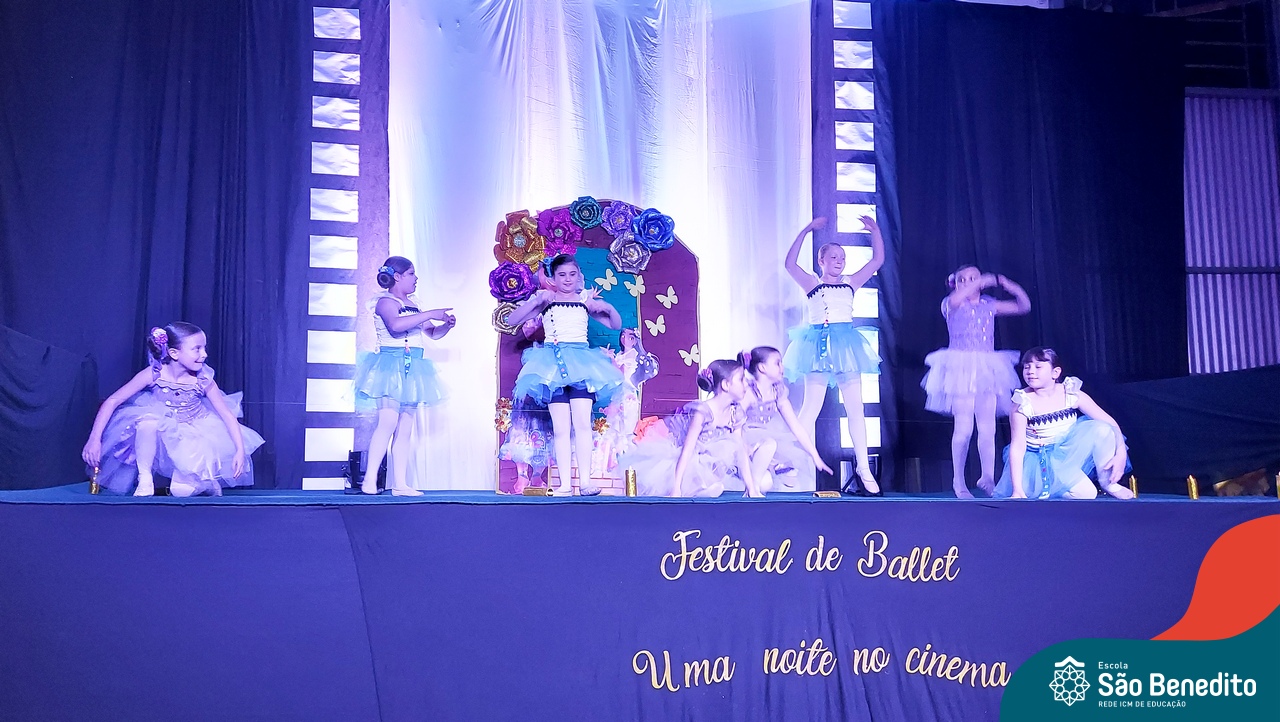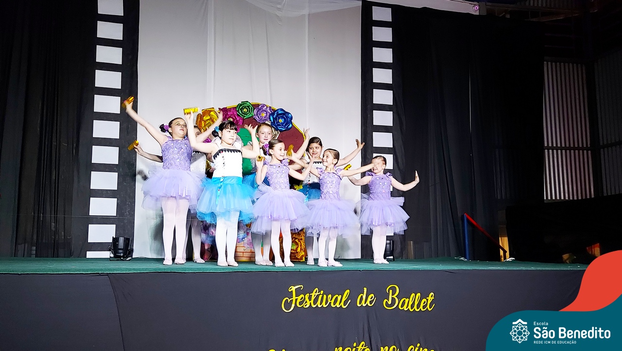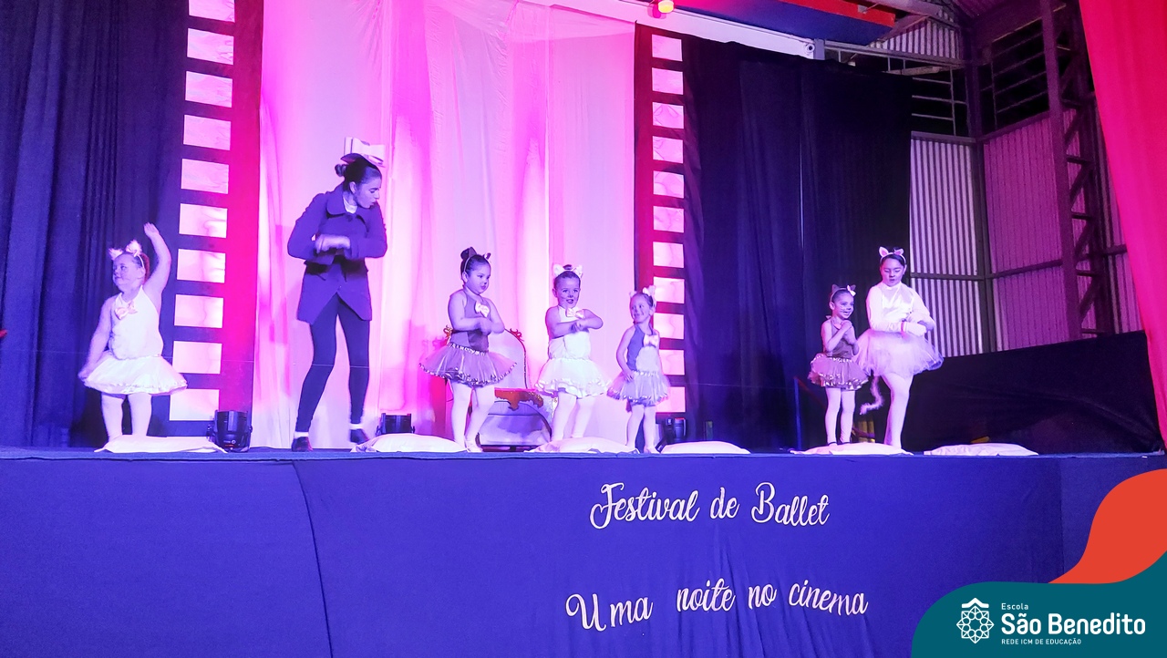 Na noite de 27 de outubro, a Escola São Benedito realizou um dos eventos anuais mais aclamados pela comunidade escolar: o Festival de Ballet. O espetáculo, que foi organizado pela professora Aryane Almeida de Leon e equipe, teve como tema “Uma noite no Cinema”, e buscou proporcionar muito mais do que um simples momento de prestígio: visou oferecer também, uma experiência altamente imersiva no mundo do cinema. Para isso, diversas das gerações presentes relembraram a infância com uma experiência visual, auditiva e tátil, que foi coroada com a guloseima mais amada dos cinemas: a pipoca.