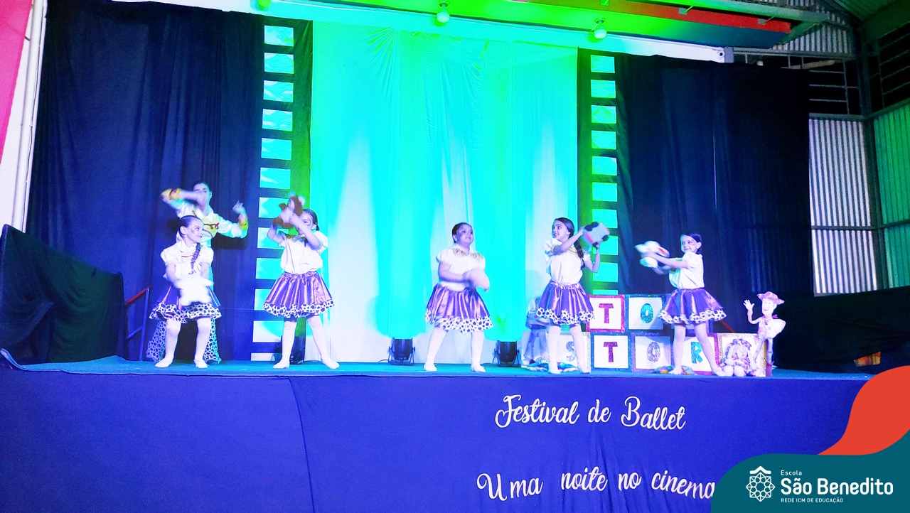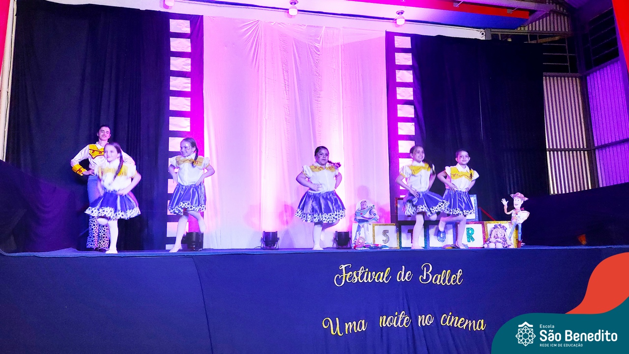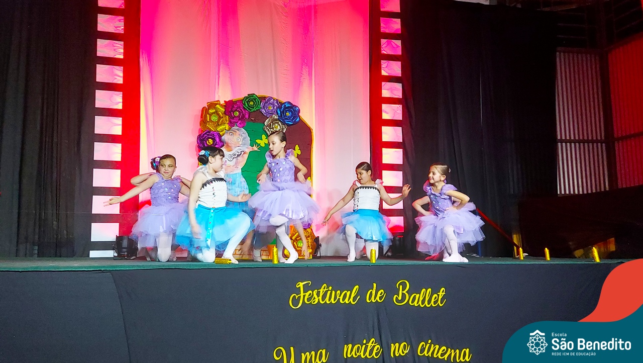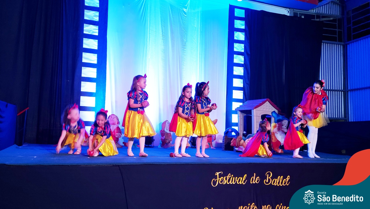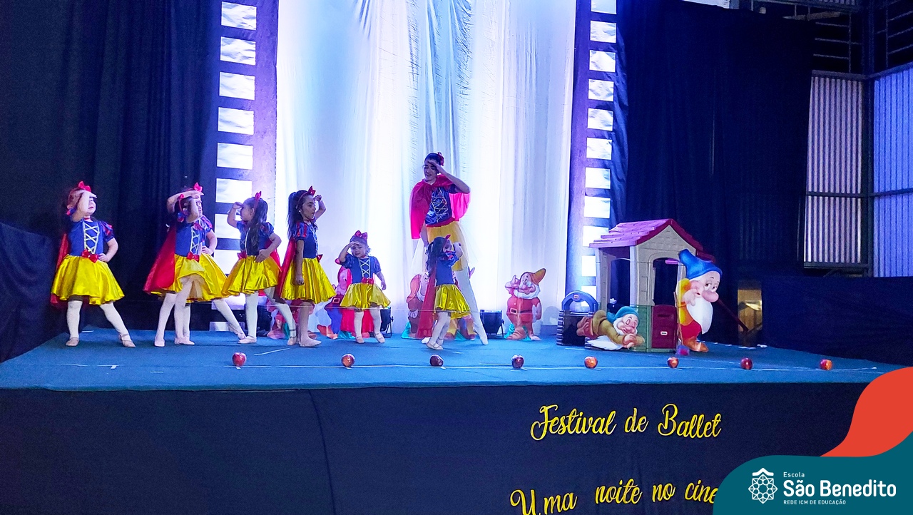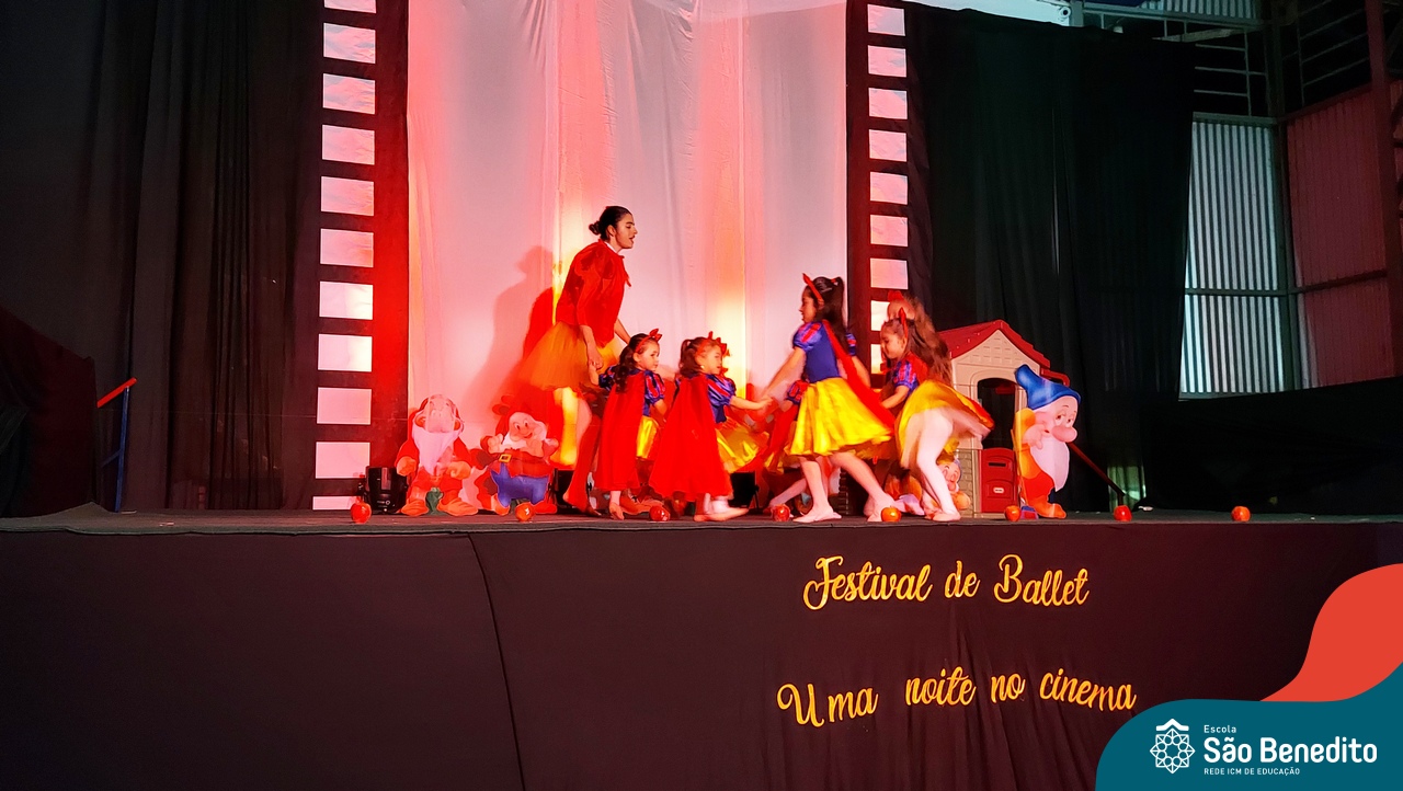 Na noite de 27 de outubro, a Escola São Benedito realizou um dos eventos anuais mais aclamados pela comunidade escolar: o Festival de Ballet. O espetáculo, que foi organizado pela professora Aryane Almeida de Leon e equipe, teve como tema “Uma noite no Cinema”, e buscou proporcionar muito mais do que um simples momento de prestígio: visou oferecer também, uma experiência altamente imersiva no mundo do cinema. Para isso, diversas das gerações presentes relembraram a infância com uma experiência visual, auditiva e tátil, que foi coroada com a guloseima mais amada dos cinemas: a pipoca.