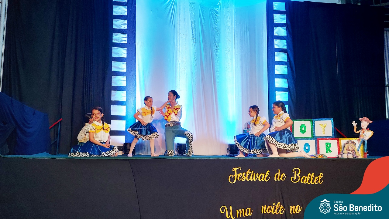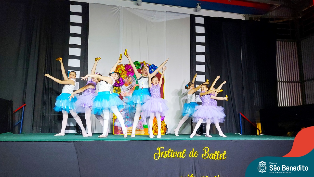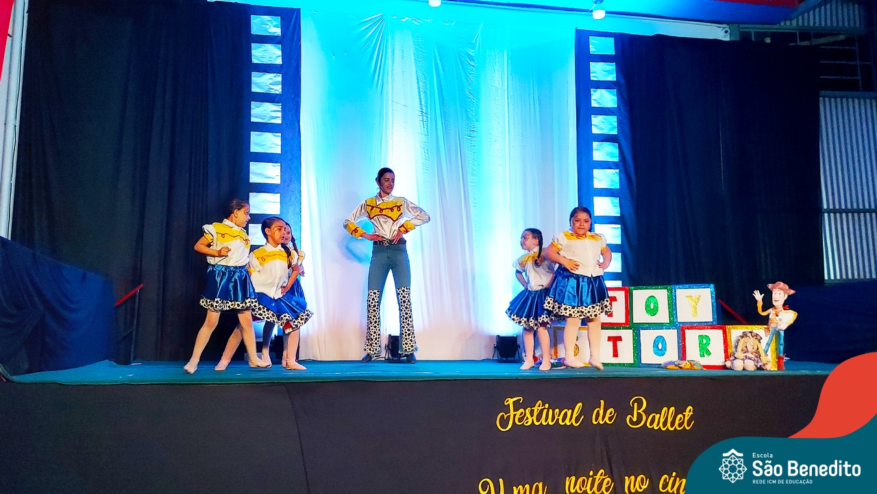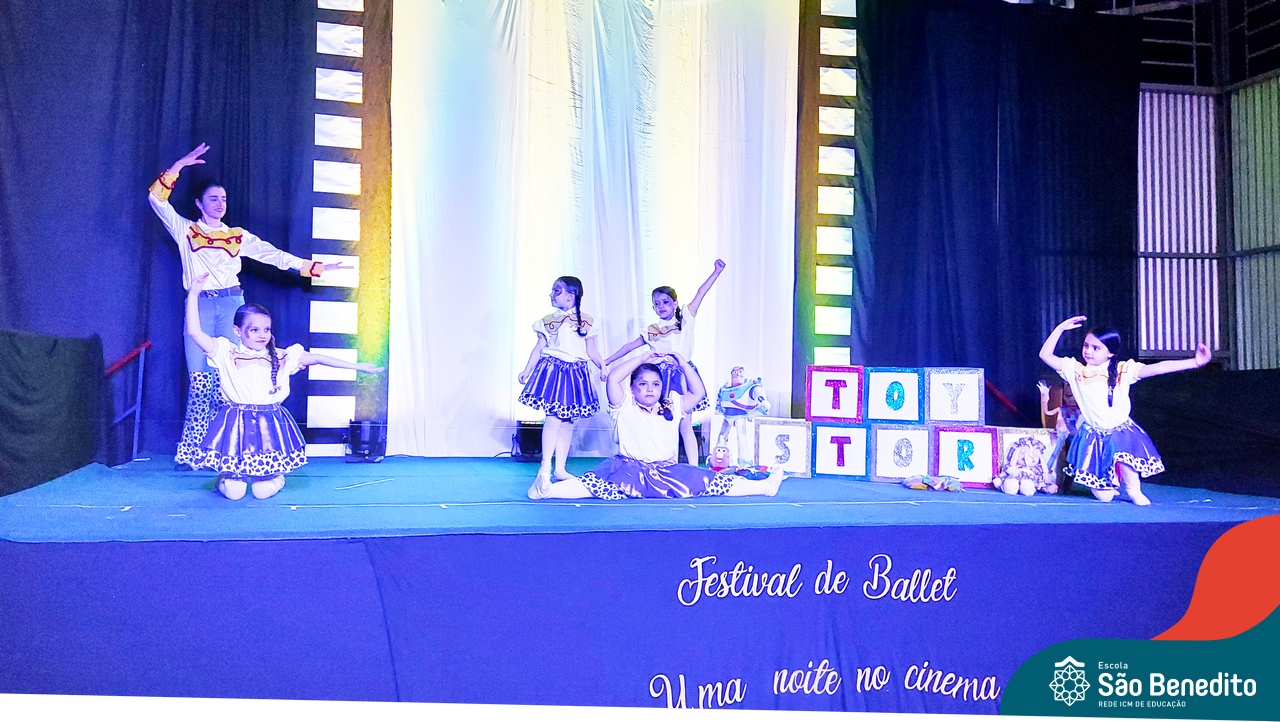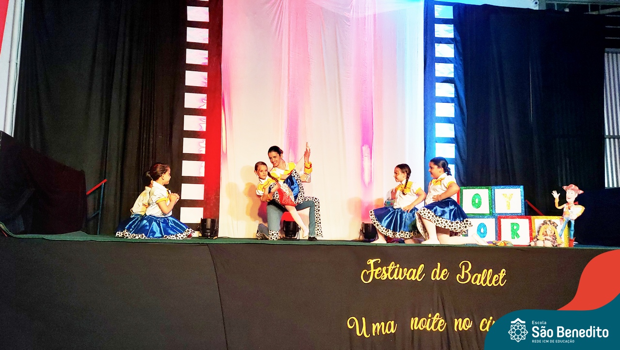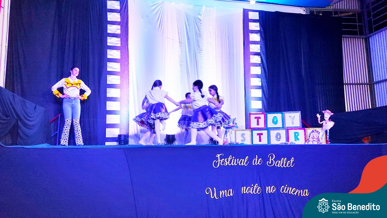 Na noite de 27 de outubro, a Escola São Benedito realizou um dos eventos anuais mais aclamados pela comunidade escolar: o Festival de Ballet. O espetáculo, que foi organizado pela professora Aryane Almeida de Leon e equipe, teve como tema “Uma noite no Cinema”, e buscou proporcionar muito mais do que um simples momento de prestígio: visou oferecer também, uma experiência altamente imersiva no mundo do cinema. Para isso, diversas das gerações presentes relembraram a infância com uma experiência visual, auditiva e tátil, que foi coroada com a guloseima mais amada dos cinemas: a pipoca.