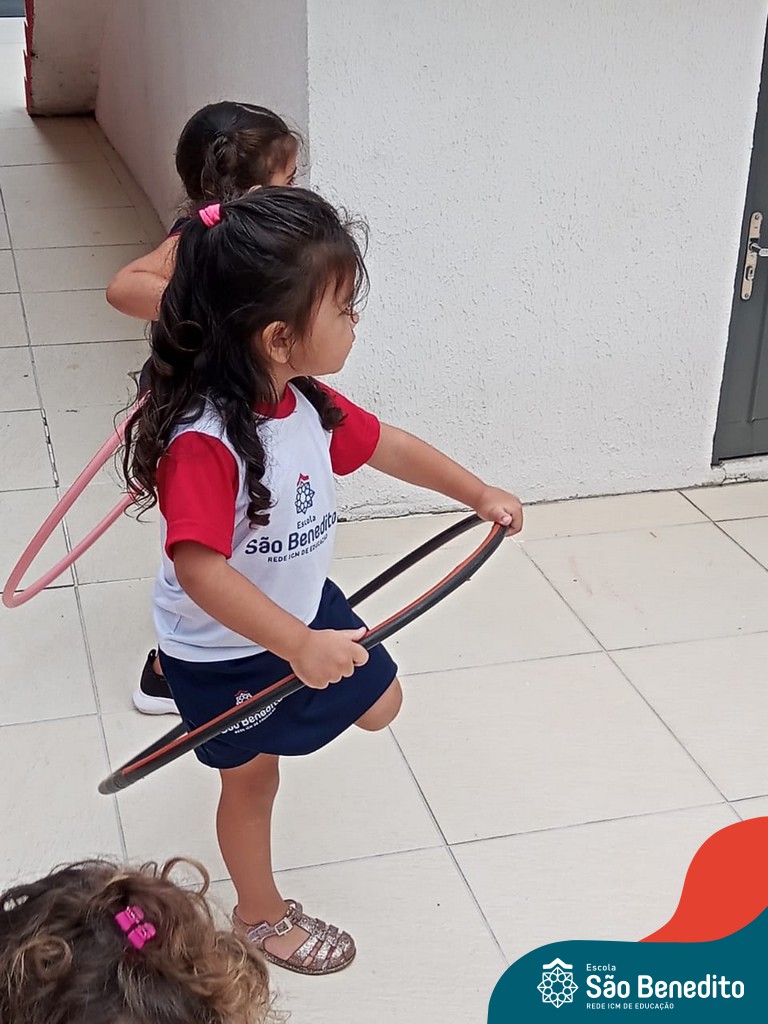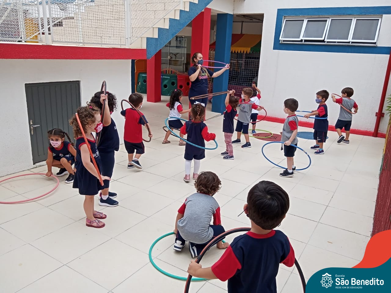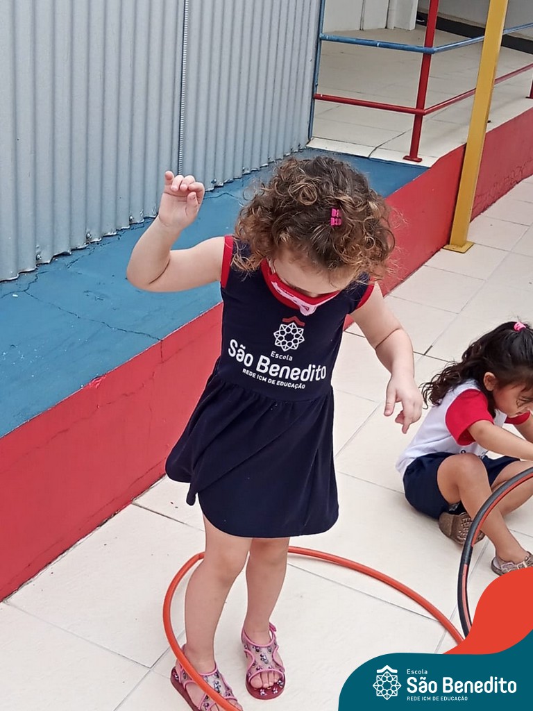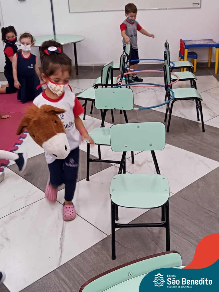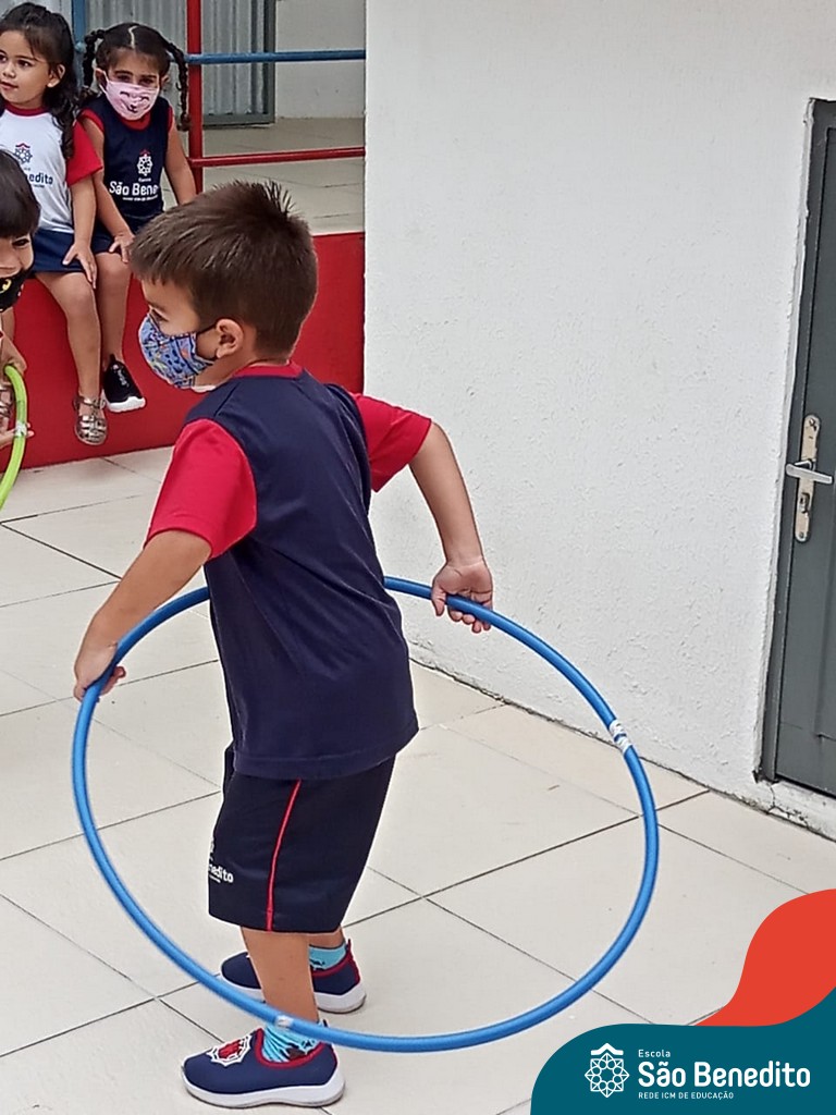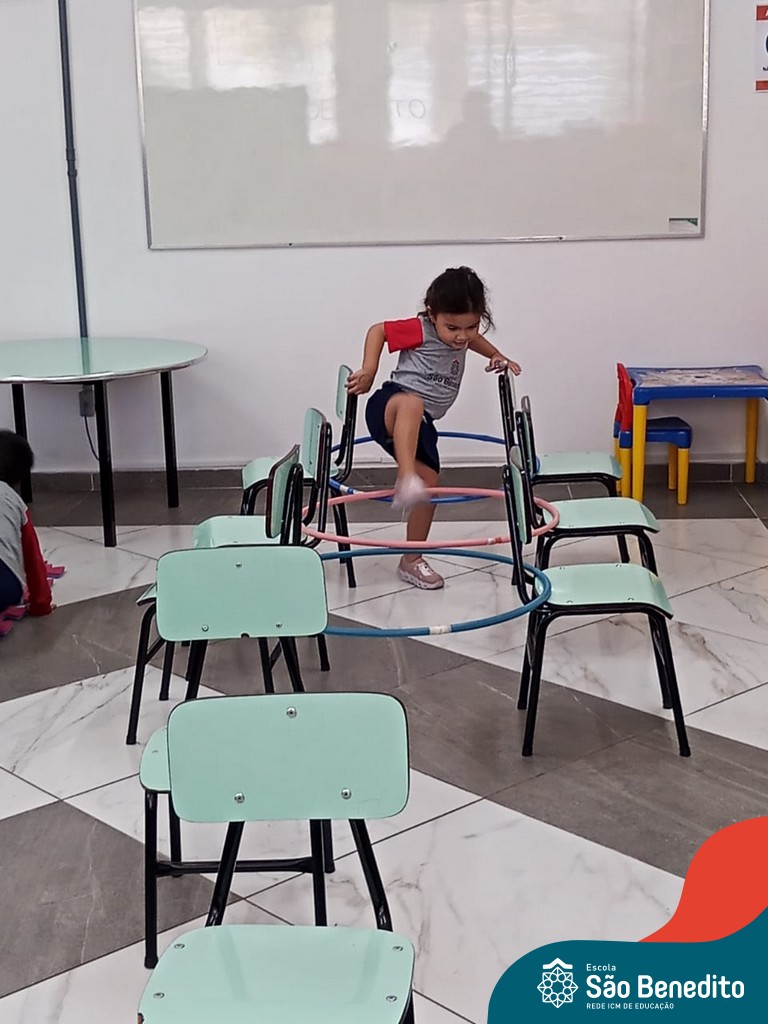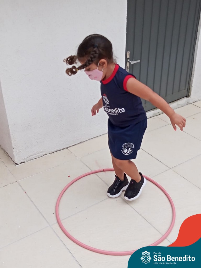 Circuito feito com bambolês. Atividades dirigidas com músicas e brincadeiras com legos.
