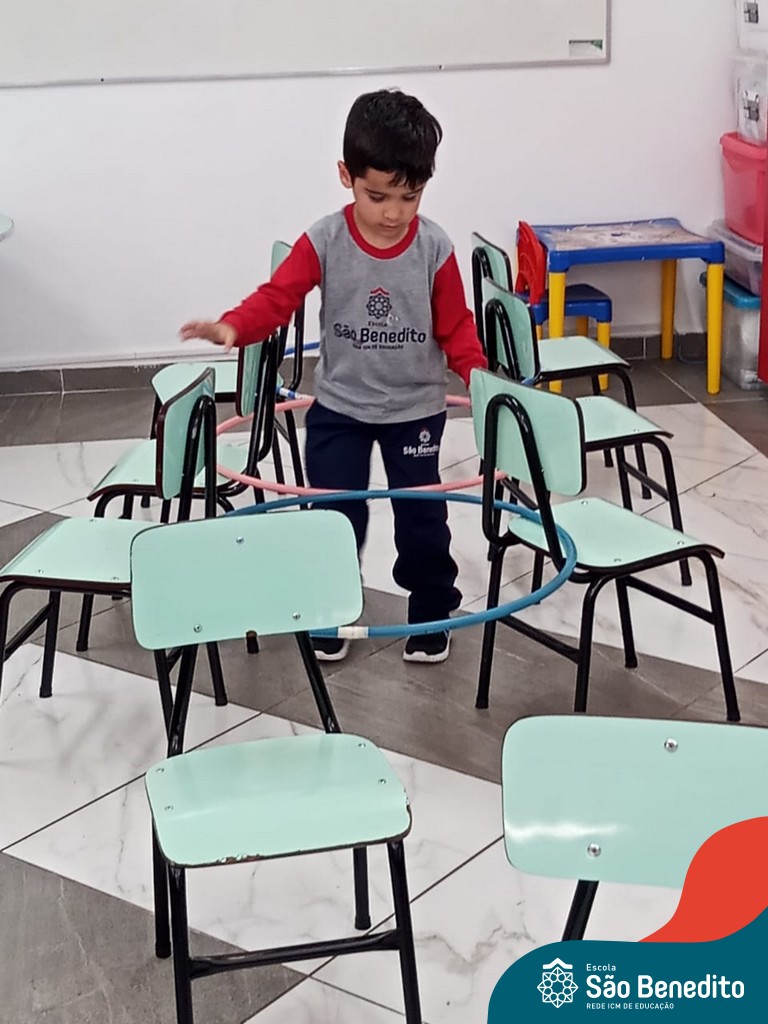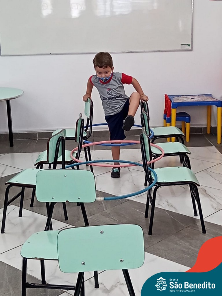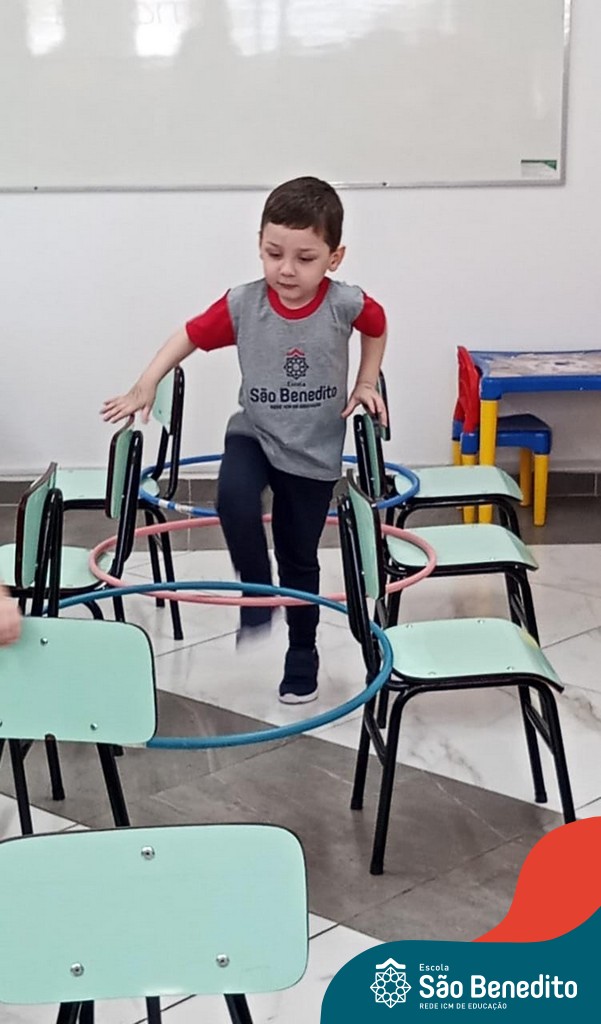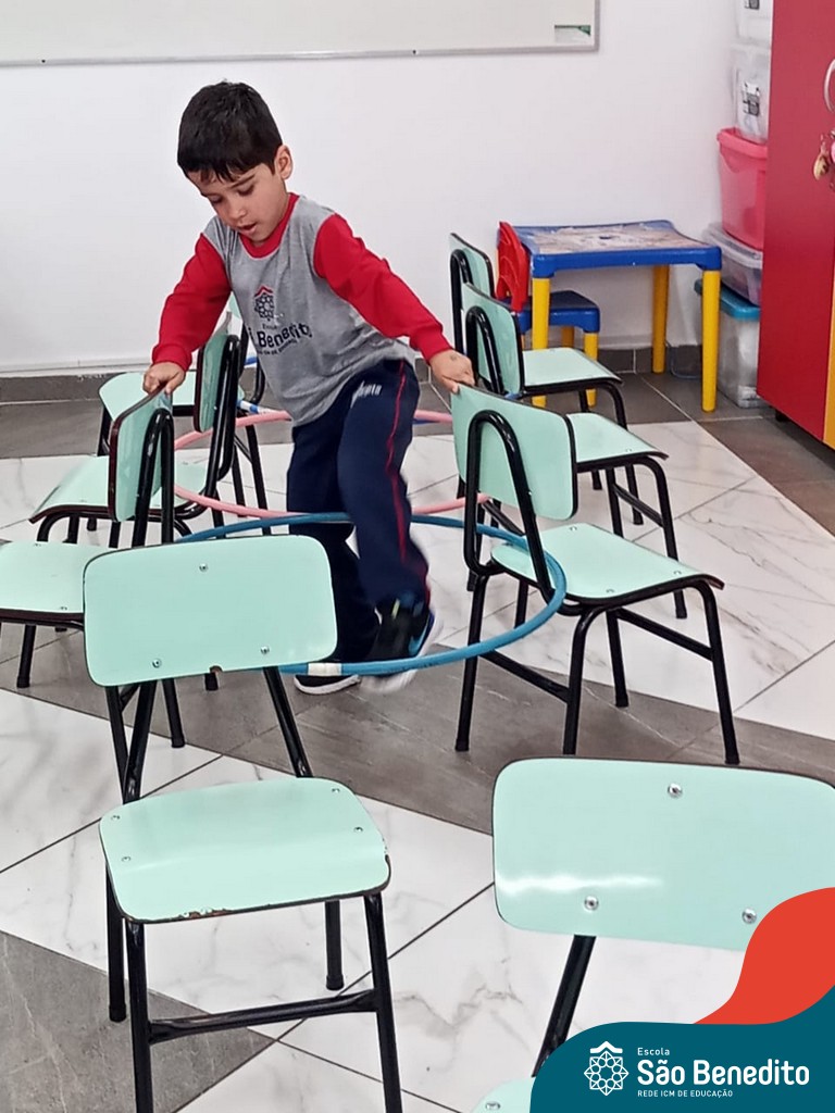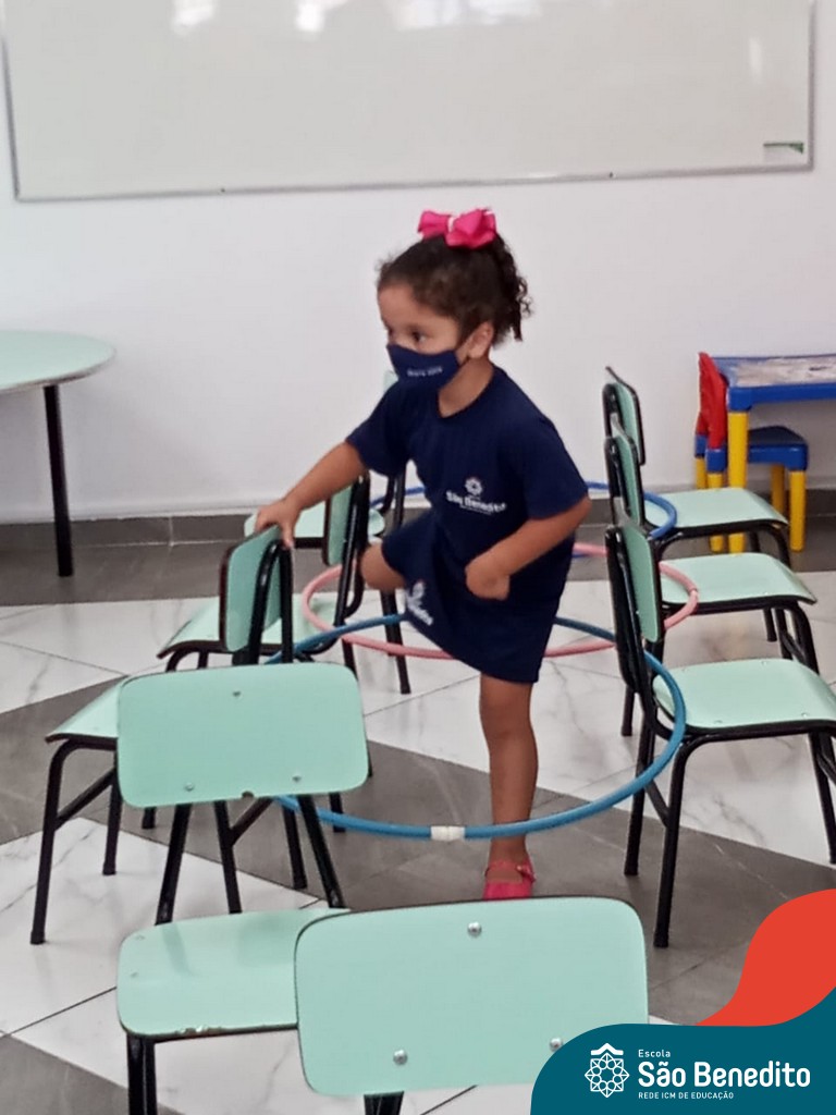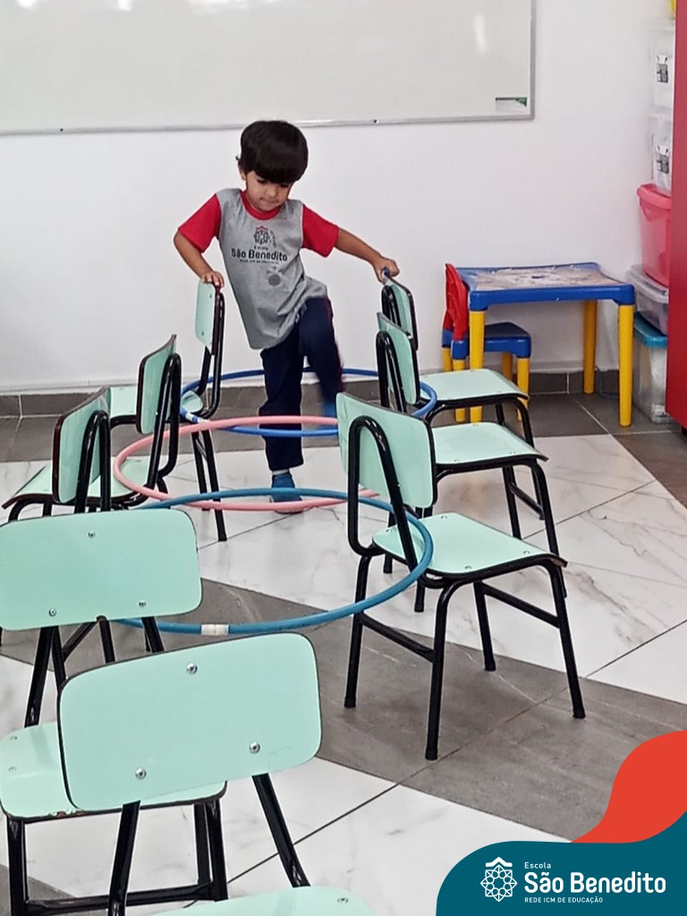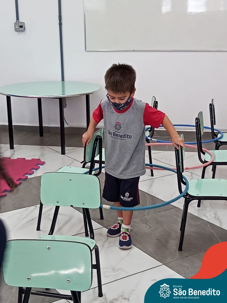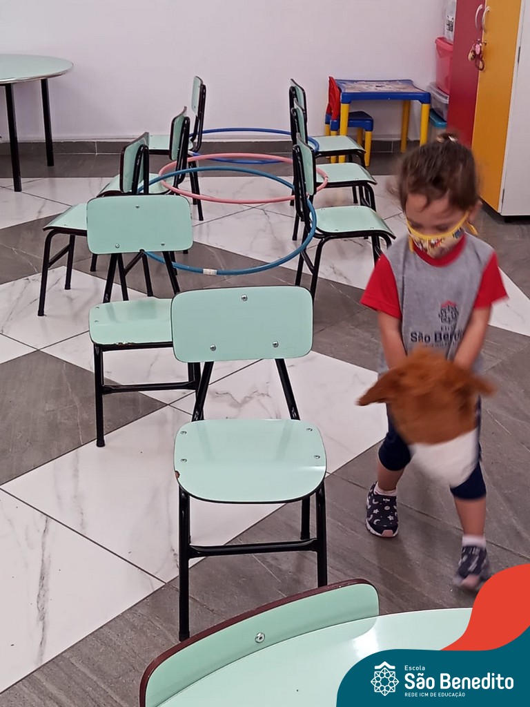 Circuito feito com bambolês. Atividades dirigidas com músicas e brincadeiras com legos.