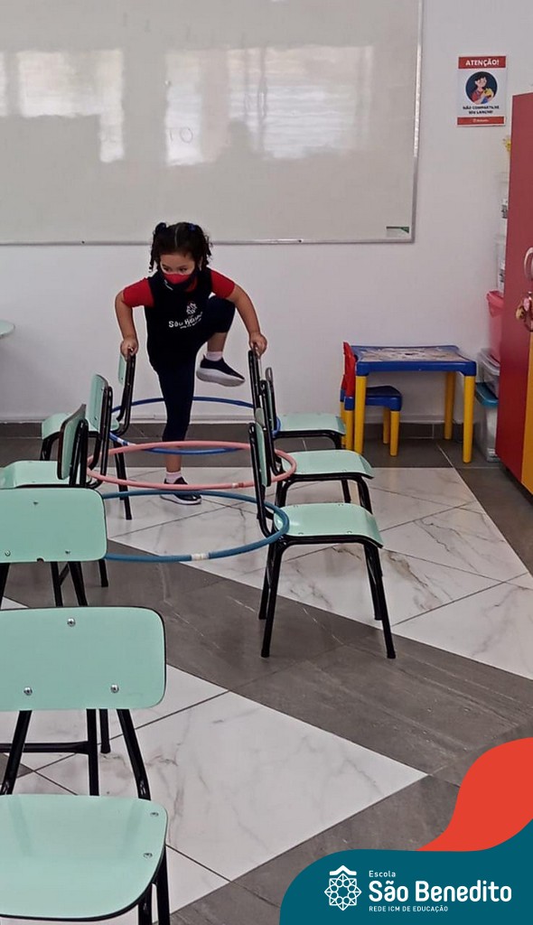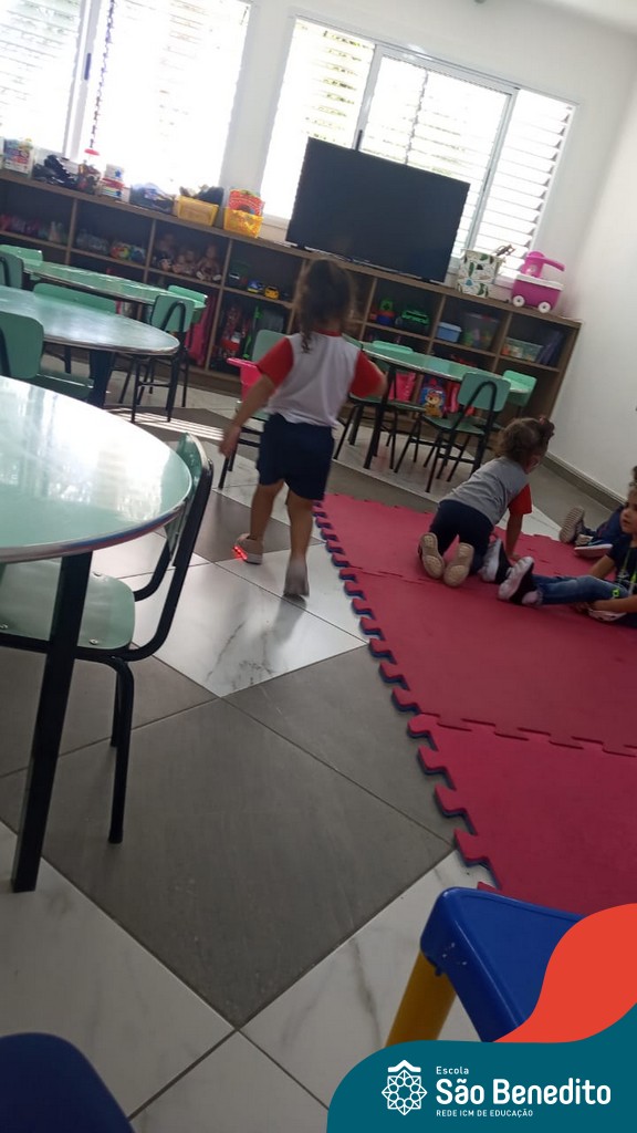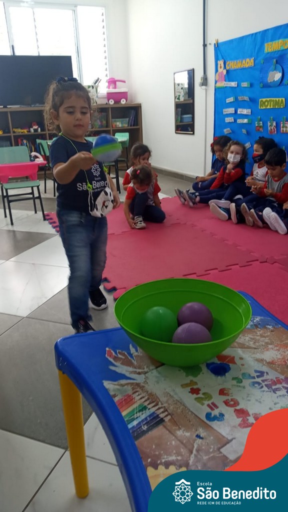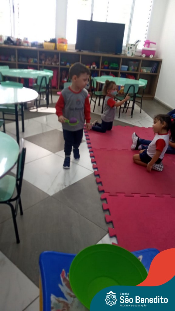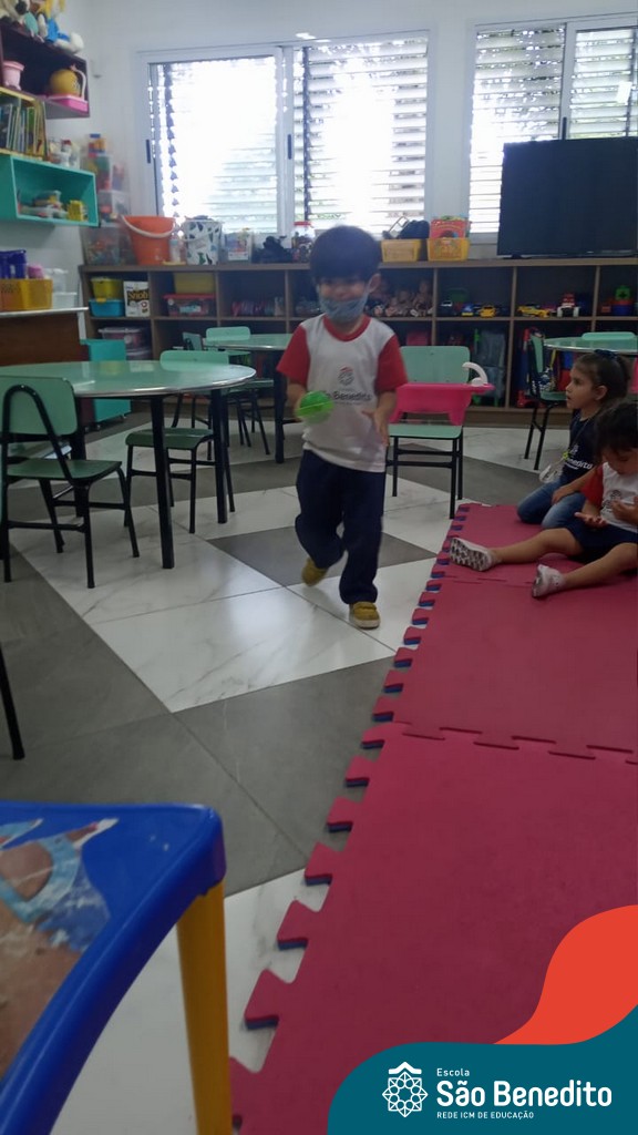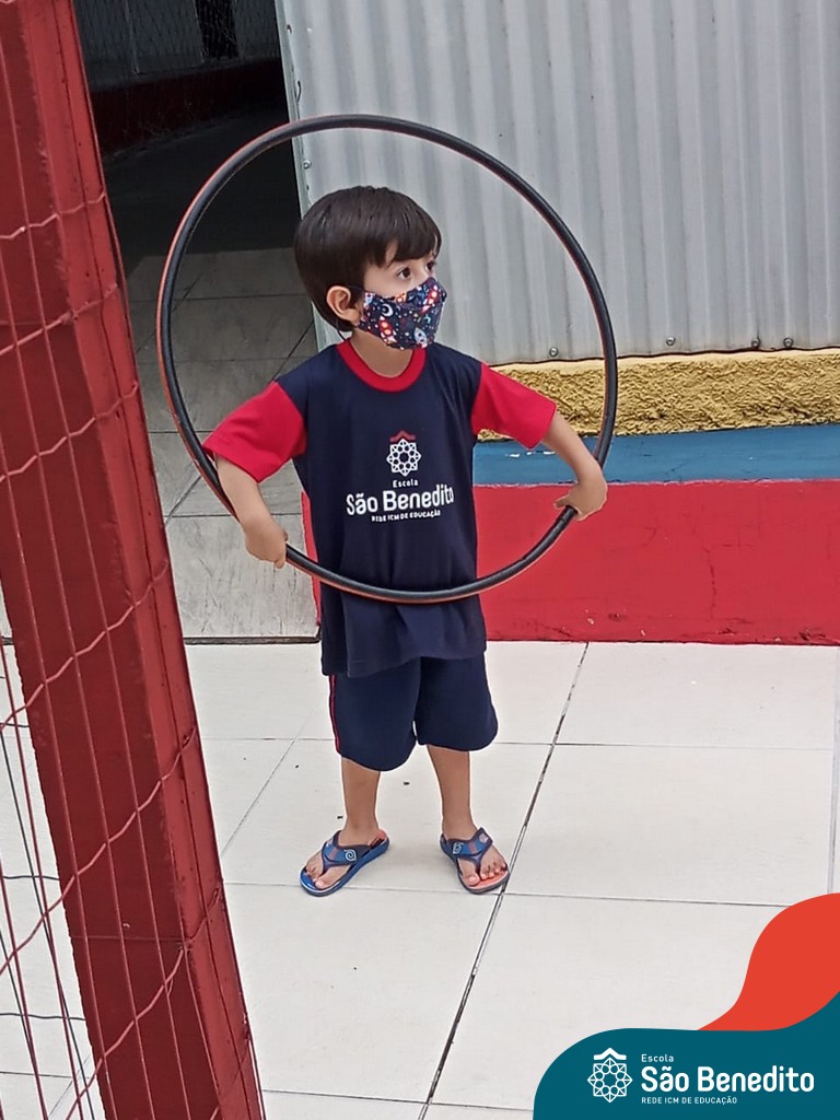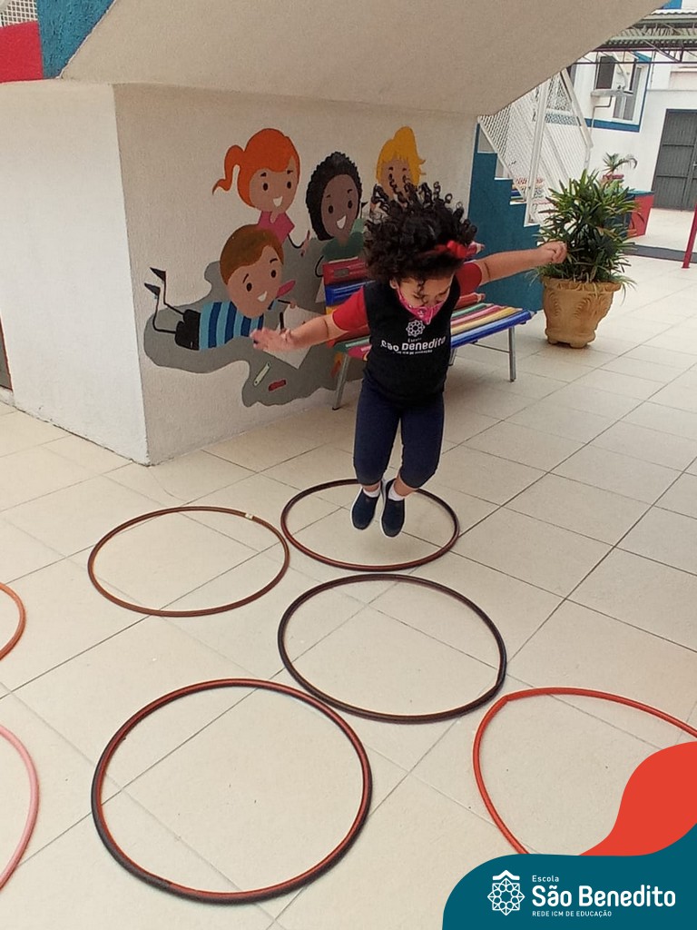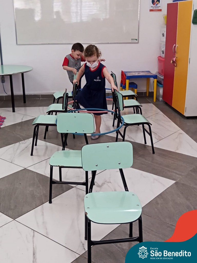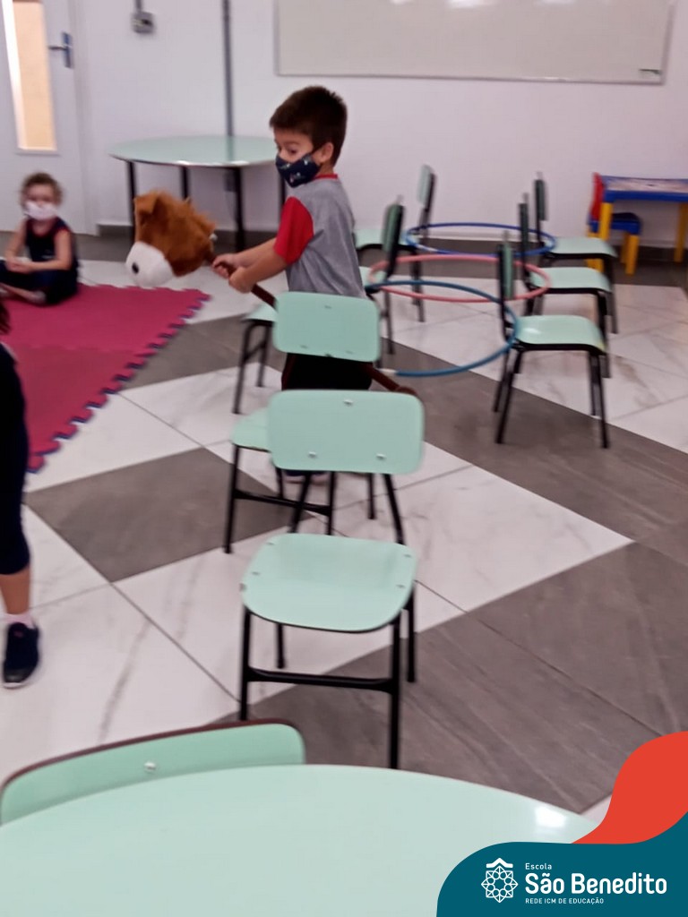 Circuito feito com bambolês. Atividades dirigidas com músicas e brincadeiras com legos.