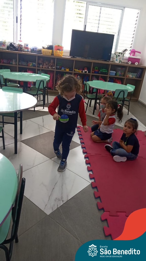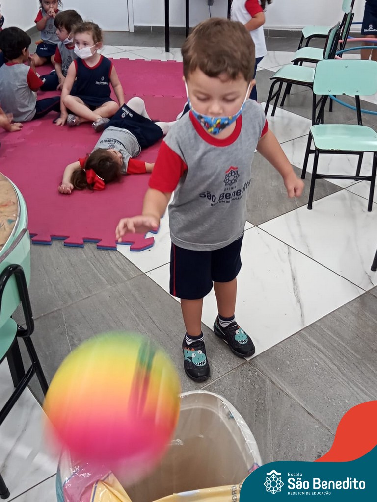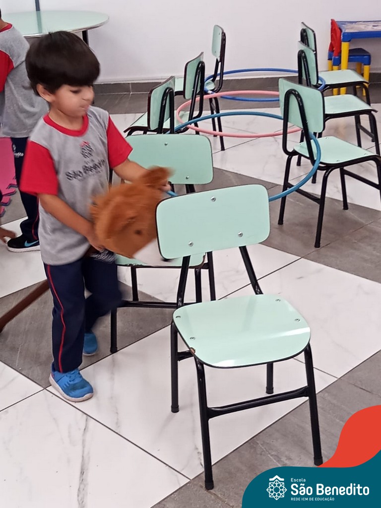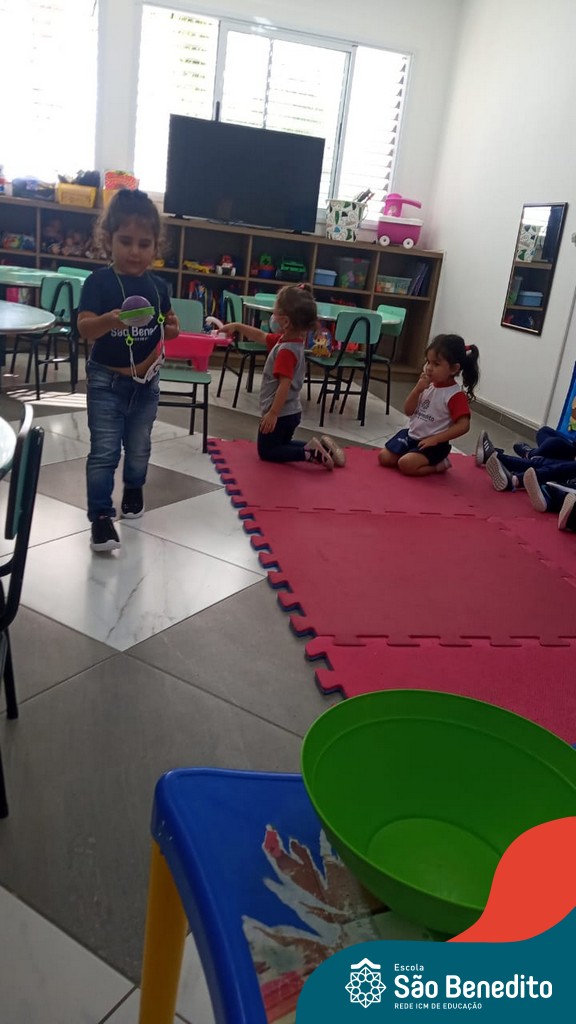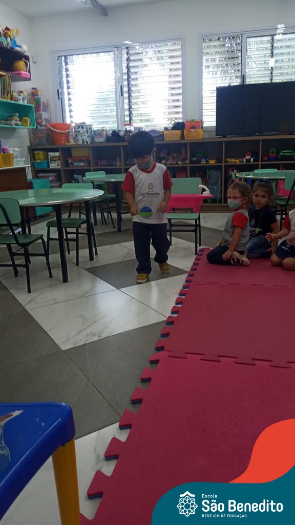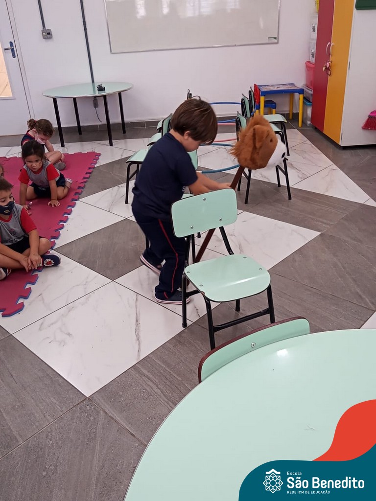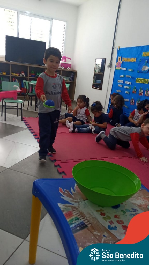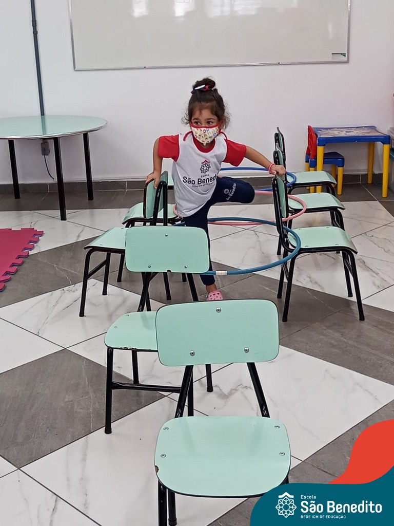 Circuito feito com bambolês. Atividades dirigidas com músicas e brincadeiras com legos.