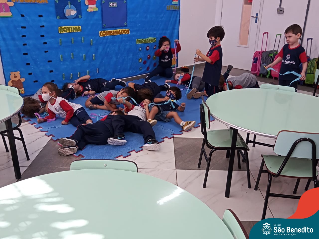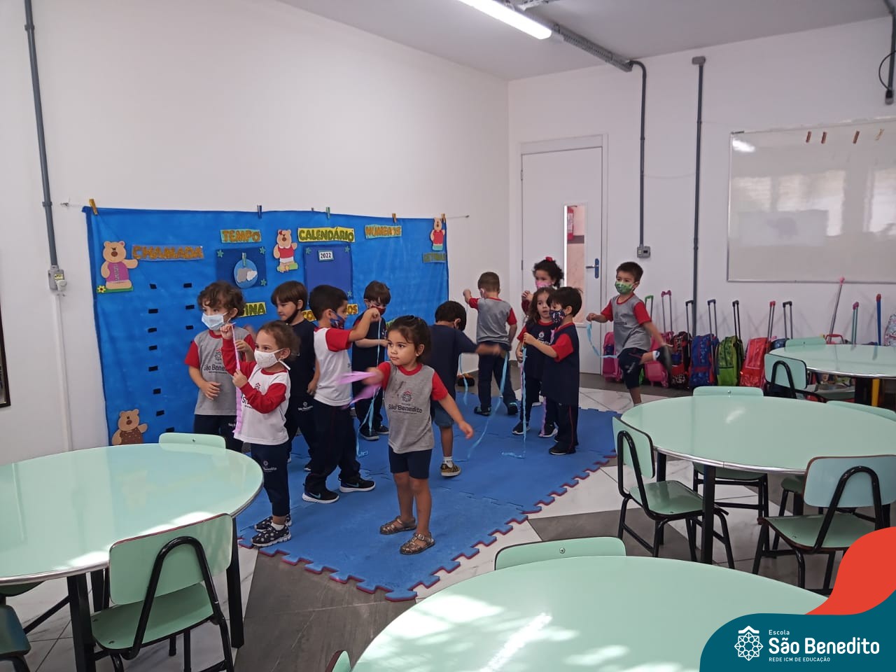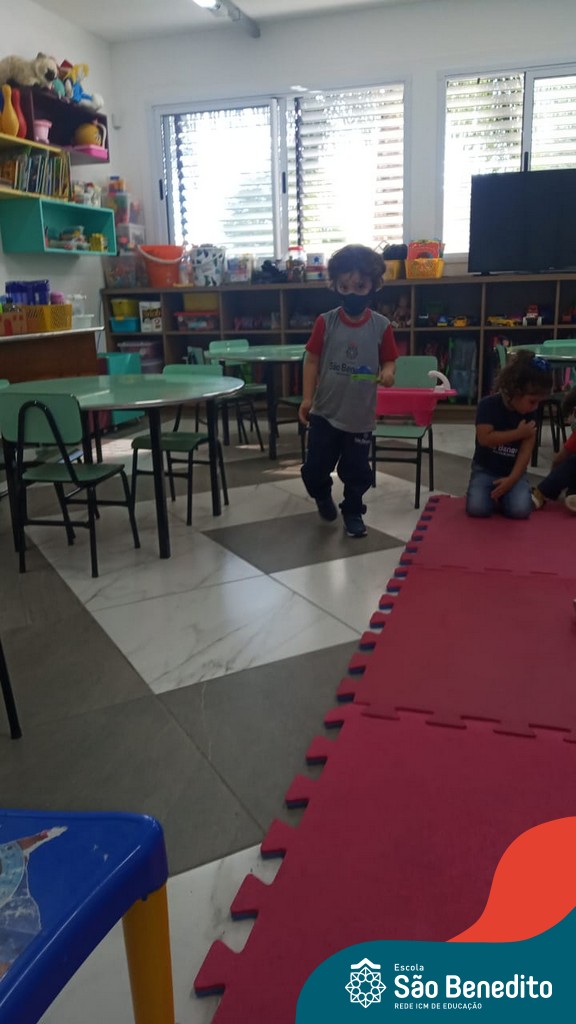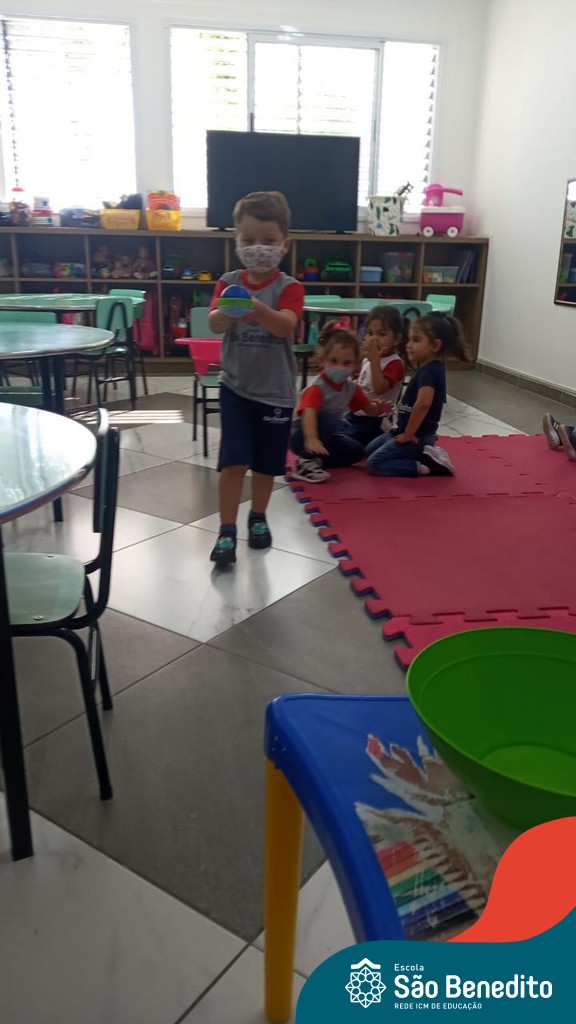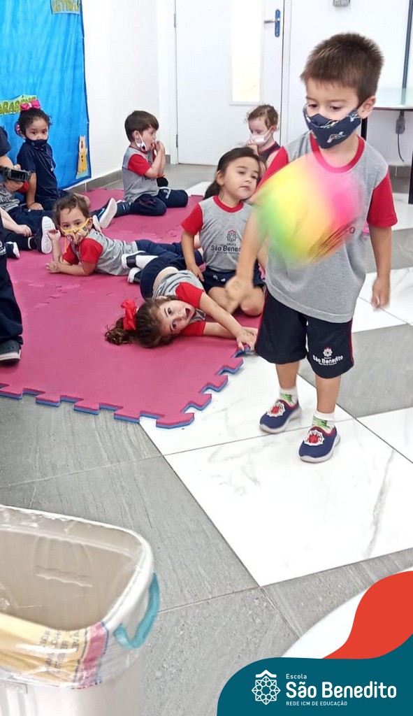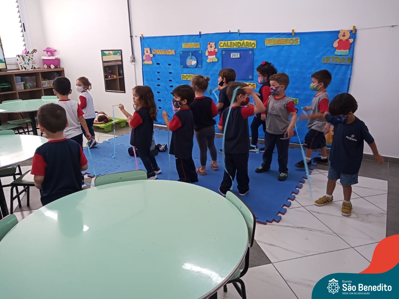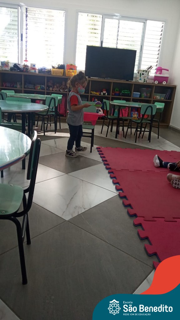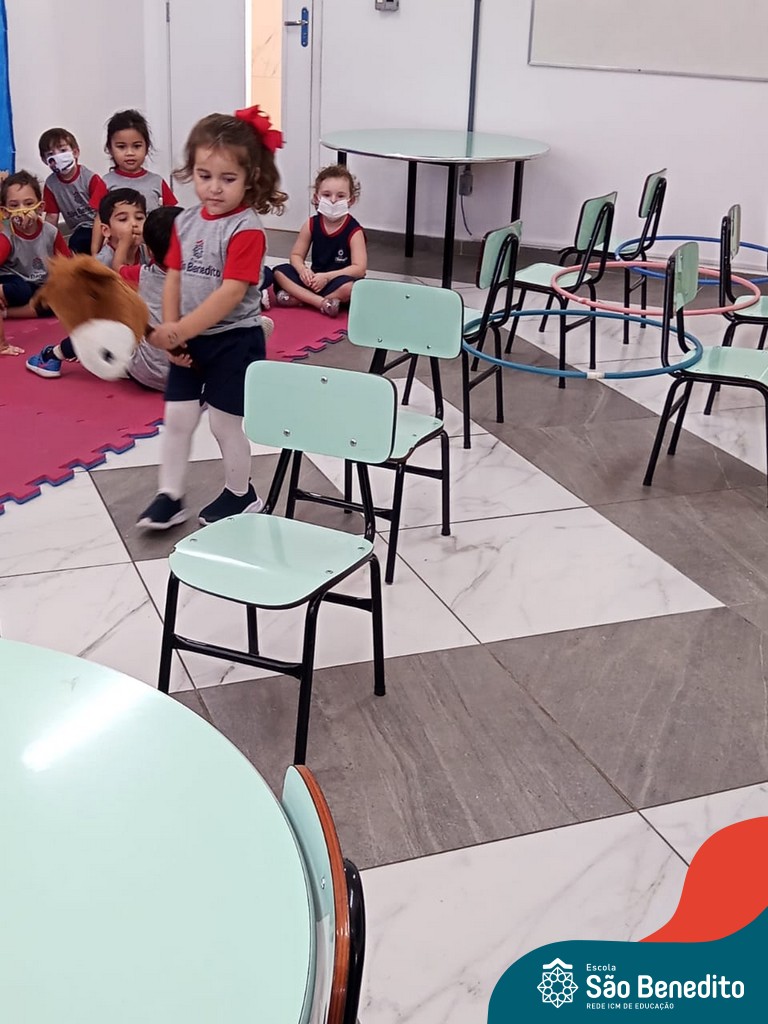 Circuito feito com bambolês. Atividades dirigidas com músicas e brincadeiras com legos.