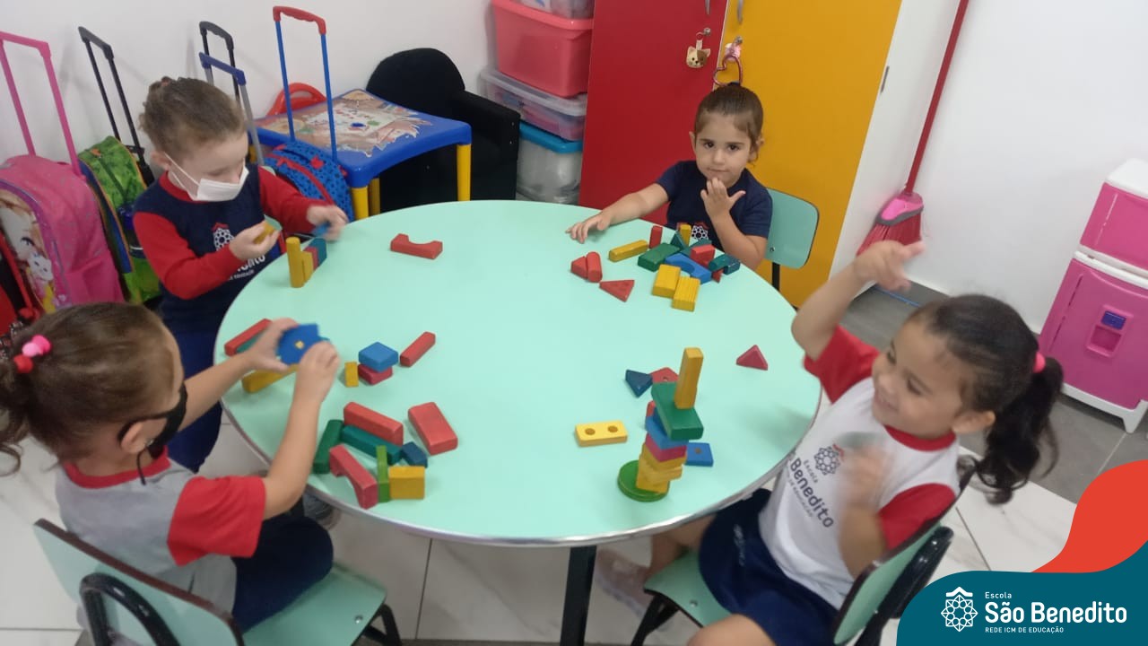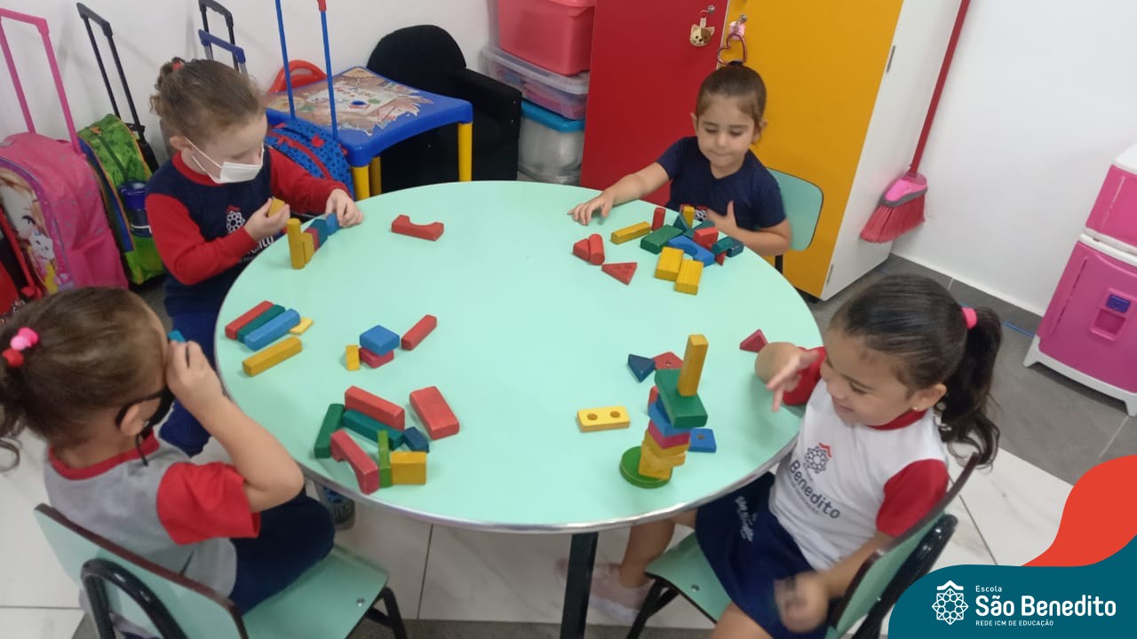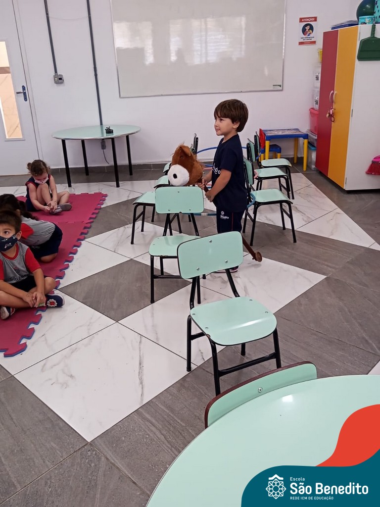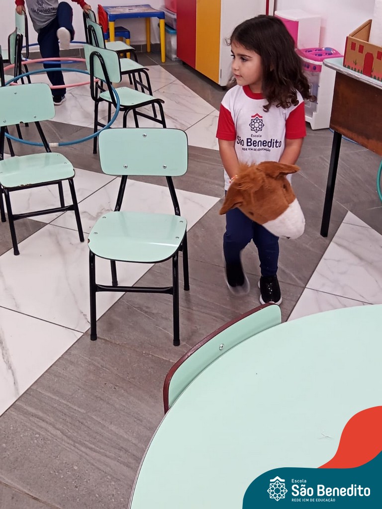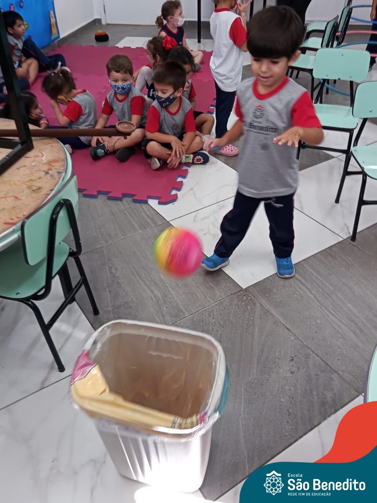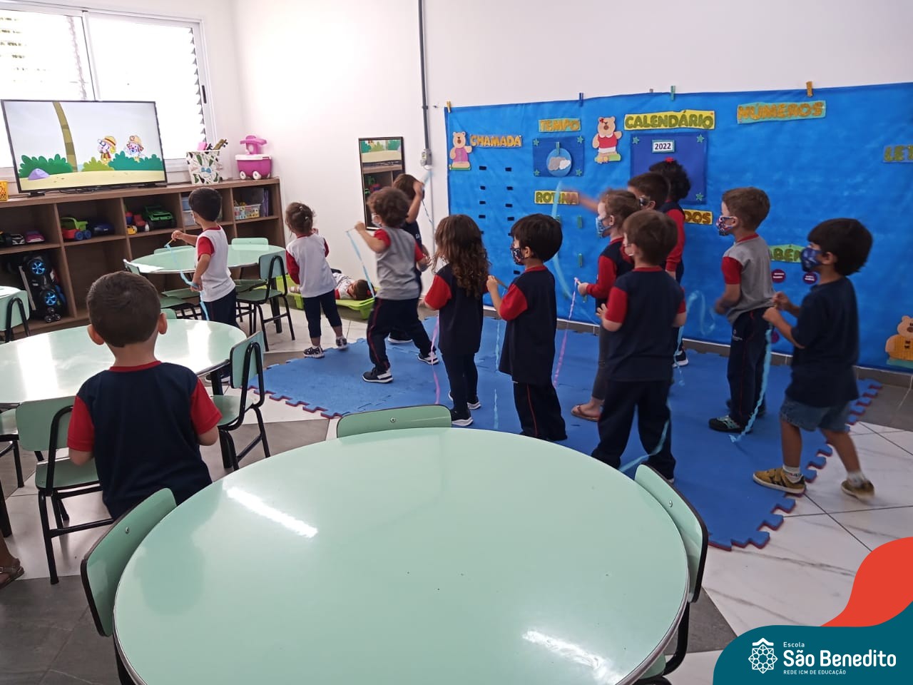 Circuito feito com bambolês. Atividades dirigidas com músicas e brincadeiras com legos.