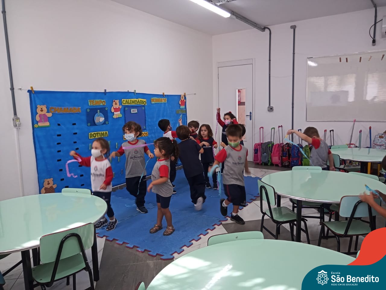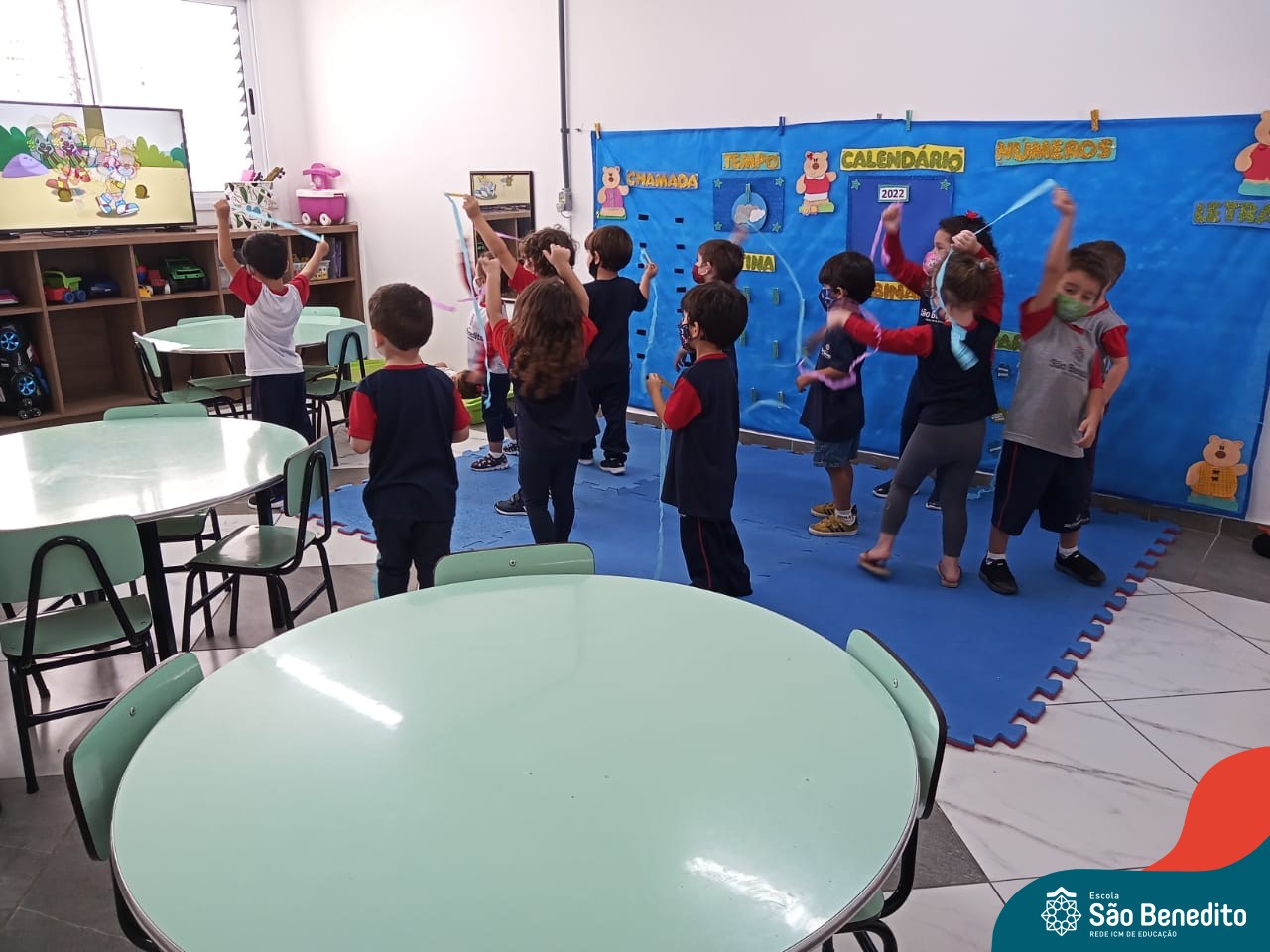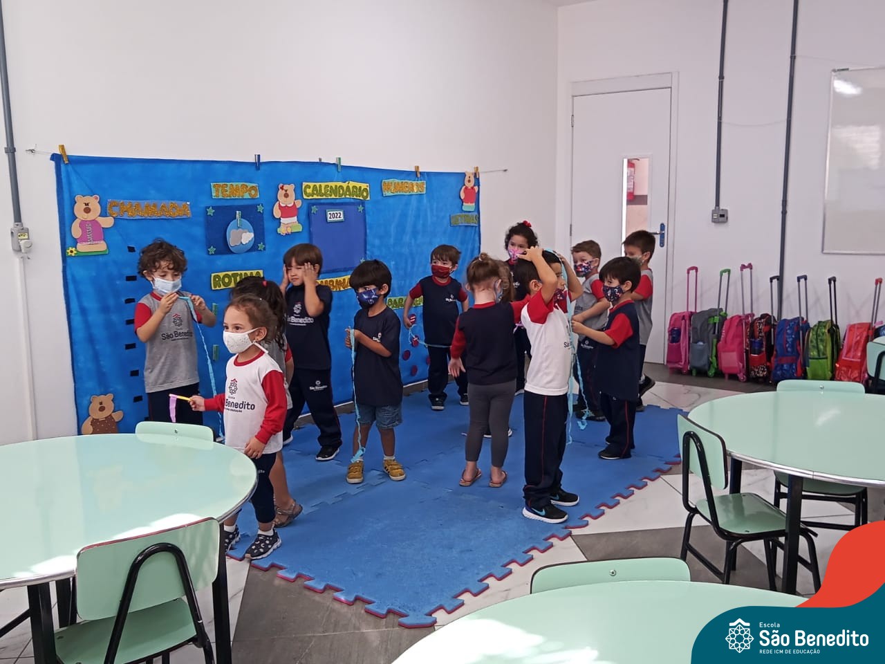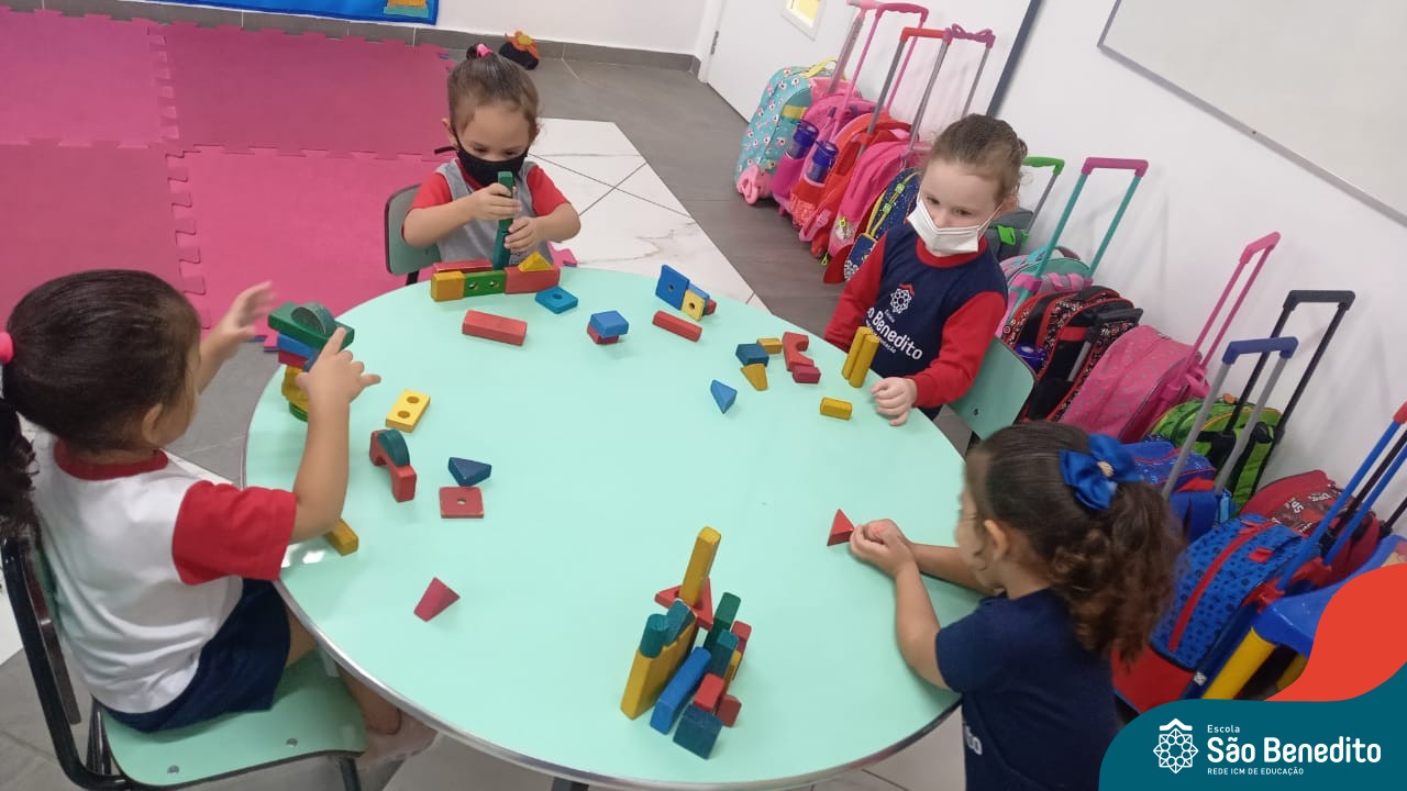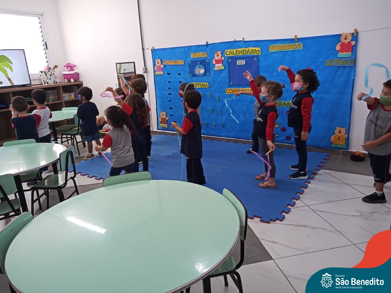 Circuito feito com bambolês. Atividades dirigidas com músicas e brincadeiras com legos.