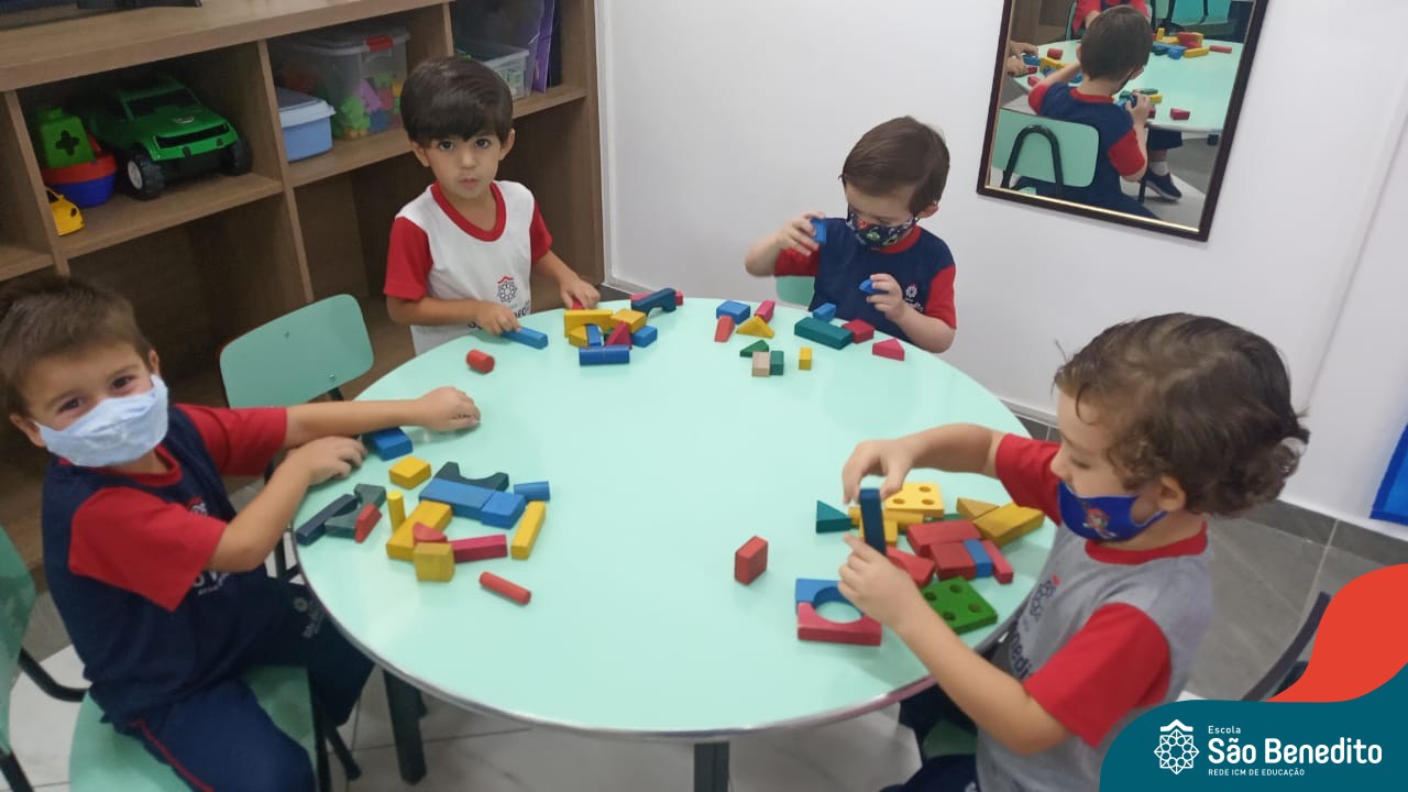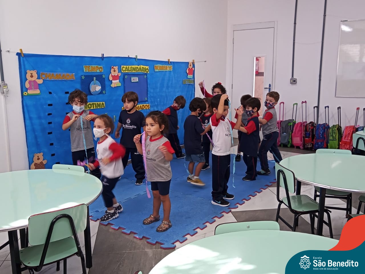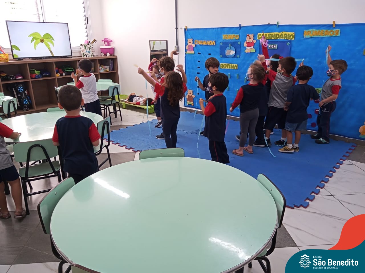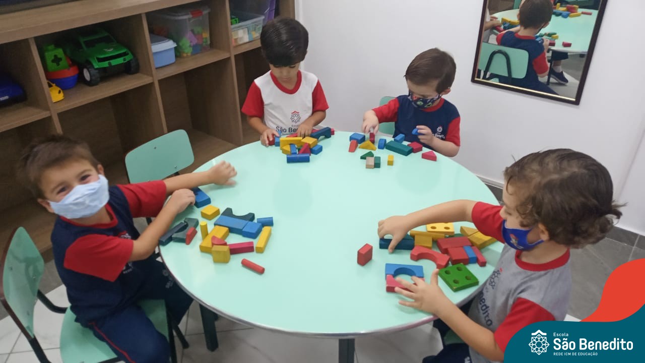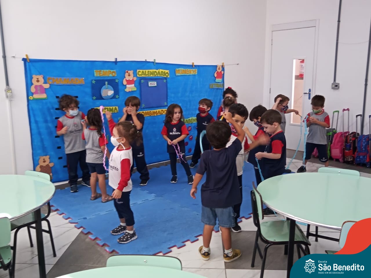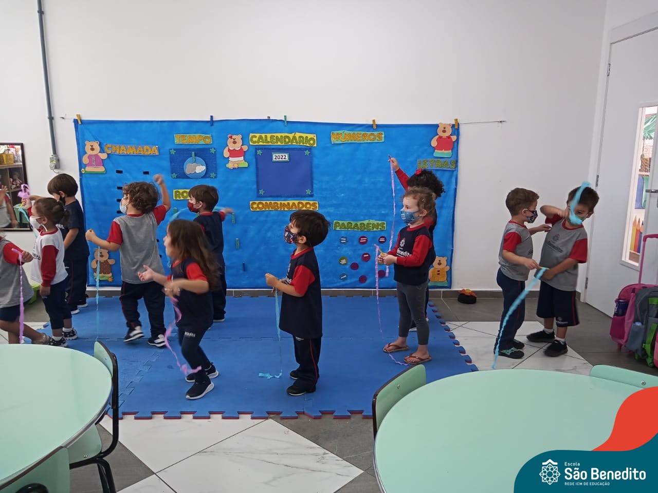 Circuito feito com bambolês. Atividades dirigidas com músicas e brincadeiras com legos.