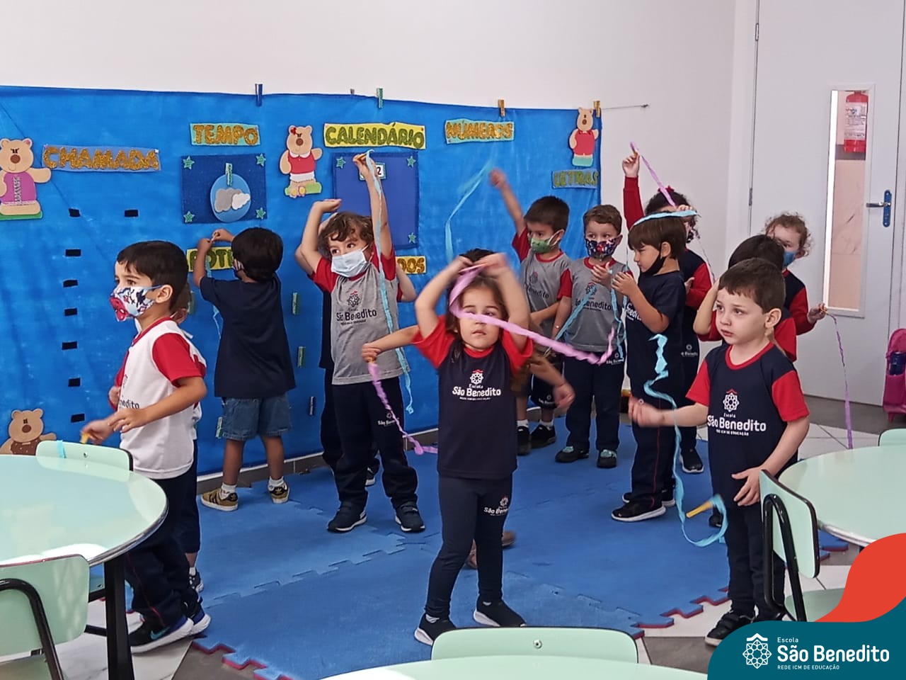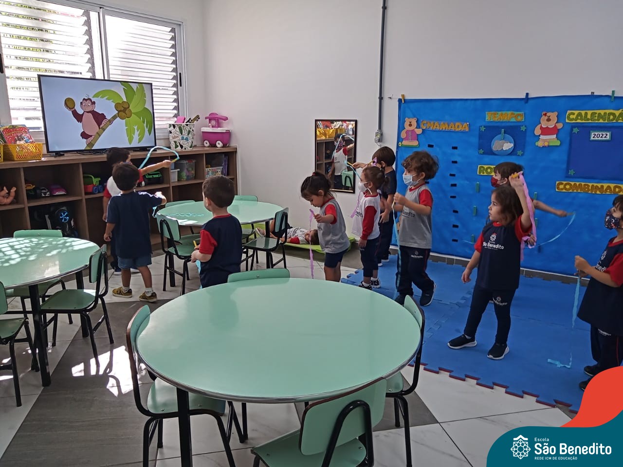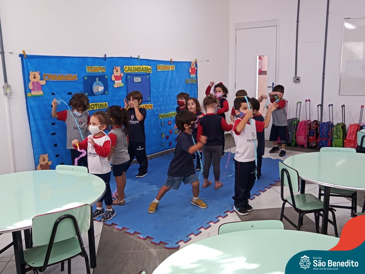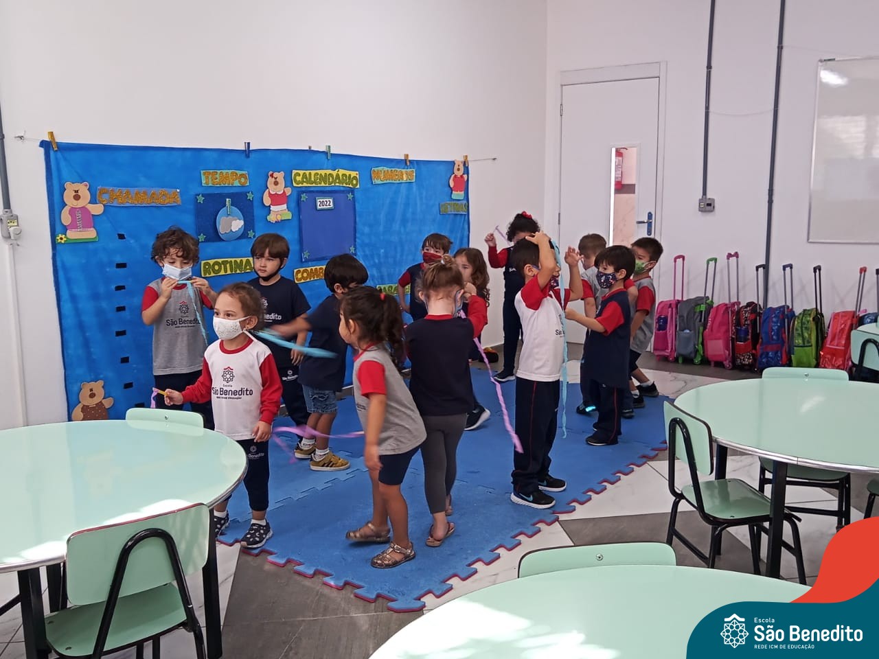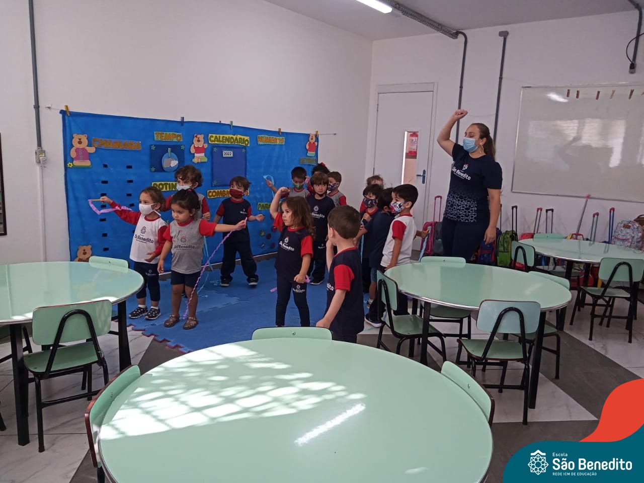 Circuito feito com bambolês. Atividades dirigidas com músicas e brincadeiras com legos.