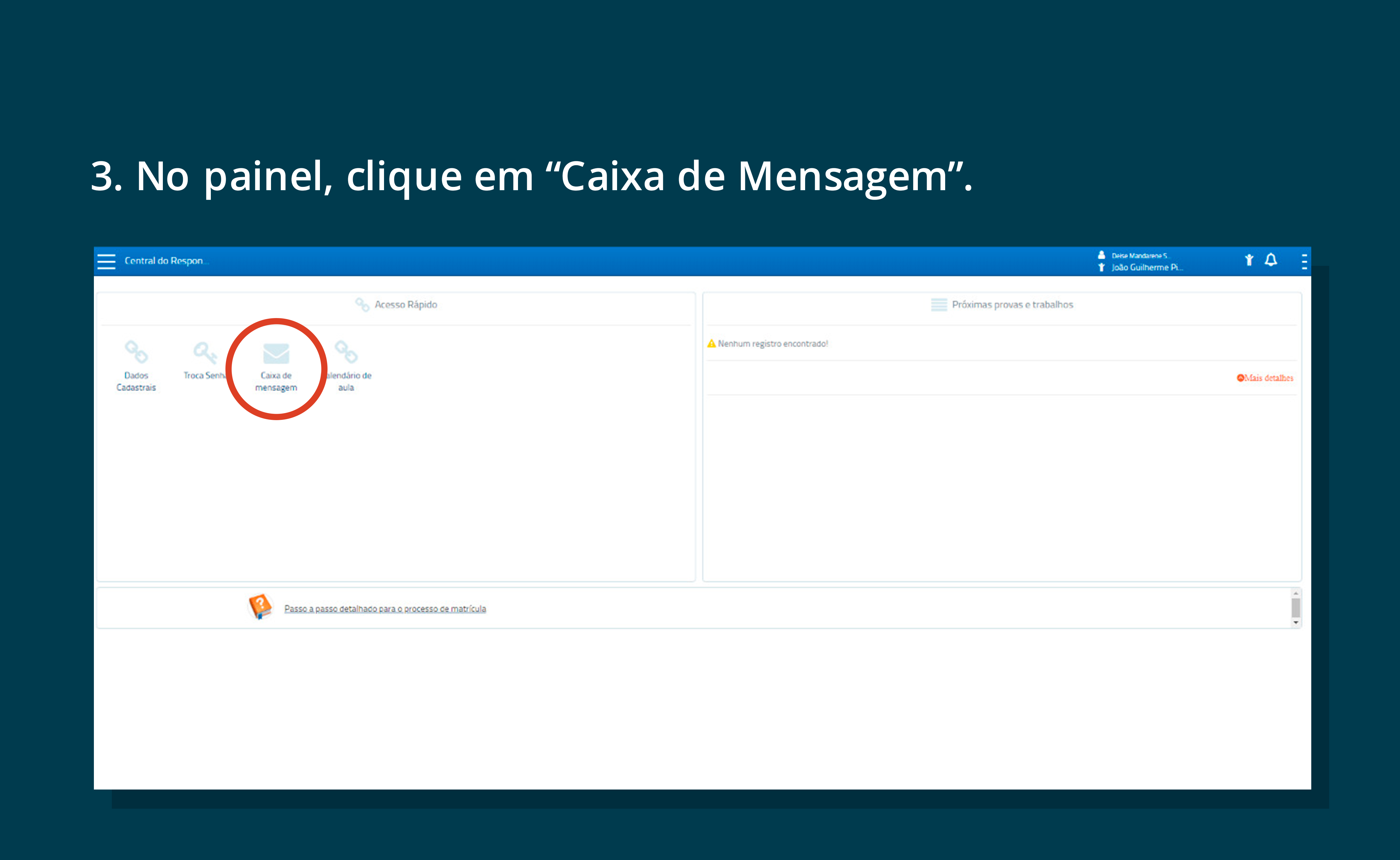 Estimados pais e responsáveis! Solicitamos que verifiquem a caixa de mensagens do Portal Acadêmico, pois estaremos nos comunicando por lá também. Para quem ainda não sabe como acessar, disponibilizamos um tutorial. Confira: