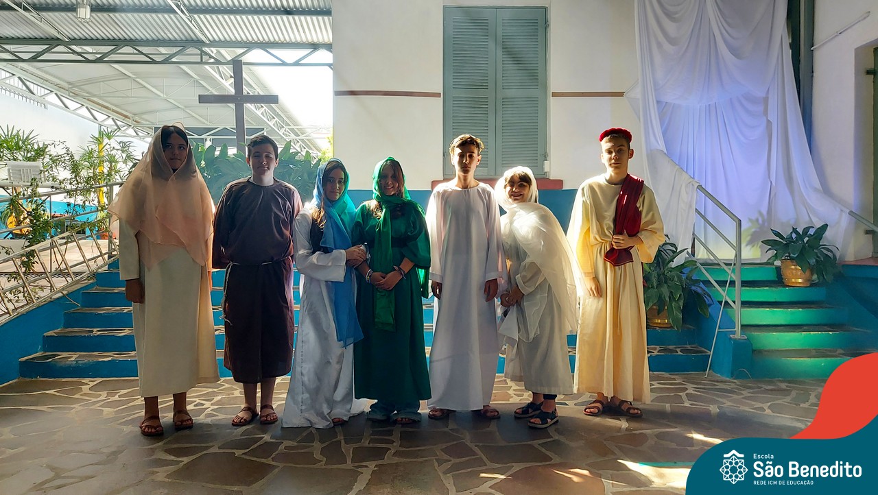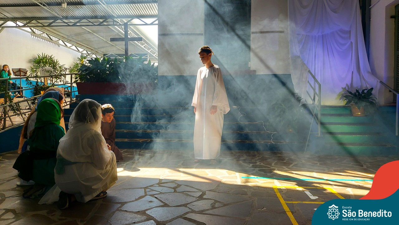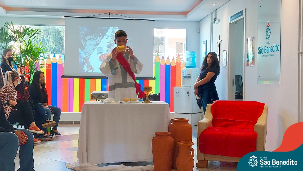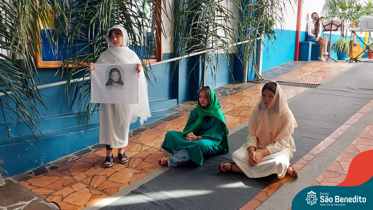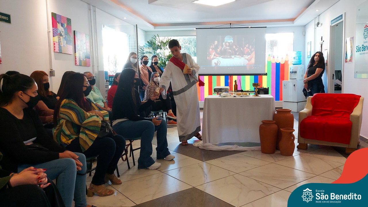 O momento de preparação para Páscoa, que contou com a participação dos estudantes do Ensino Fundamental II, Orlando, Naiuri, Arthur, Artur Silveira, Ingrid, Rafael, Sabrina, Ariadne, e Humberto, teve início com o jantar de Jesus em Betânia, quando uma mulher rompe as barreiras e derrama todo seu valioso perfume nos pés do Mestre, nos convidando a derramar sobre Ele, nosso passado e nossas mazelas, e transformar nossa vida para uma vida conforme a vontade de Deus.