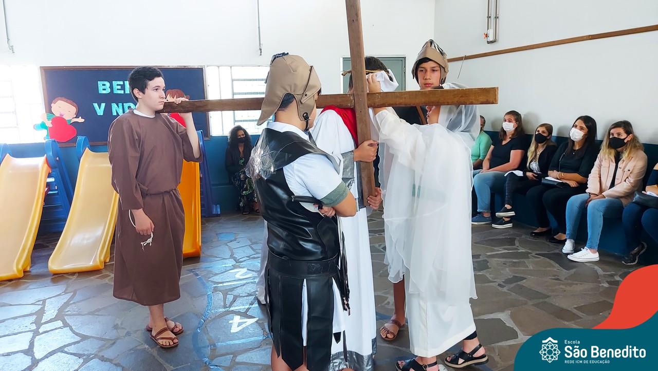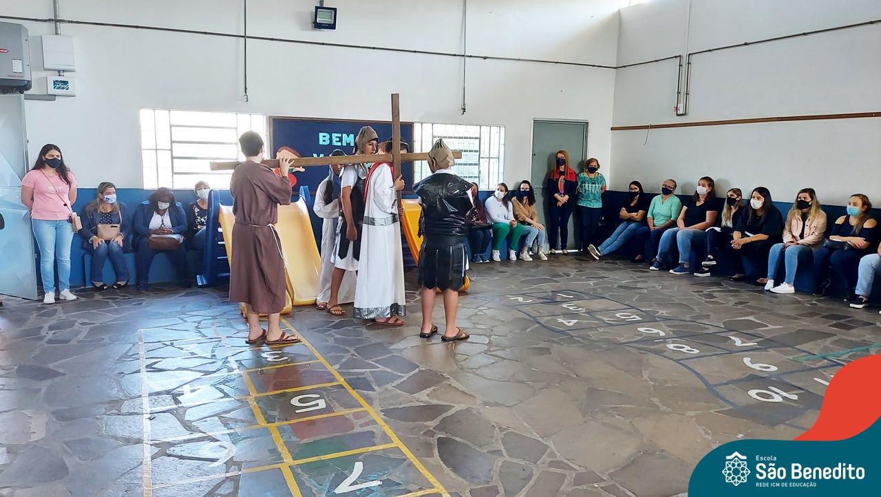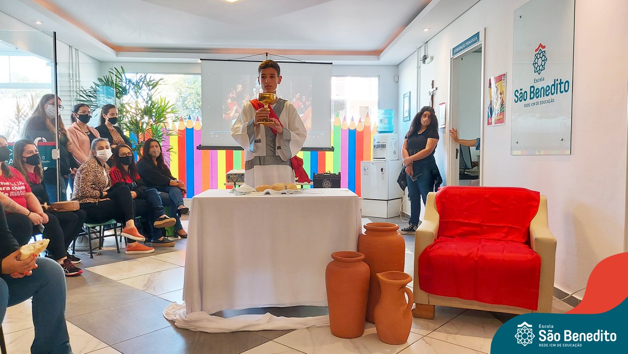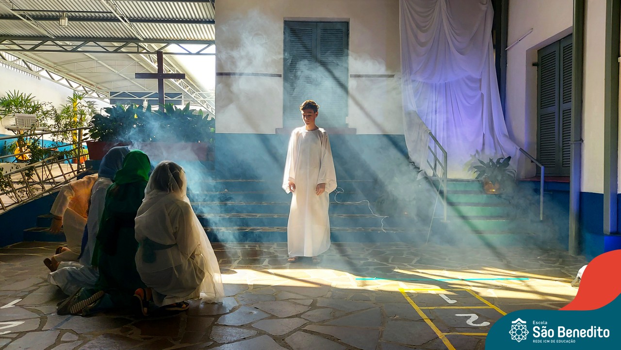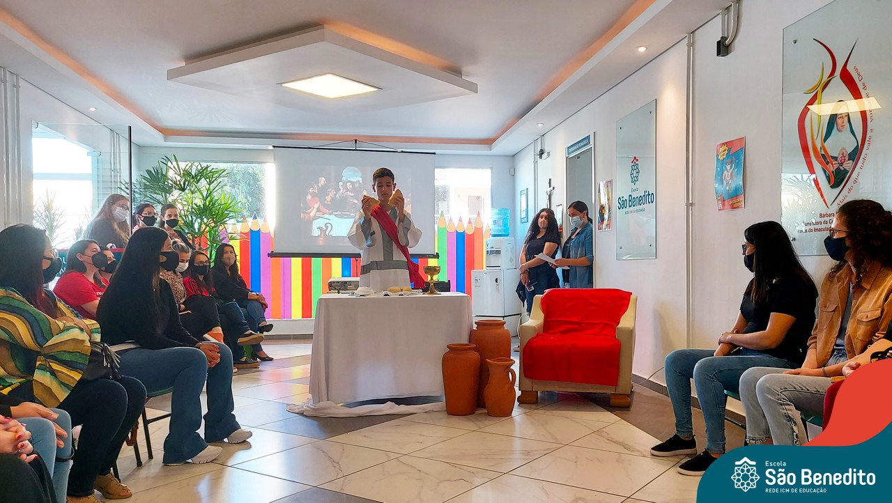 O momento de preparação para Páscoa, que contou com a participação dos estudantes do Ensino Fundamental II, Orlando, Naiuri, Arthur, Artur Silveira, Ingrid, Rafael, Sabrina, Ariadne, e Humberto, teve início com o jantar de Jesus em Betânia, quando uma mulher rompe as barreiras e derrama todo seu valioso perfume nos pés do Mestre, nos convidando a derramar sobre Ele, nosso passado e nossas mazelas, e transformar nossa vida para uma vida conforme a vontade de Deus.