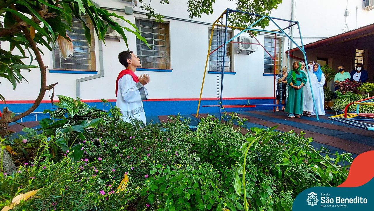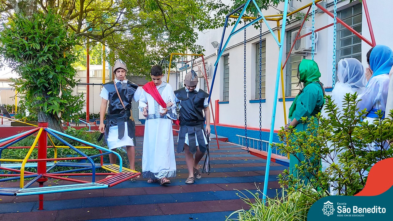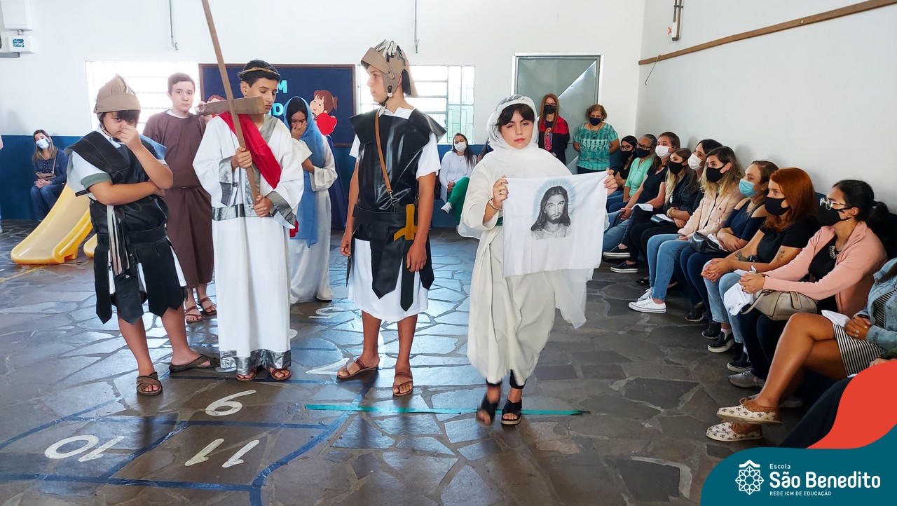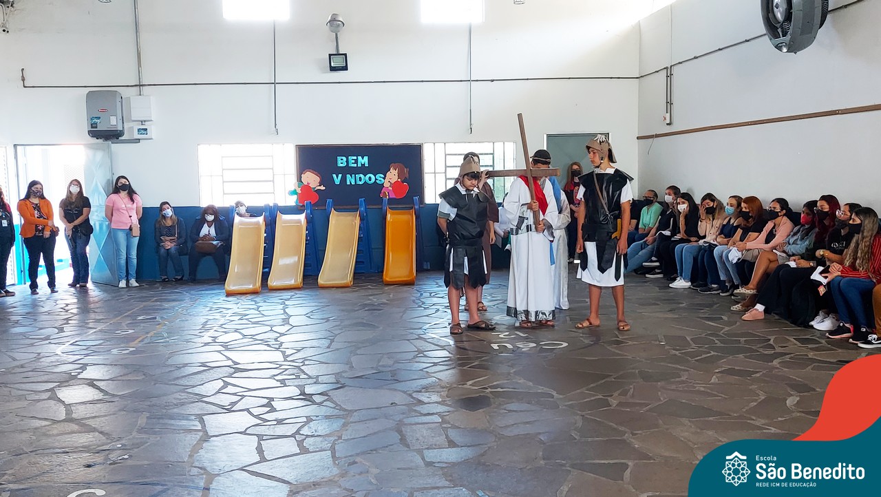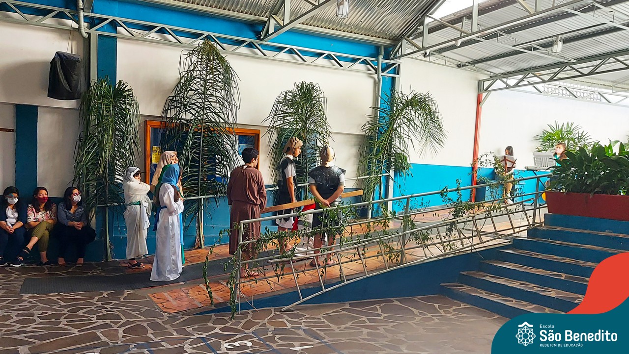 O momento de preparação para Páscoa, que contou com a participação dos estudantes do Ensino Fundamental II, Orlando, Naiuri, Arthur, Artur Silveira, Ingrid, Rafael, Sabrina, Ariadne, e Humberto, teve início com o jantar de Jesus em Betânia, quando uma mulher rompe as barreiras e derrama todo seu valioso perfume nos pés do Mestre, nos convidando a derramar sobre Ele, nosso passado e nossas mazelas, e transformar nossa vida para uma vida conforme a vontade de Deus.