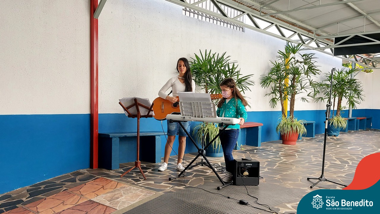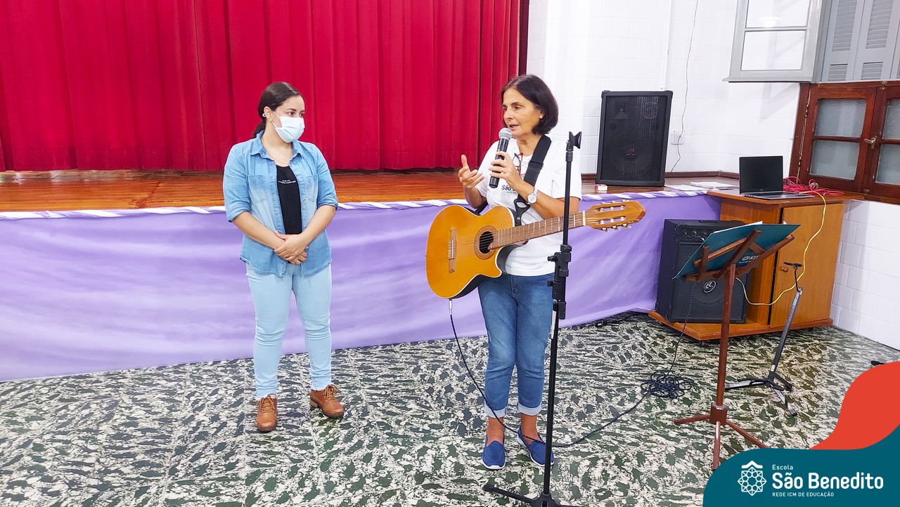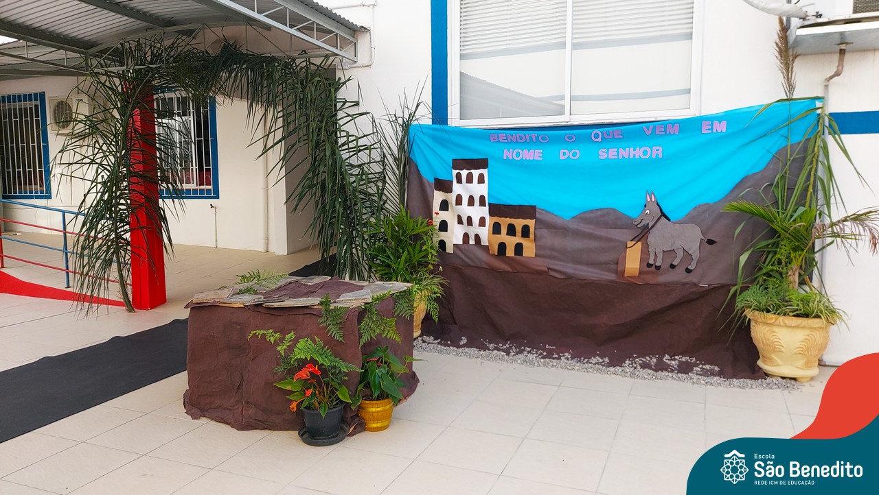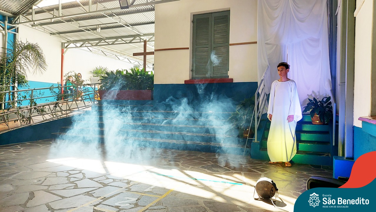 Para enriquecer ainda mais este momento tão especial, contamos com o auxílio da professora Ane Ferraz, que preparou os cenários, os efeitos especiais e deu suporte técnico de luz, som e imagem; da professora Mariana Moraes, que confeccionou um lindo painel retratando a chegada de Jesus em Jerusalém; da professora Lidiane, que fez os cantos; da estudante Giovanna, que tocou teclado; e dos ex alunos, Marlon Porschi e Mariana Resende, que atuaram como diretores da peça.