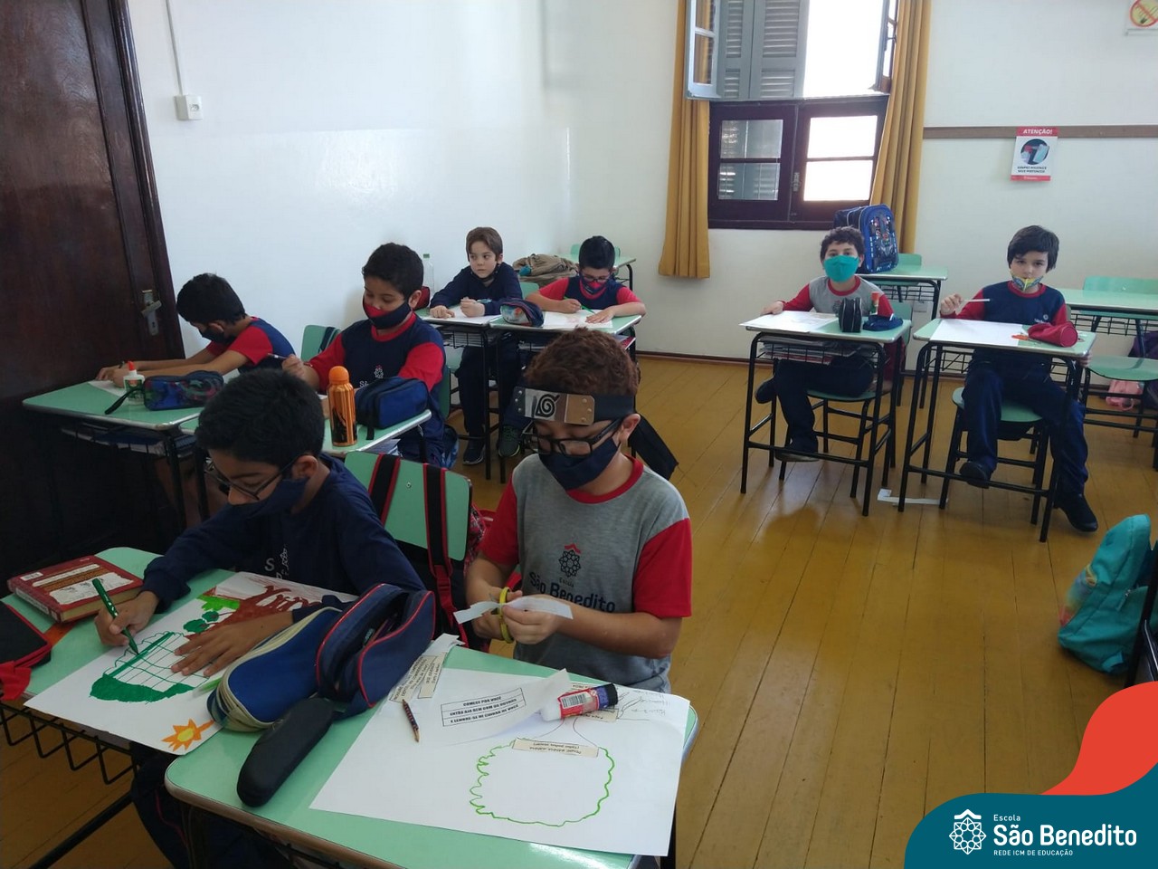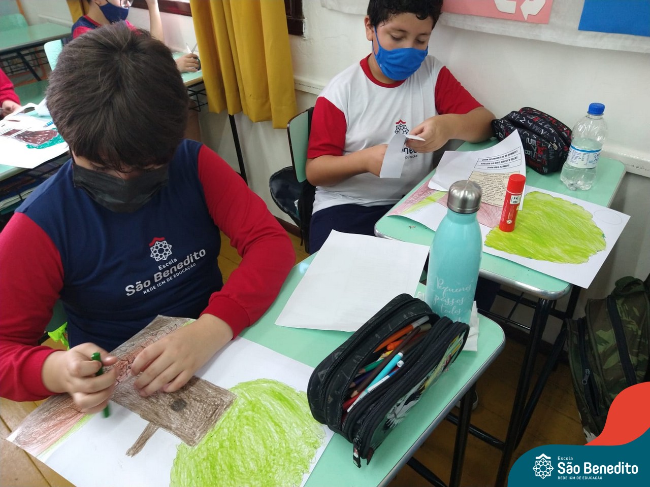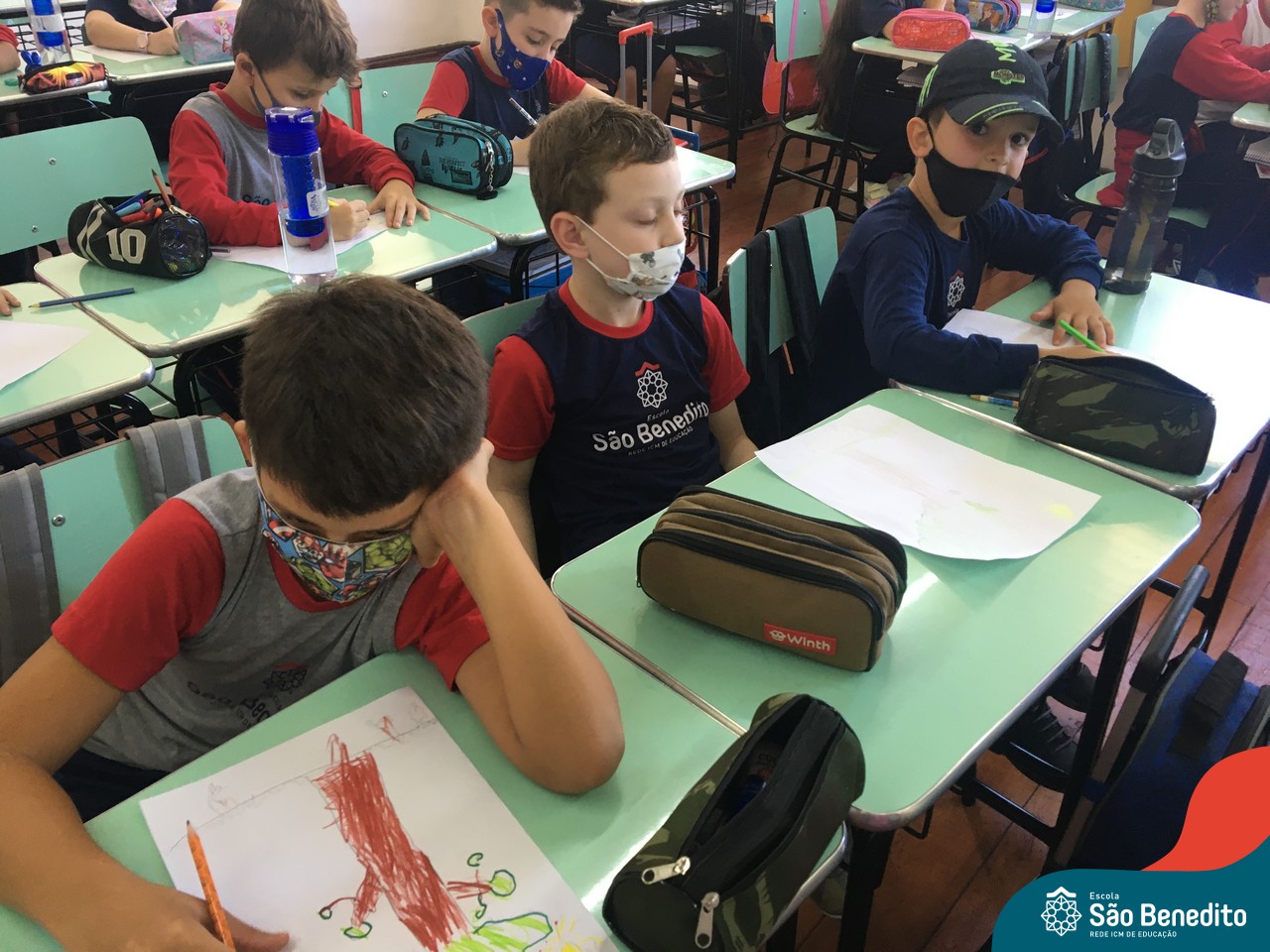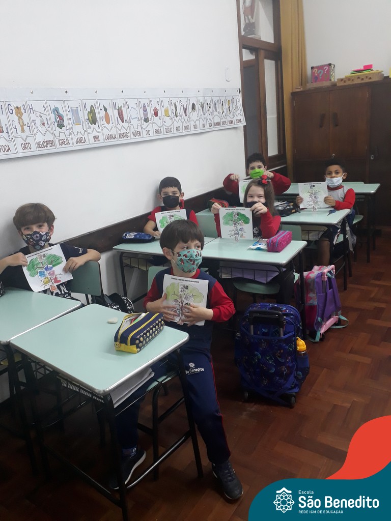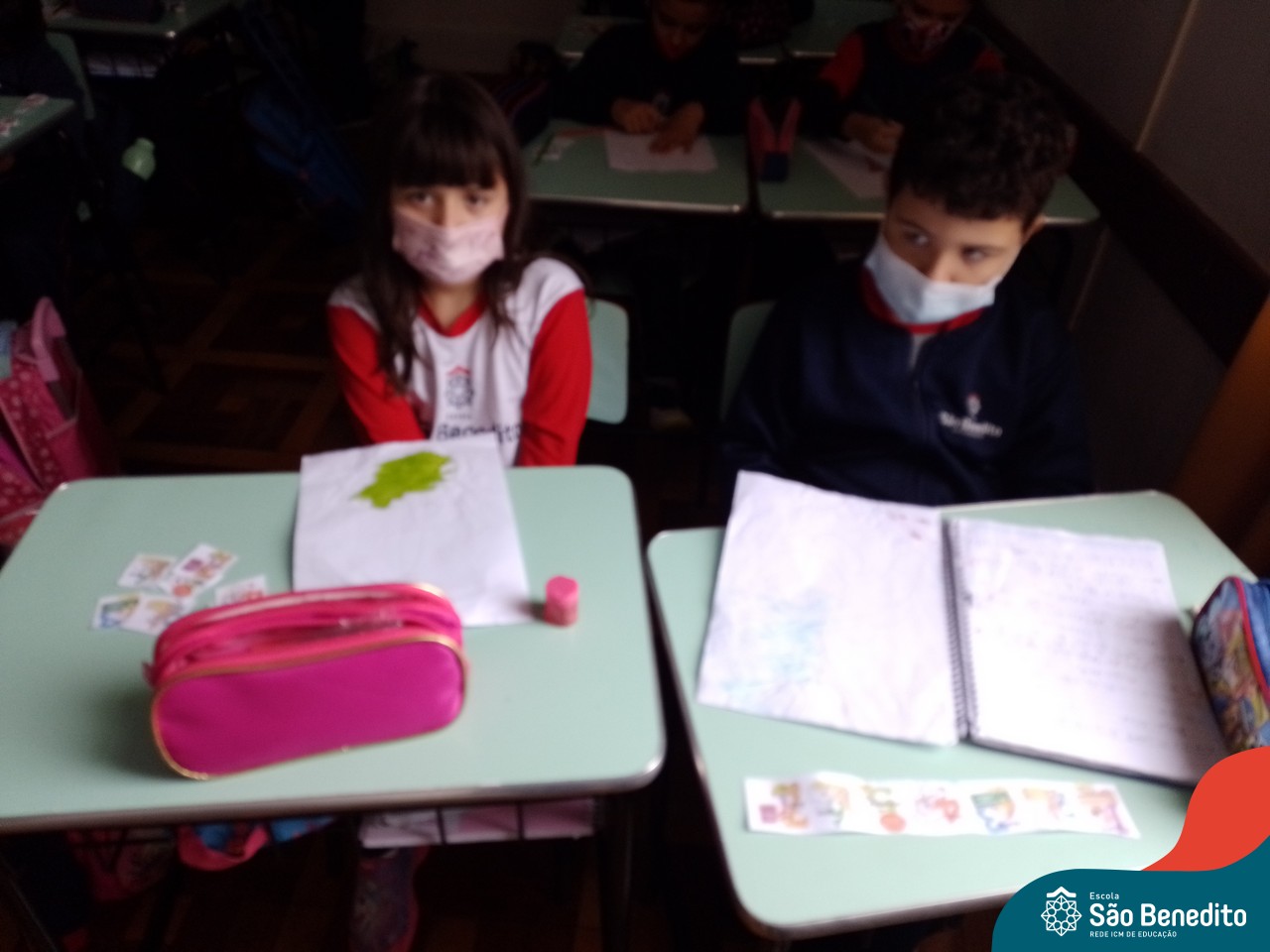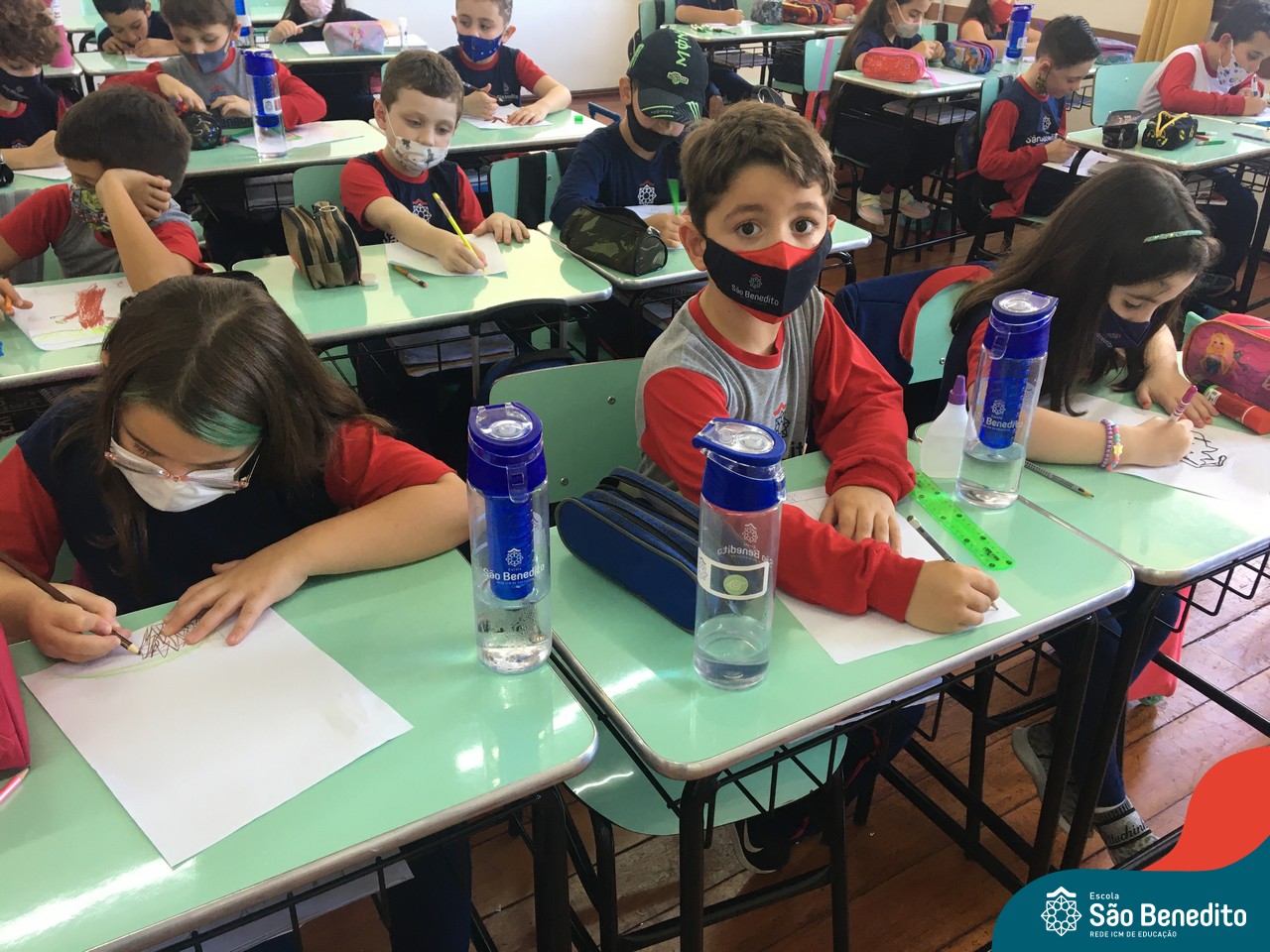 Os estudantes do 1º ao 5º Ano construíram a Árvore dos 7 hábitos da criança feliz, que oportuniza a construção de uma boa comunicação, criando uma linguagem comum e envolvendo os colegas, professores e família.