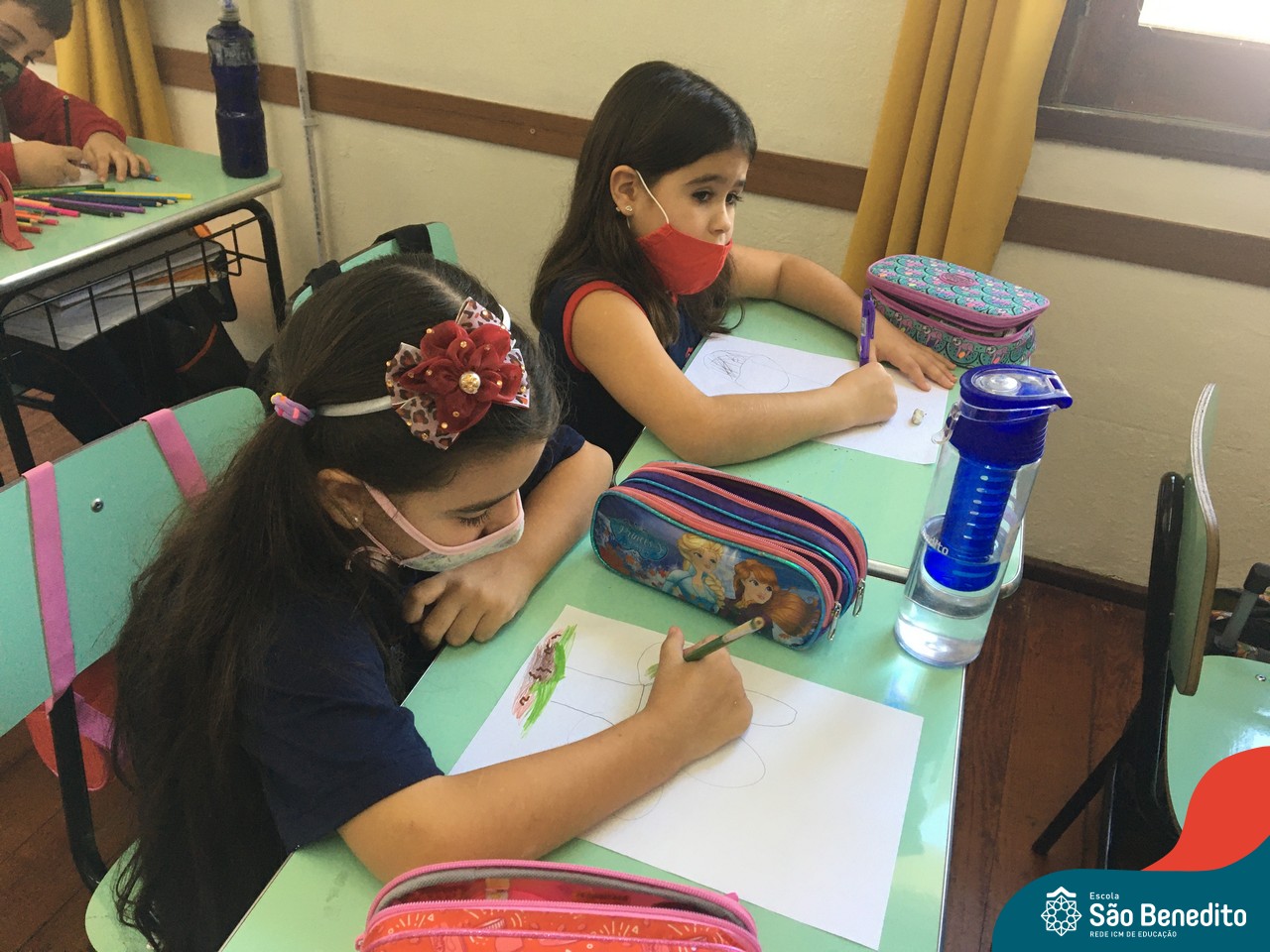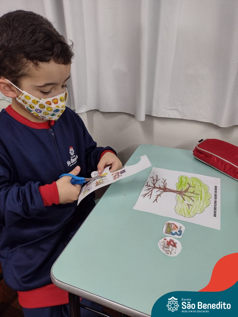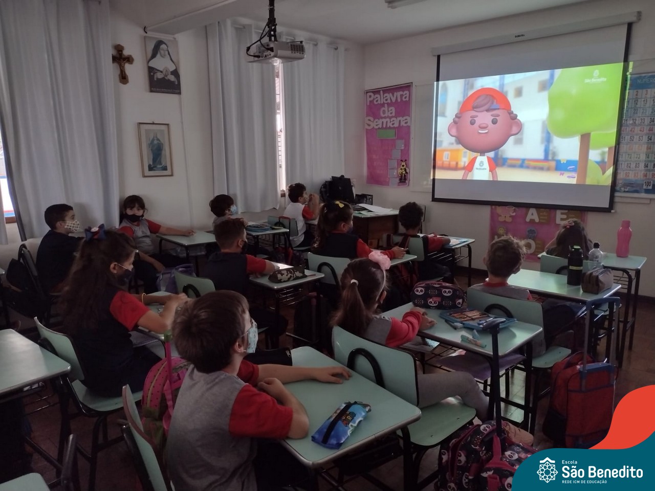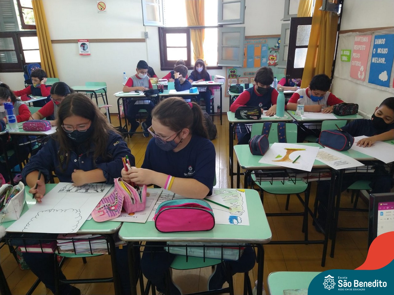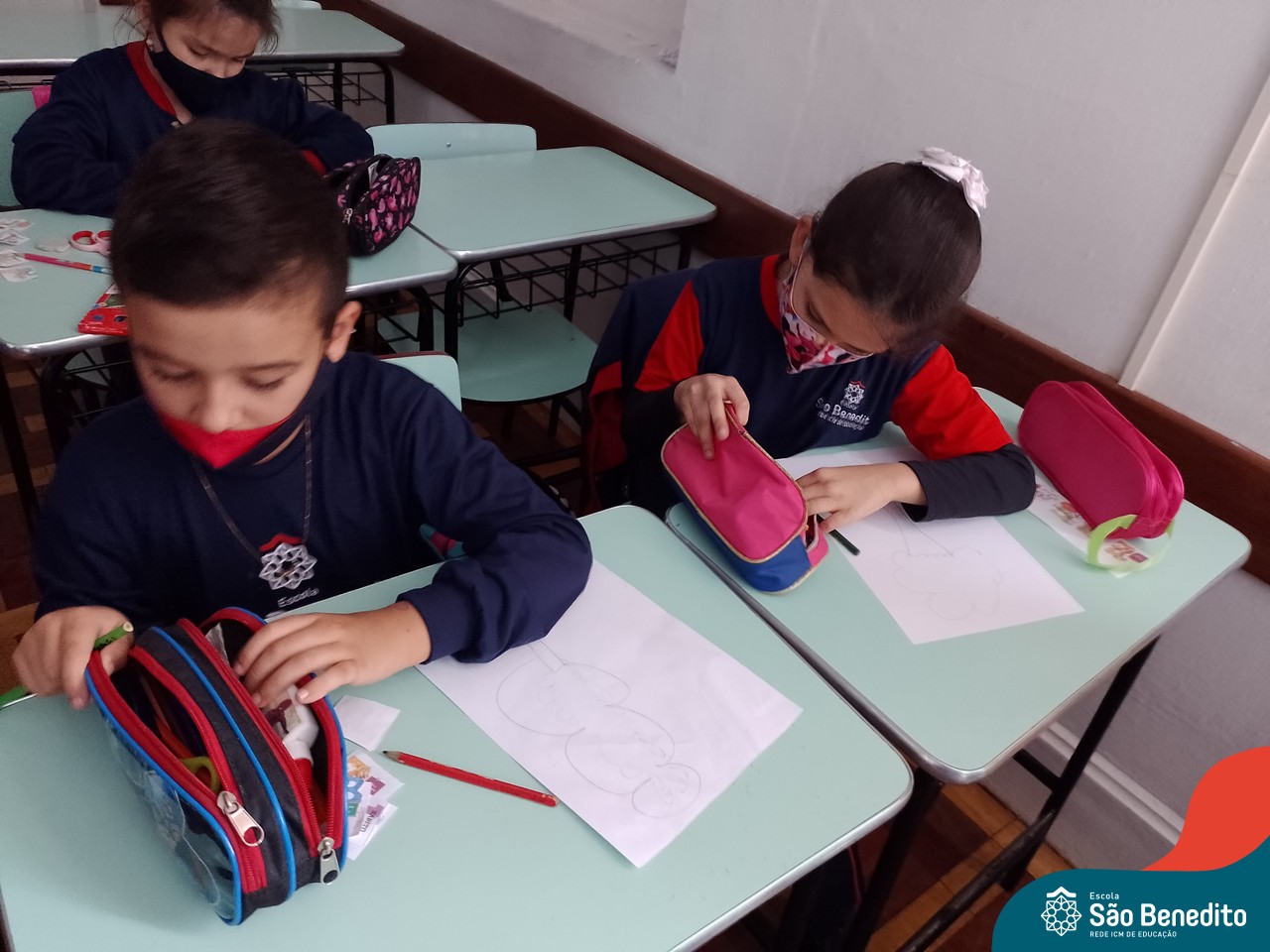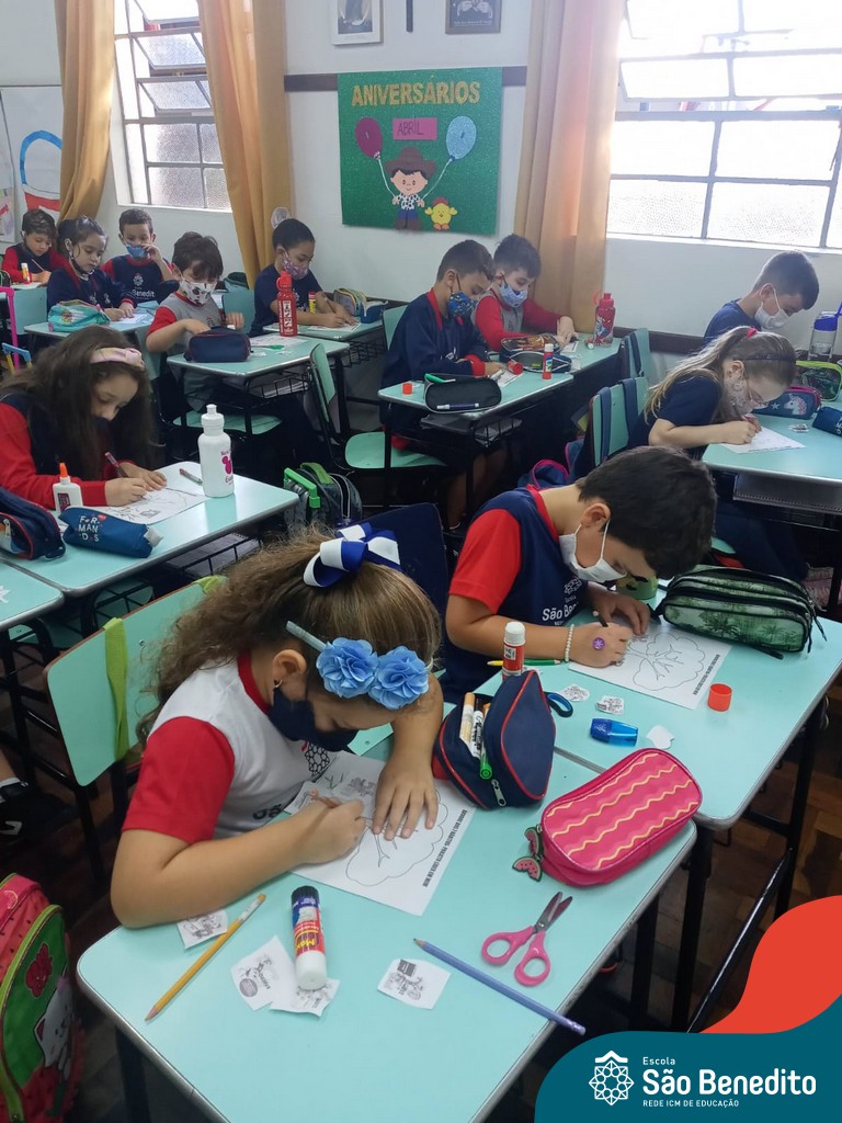 Os estudantes do 1º ao 5º Ano construíram a Árvore dos 7 hábitos da criança feliz, que oportuniza a construção de uma boa comunicação, criando uma linguagem comum e envolvendo os colegas, professores e família.