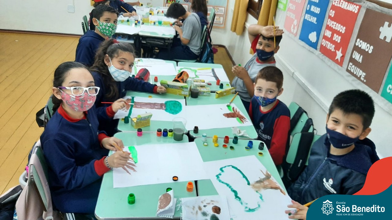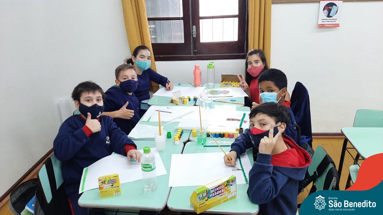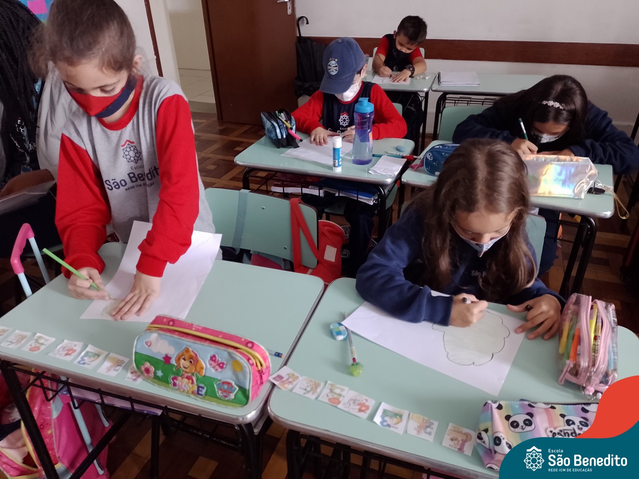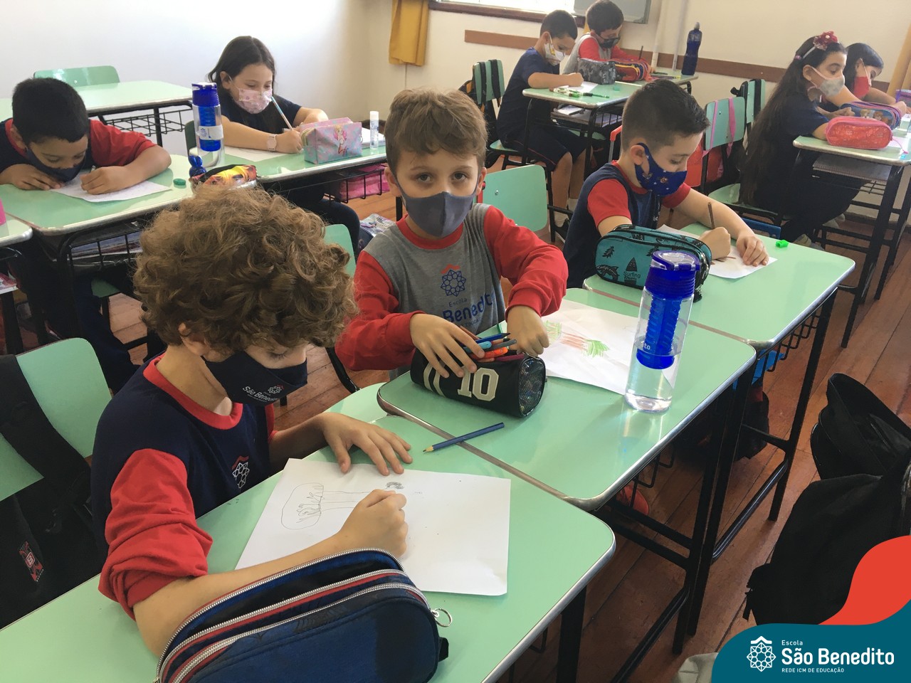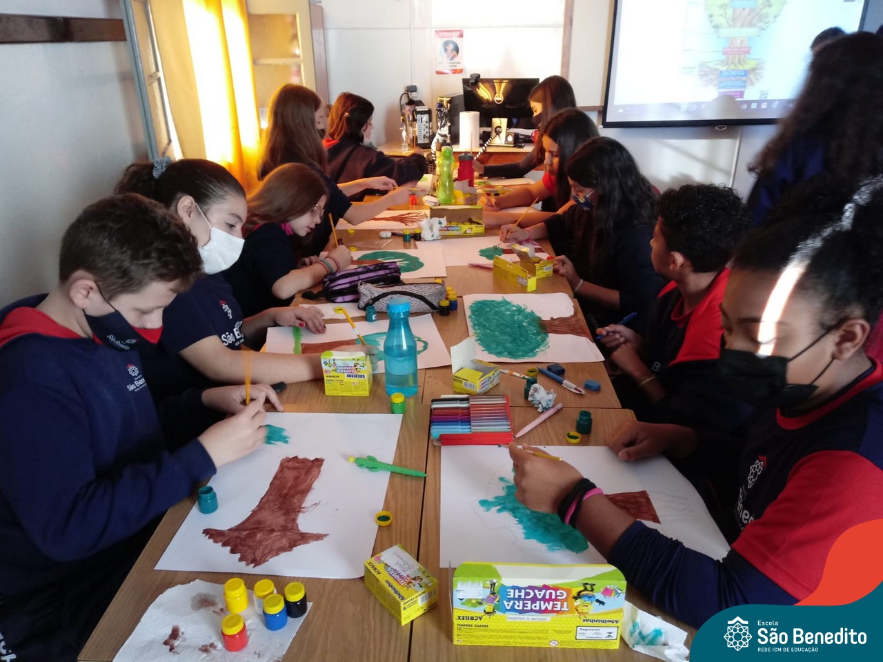 Os estudantes do 1º ao 5º Ano construíram a Árvore dos 7 hábitos da criança feliz, que oportuniza a construção de uma boa comunicação, criando uma linguagem comum e envolvendo os colegas, professores e família.