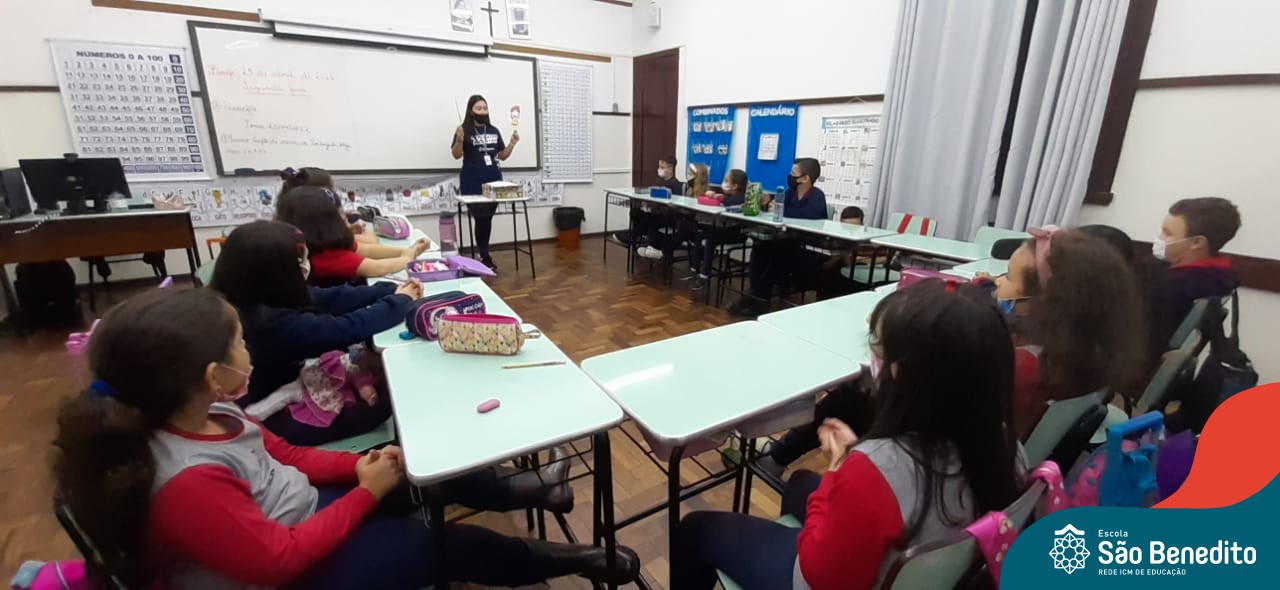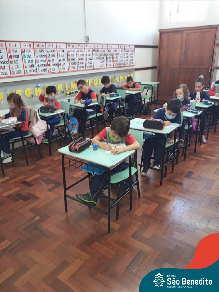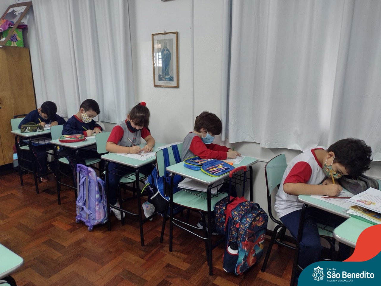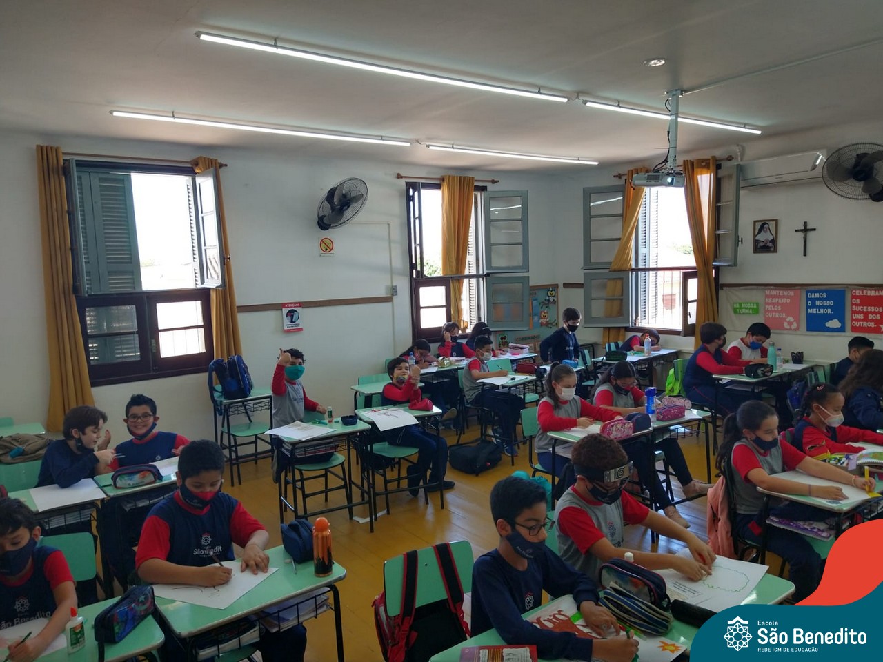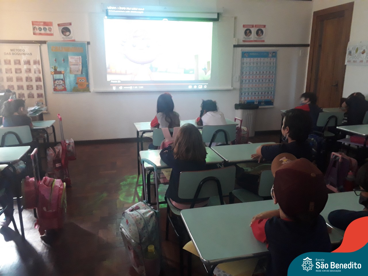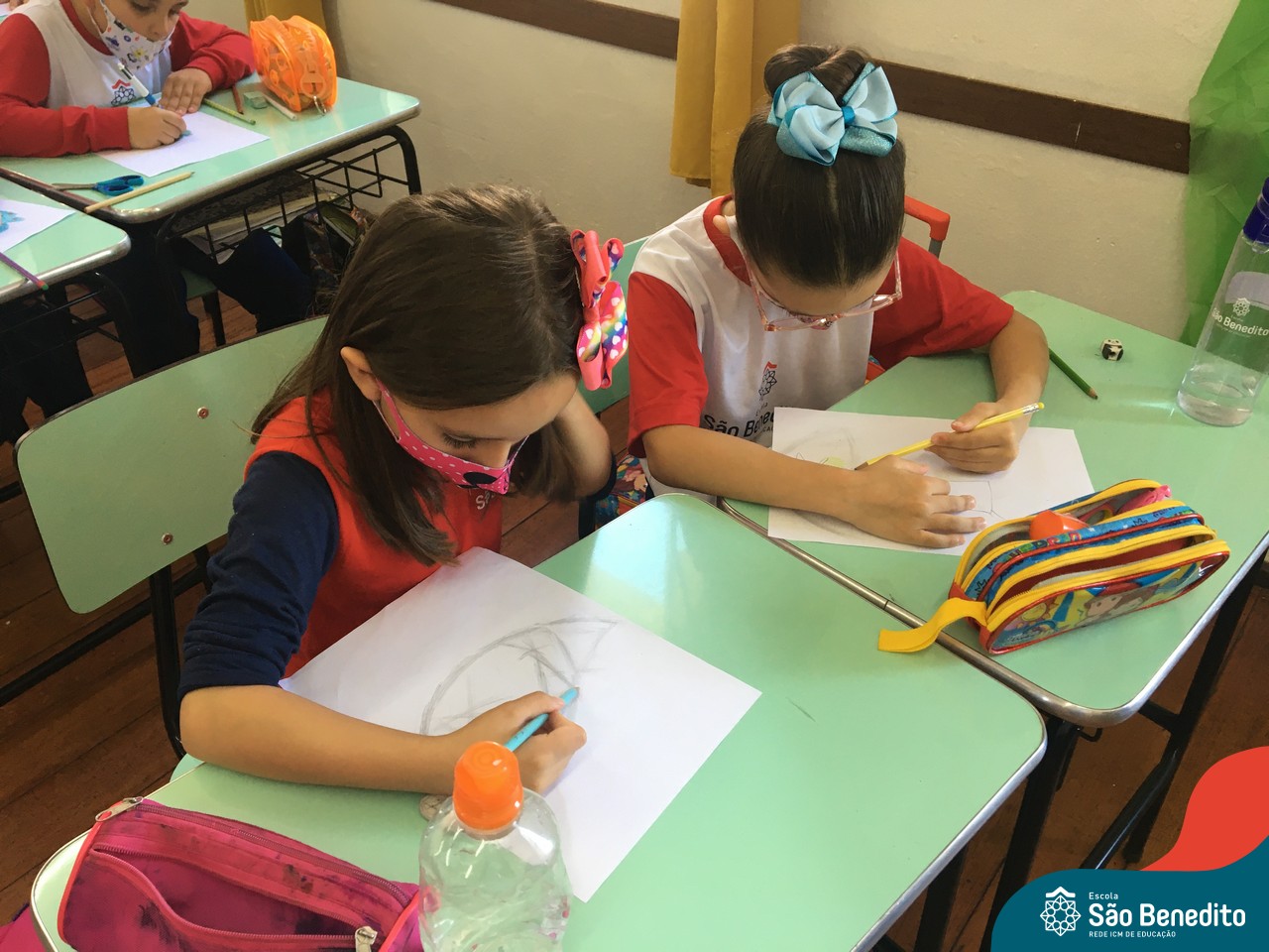 Os estudantes do 1º ao 5º Ano construíram a Árvore dos 7 hábitos da criança feliz, que oportuniza a construção de uma boa comunicação, criando uma linguagem comum e envolvendo os colegas, professores e família.