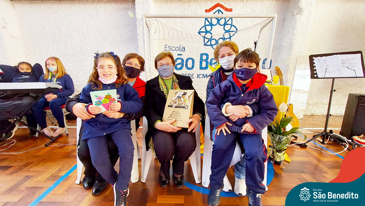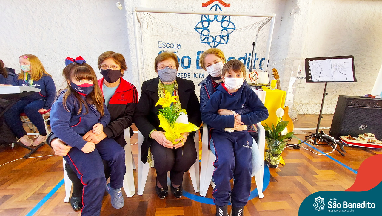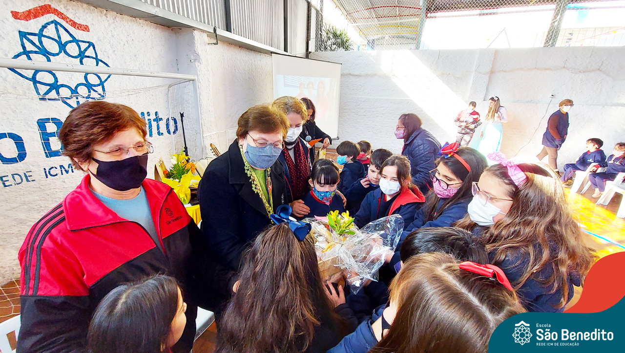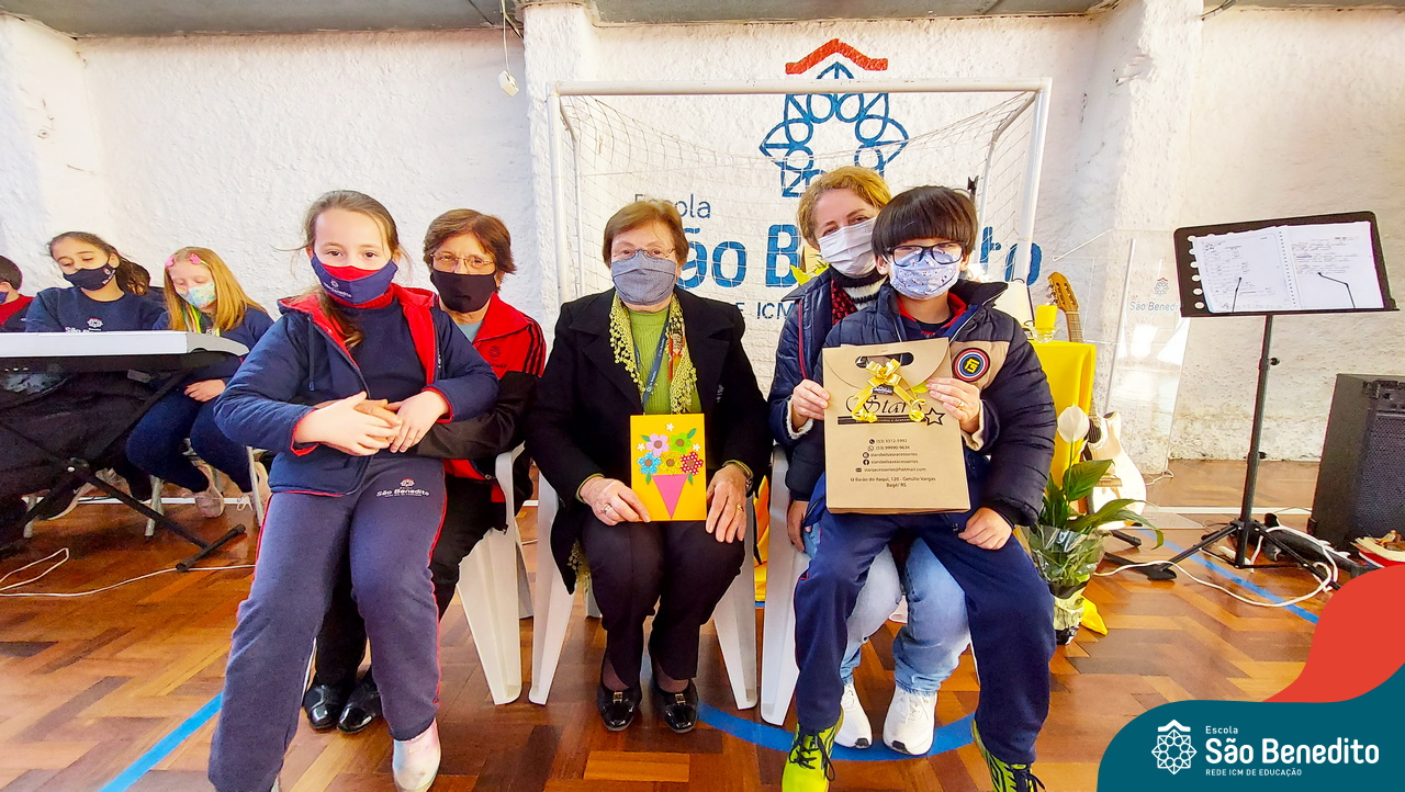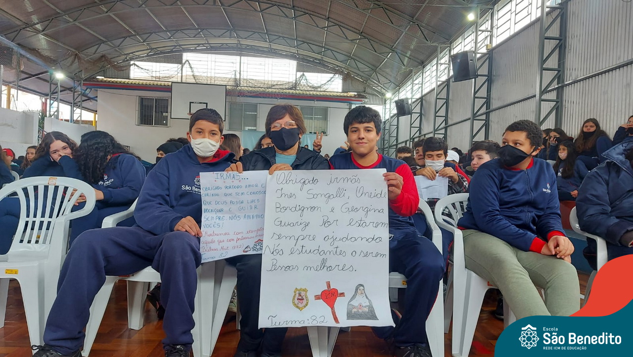 Na sexta-feira, 19/08 e segunda-feira (22/08), a Escola São Benedito celebrou a vida e vocação das irmãs Ines Sangalli, Oneide Bordignon, Georgina Guarize, e das coordenadoras pedagógicas, Lúcia Alves e Patrícia Barreto. As comemorações contaram com homenagens das turmas, que cantaram, tocaram e dançaram. Além disso, os educadores da Educação Infantil e Ensino Fundamental prepararam um vídeo especial, demonstrando todo afeto e respeito que guardam no peito.