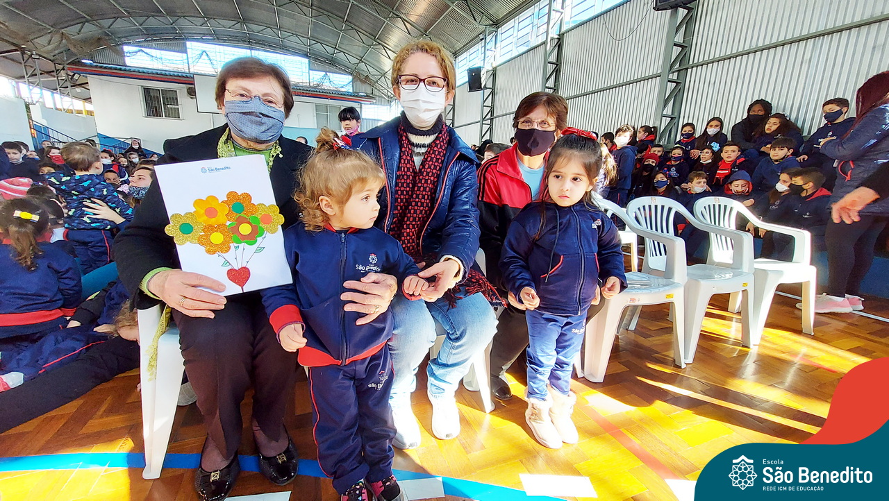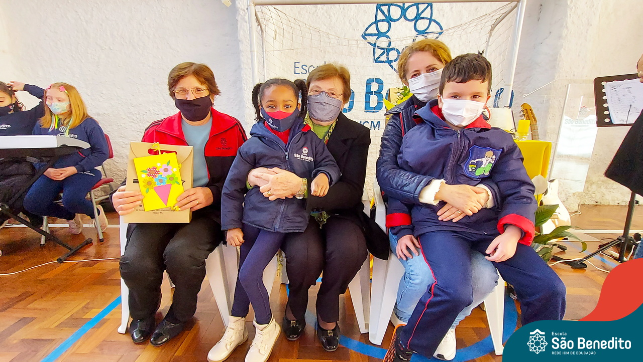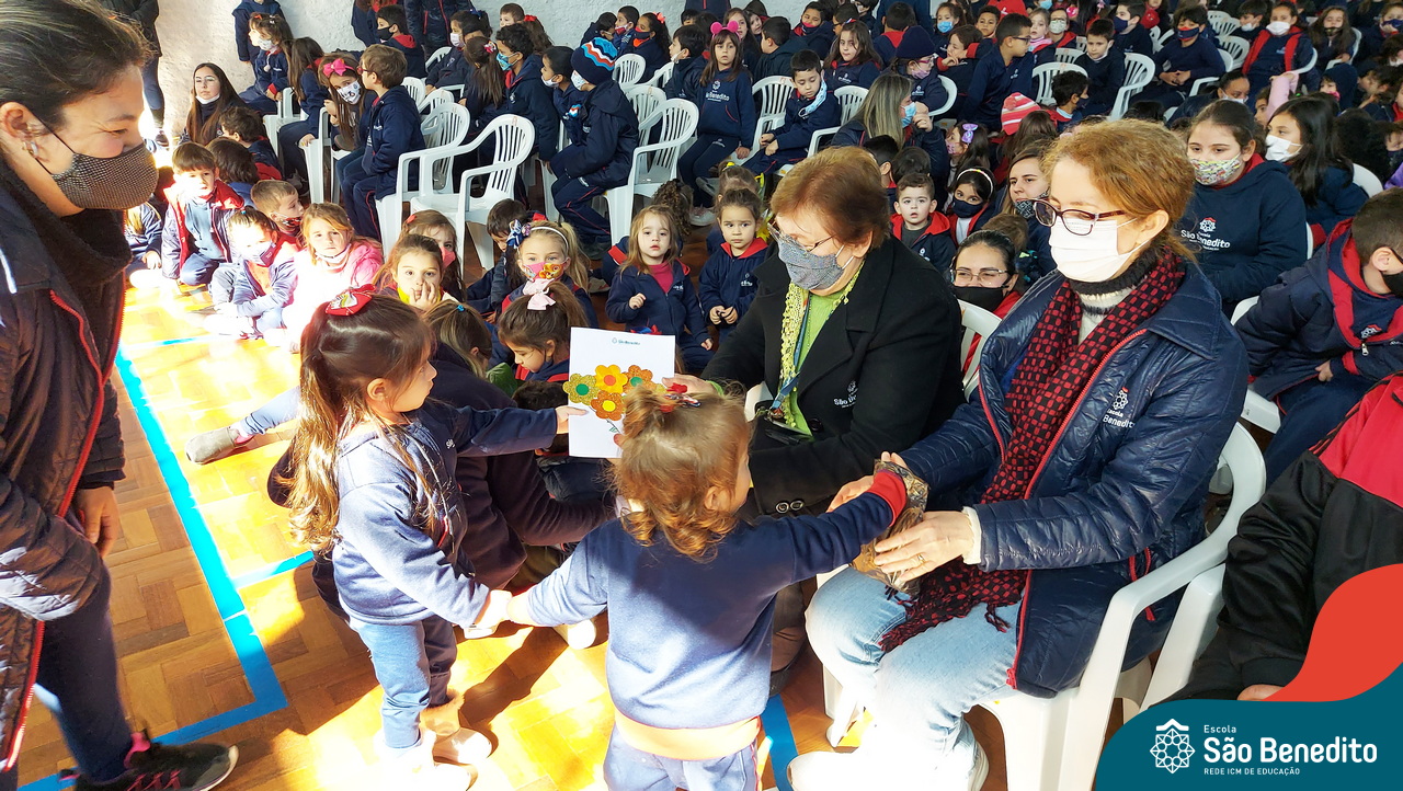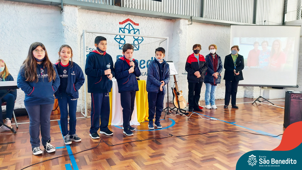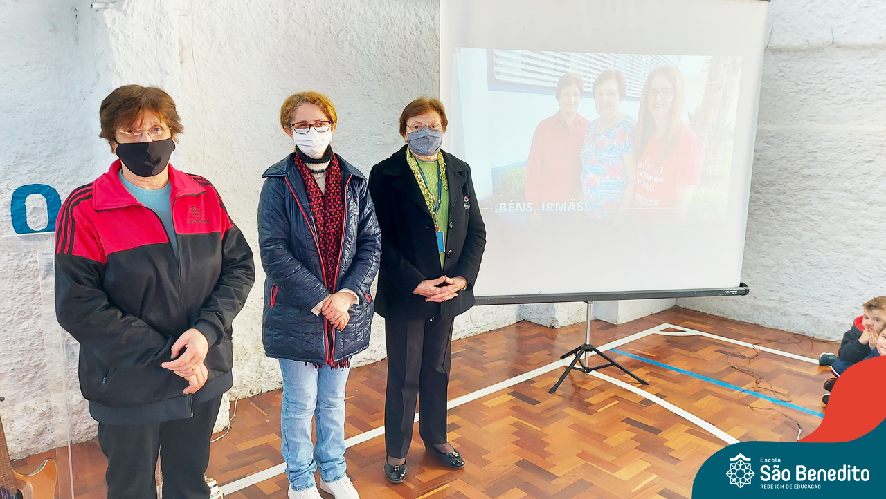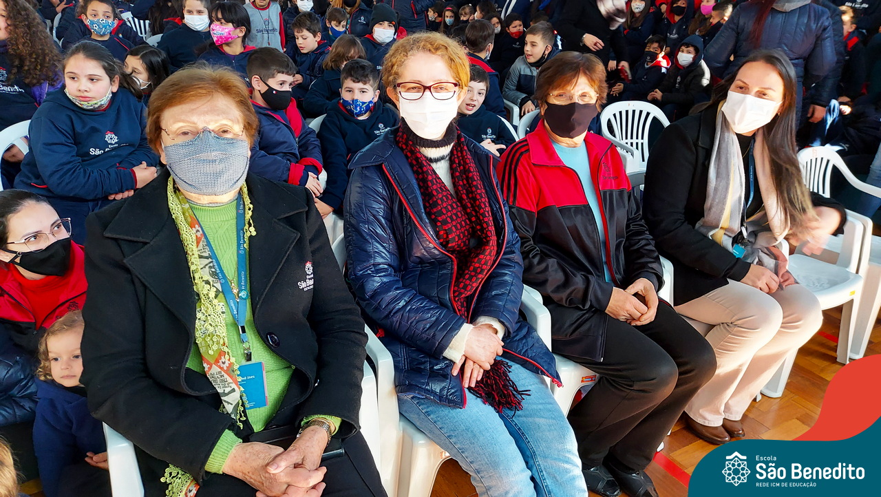 Na sexta-feira, 19/08 e segunda-feira (22/08), a Escola São Benedito celebrou a vida e vocação das irmãs Ines Sangalli, Oneide Bordignon, Georgina Guarize, e das coordenadoras pedagógicas, Lúcia Alves e Patrícia Barreto. As comemorações contaram com homenagens das turmas, que cantaram, tocaram e dançaram. Além disso, os educadores da Educação Infantil e Ensino Fundamental prepararam um vídeo especial, demonstrando todo afeto e respeito que guardam no peito.