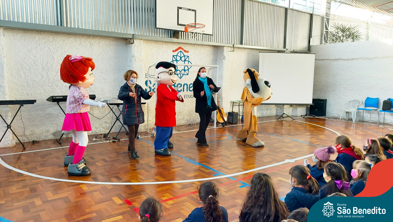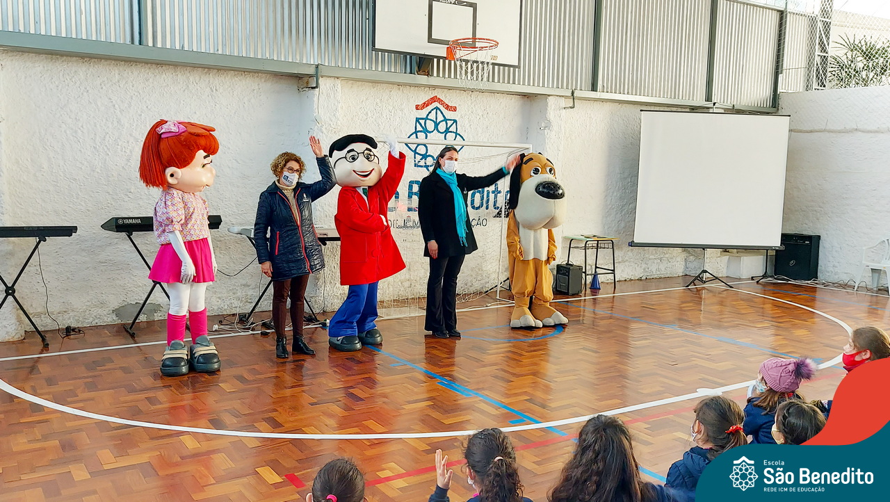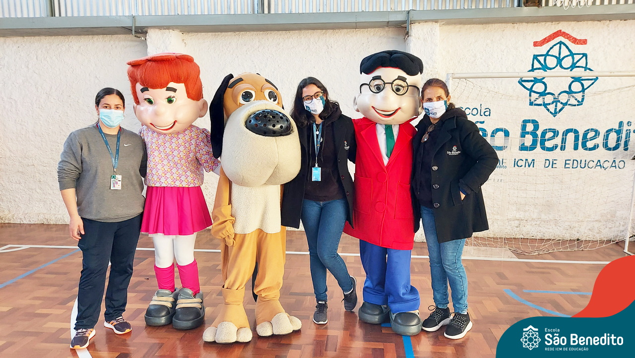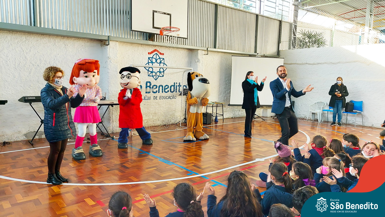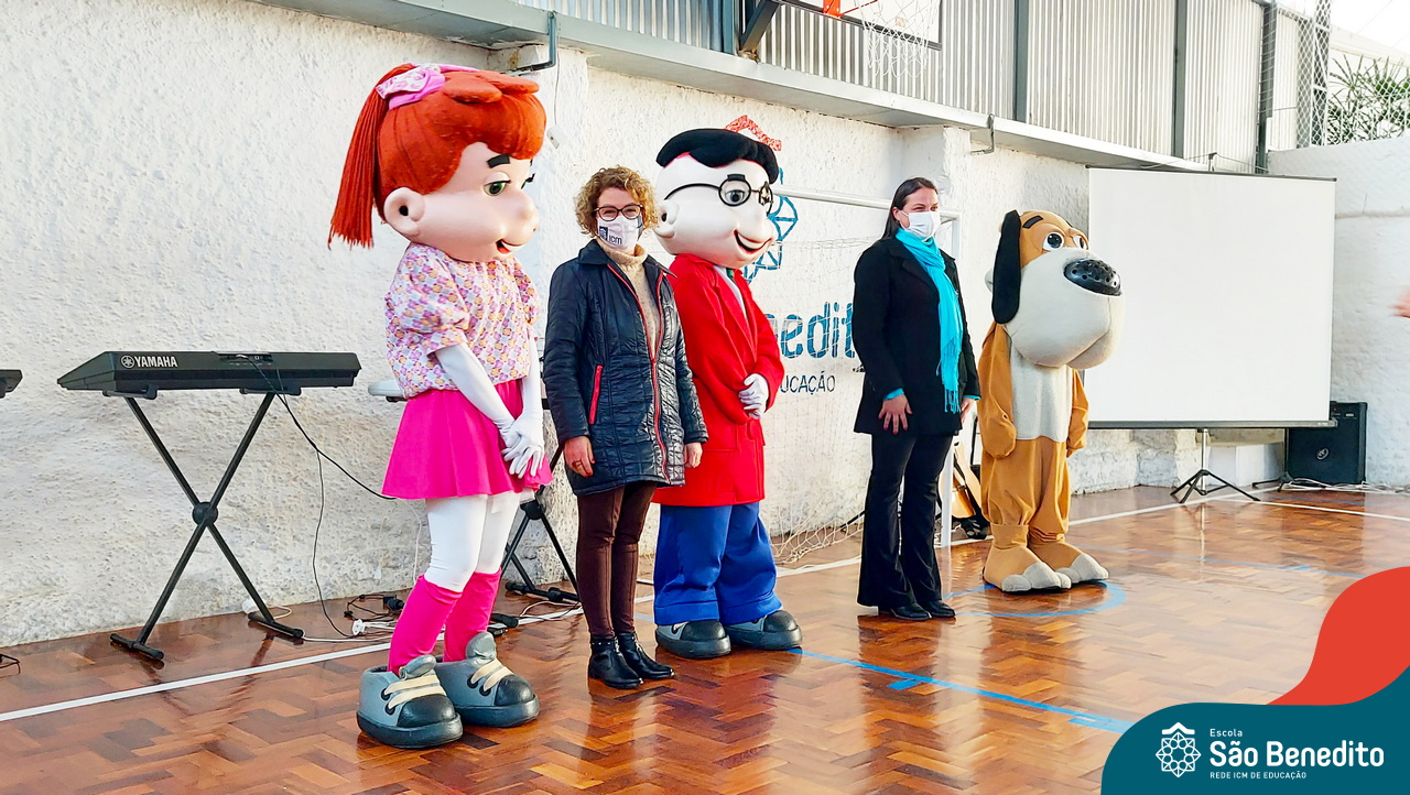 Não bastasse toda a alegria que o momento proporcionou, os estudantes da Educação Infantil e Ensino Fundamental I receberam a visita do Turma do Nosso Amiguinho, que comemorou o Dia do Coordenador pedagógico com uma dança com as coordenadoras Lúcia e Patrícia, junto dos mascotinhos Luísa, Sabino e Azeitona. Confira: