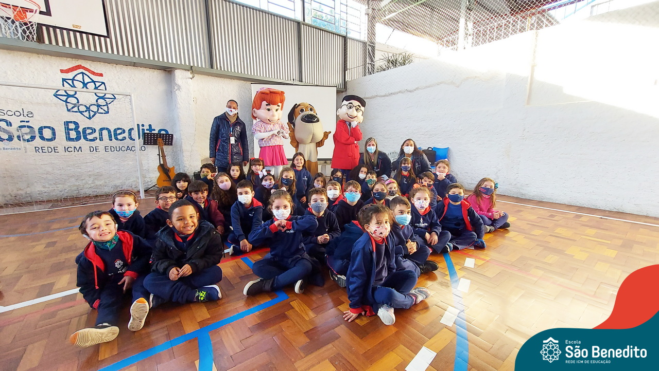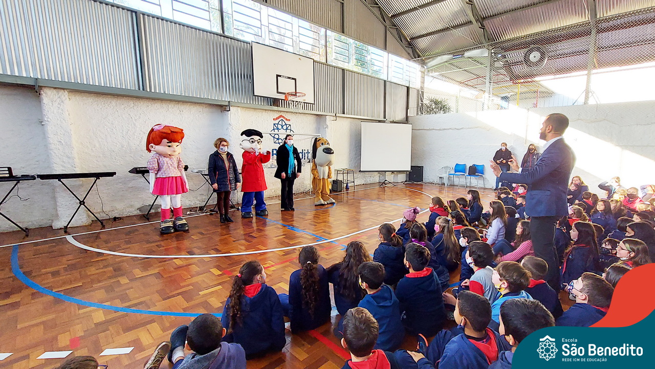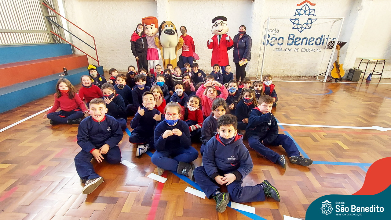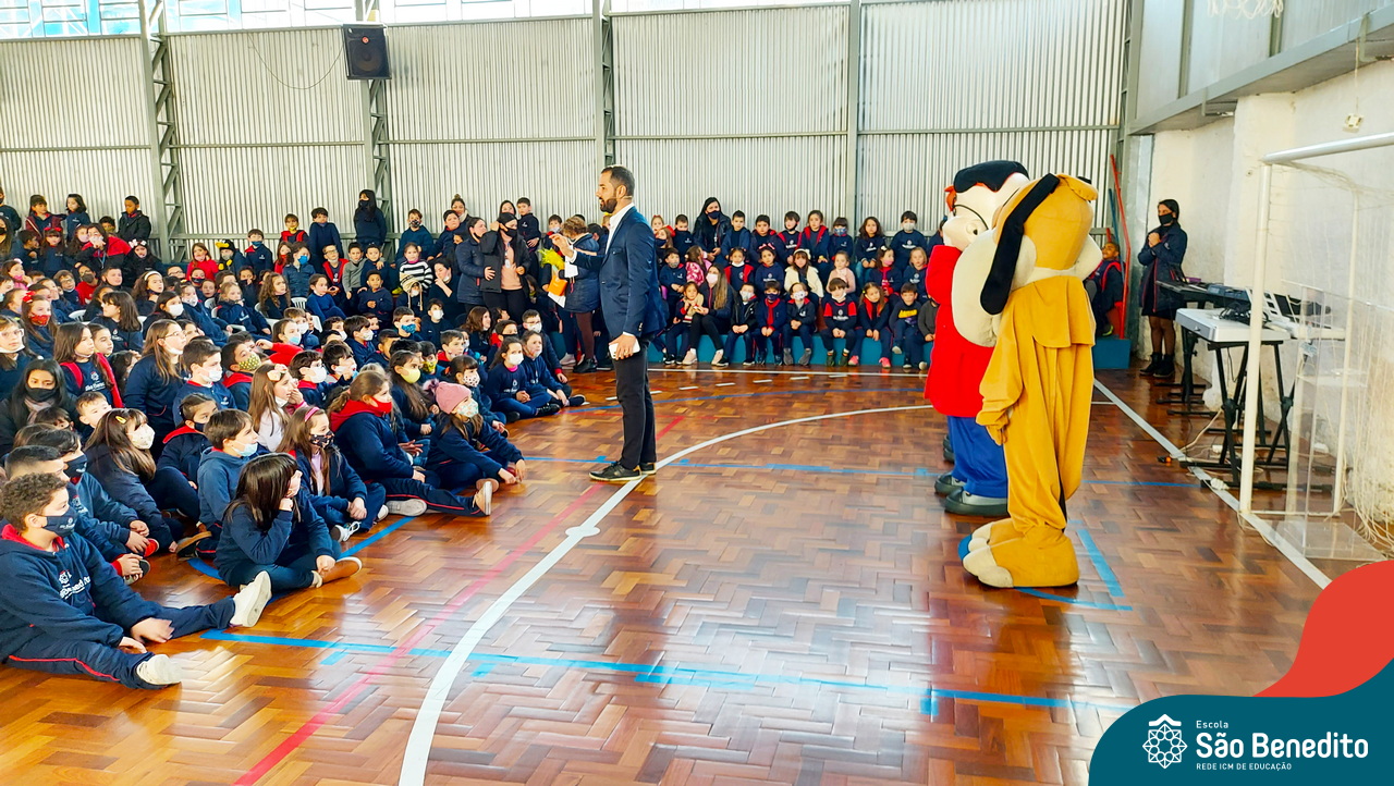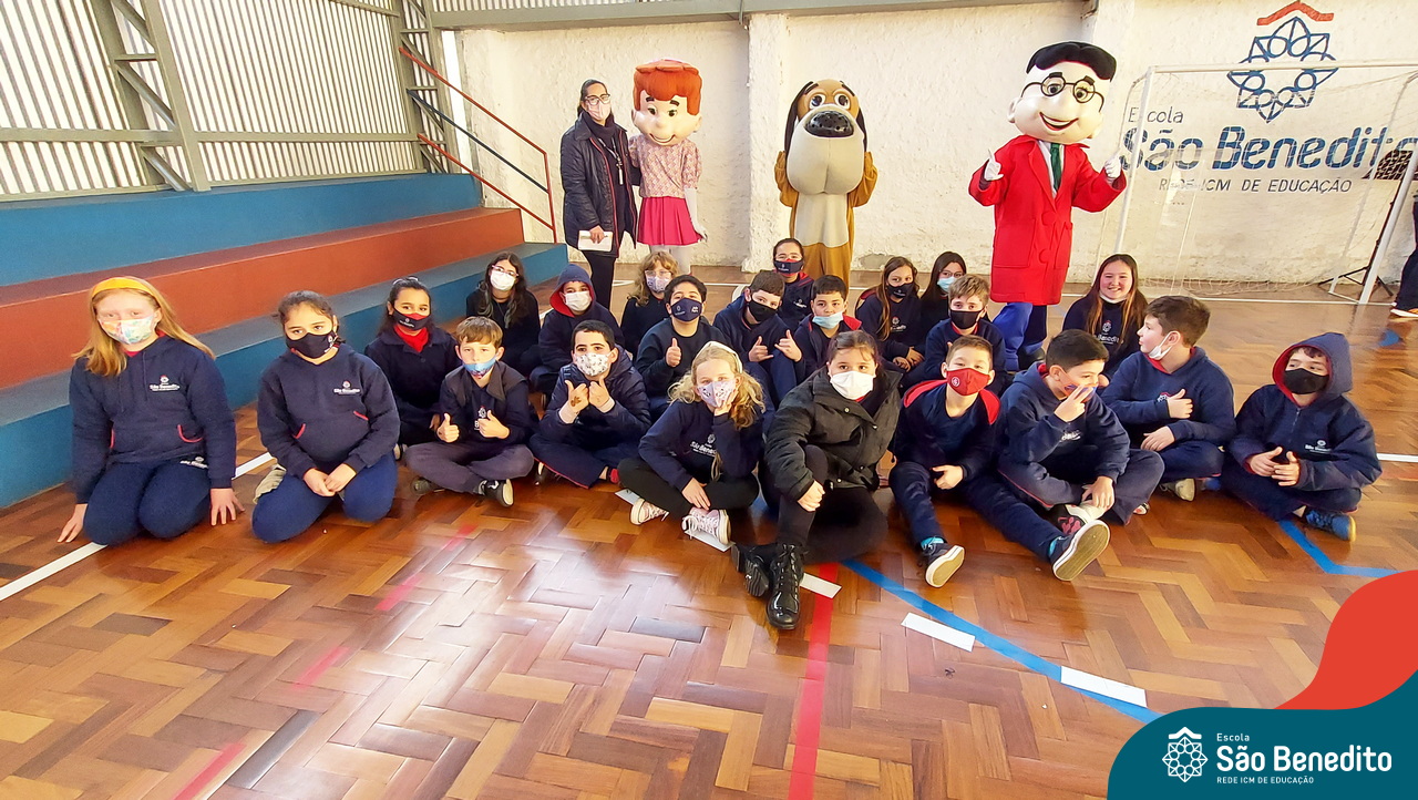 Não bastasse toda a alegria que o momento proporcionou, os estudantes da Educação Infantil e Ensino Fundamental I receberam a visita do Turma do Nosso Amiguinho, que comemorou o Dia do Coordenador pedagógico com uma dança com as coordenadoras Lúcia e Patrícia, junto dos mascotinhos Luísa, Sabino e Azeitona. Confira: