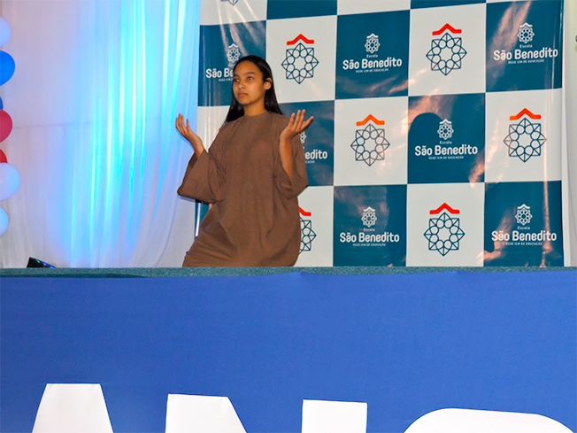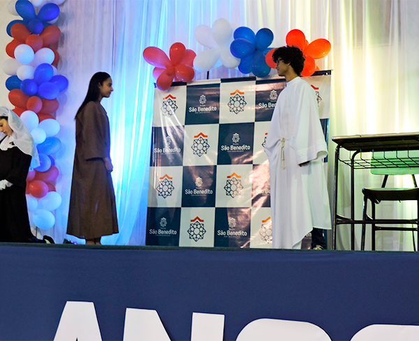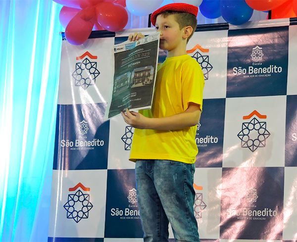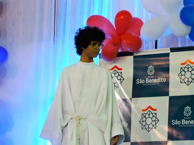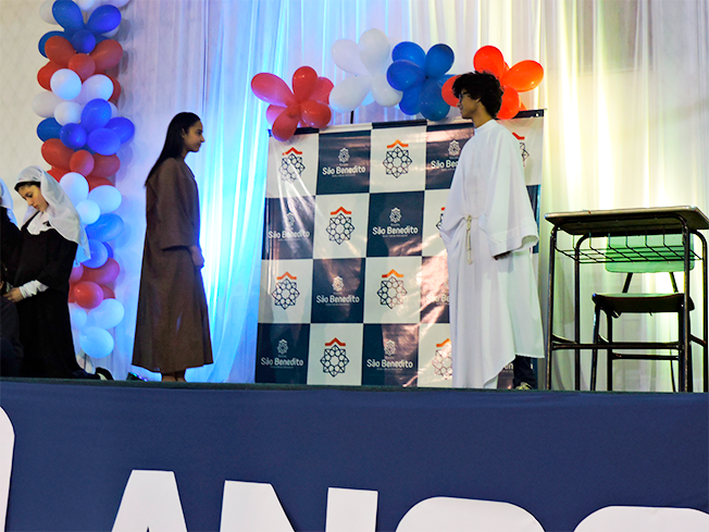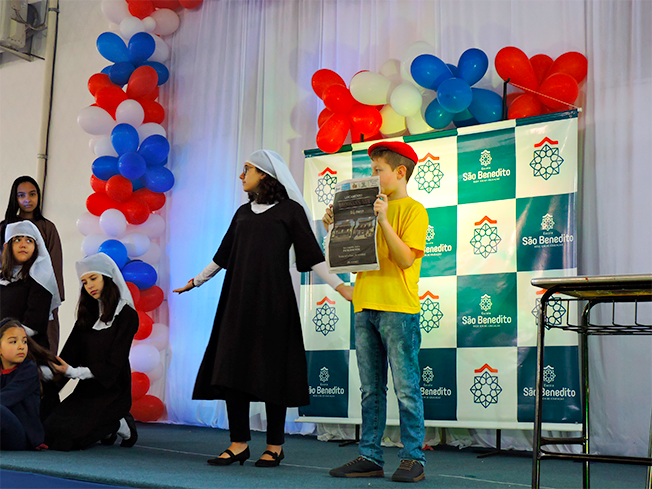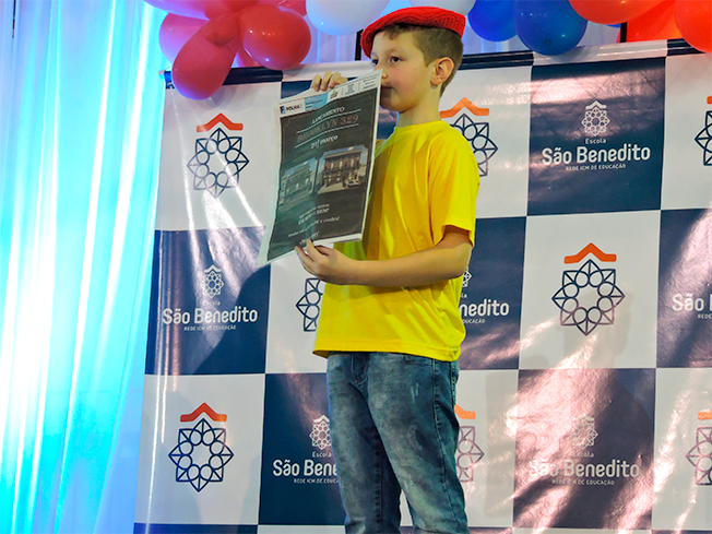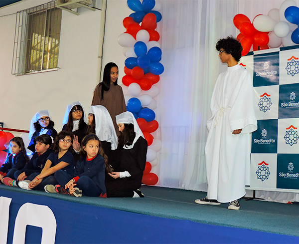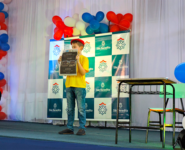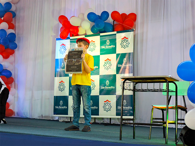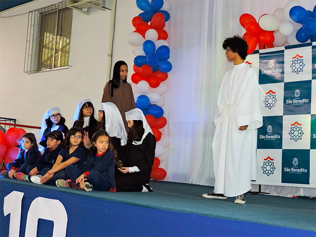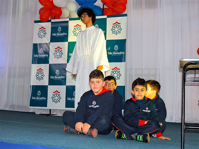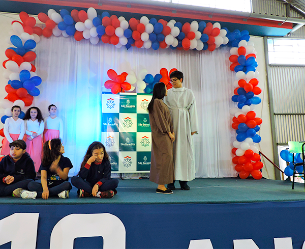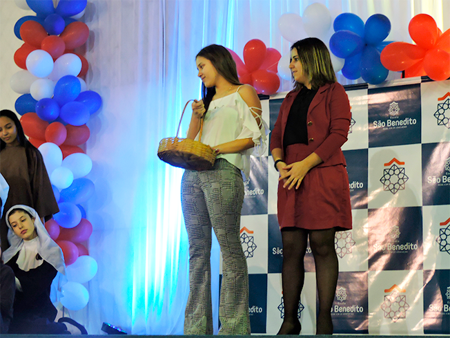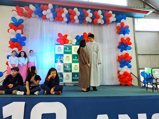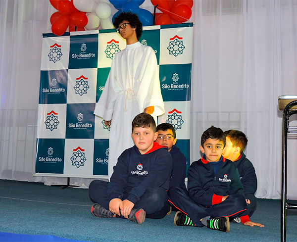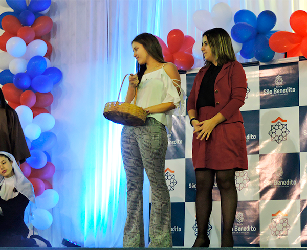 Depois dos parabéns, os alunos recebram um presente personalizado, para que pudessem lembrar da importância que cada um tem na existência da Escola, e do quão especiais são para o São Benedito.