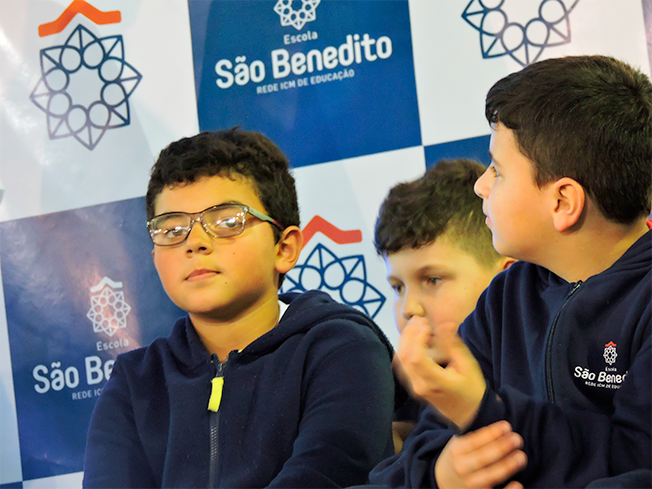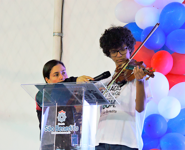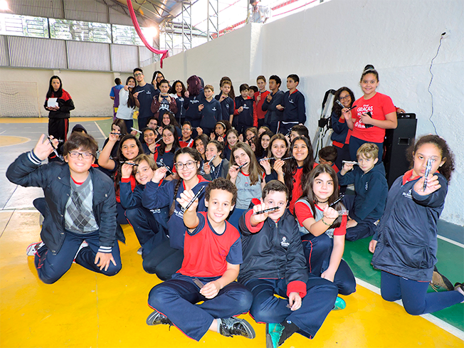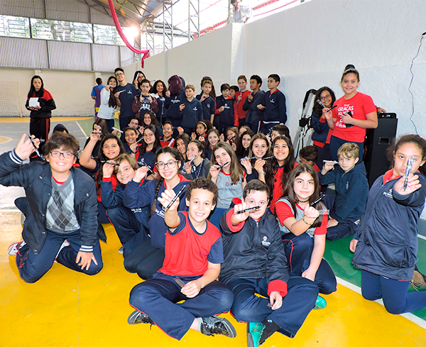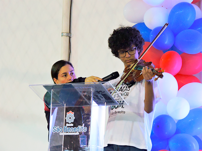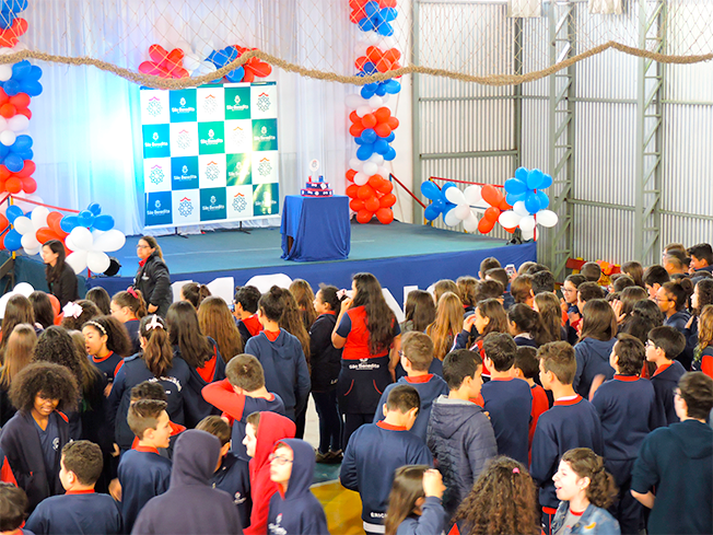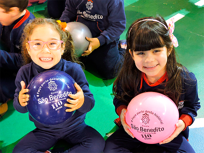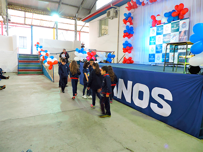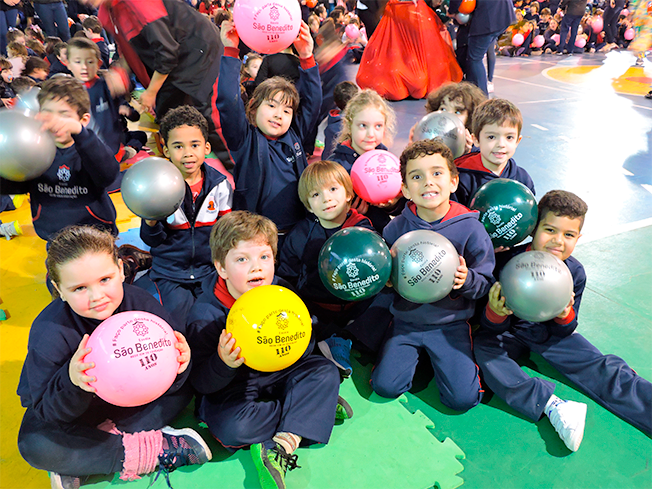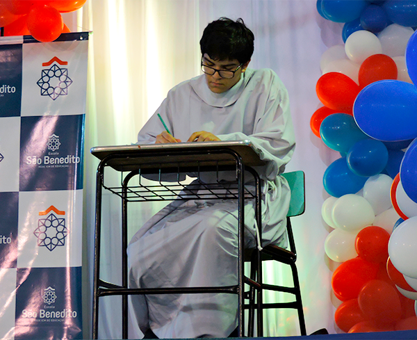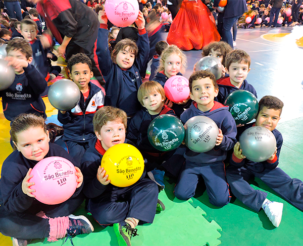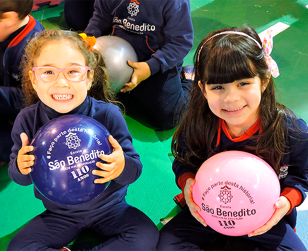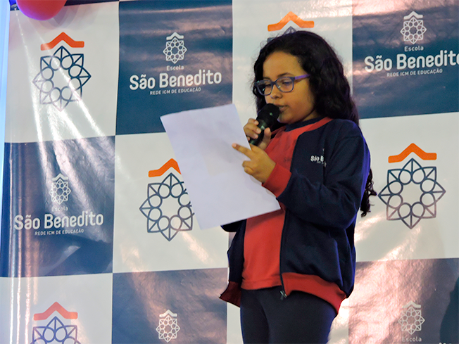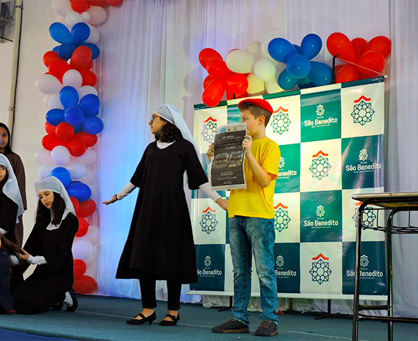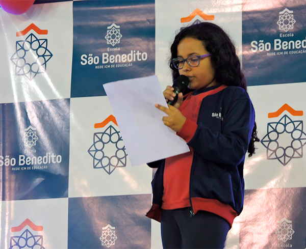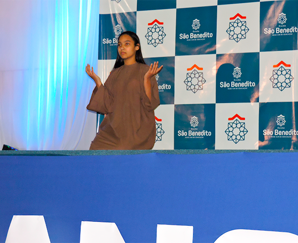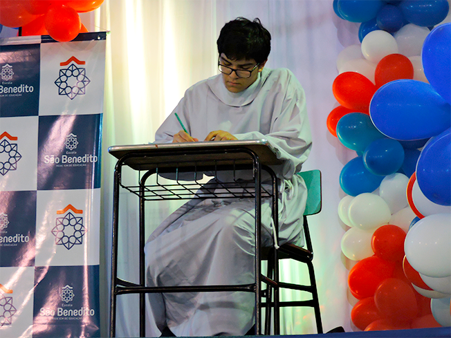 Depois dos parabéns, os alunos recebram um presente personalizado, para que pudessem lembrar da importância que cada um tem na existência da Escola, e do quão especiais são para o São Benedito.