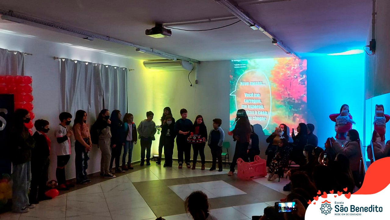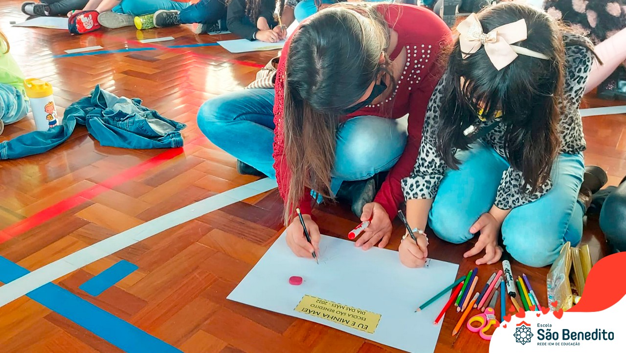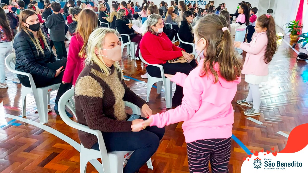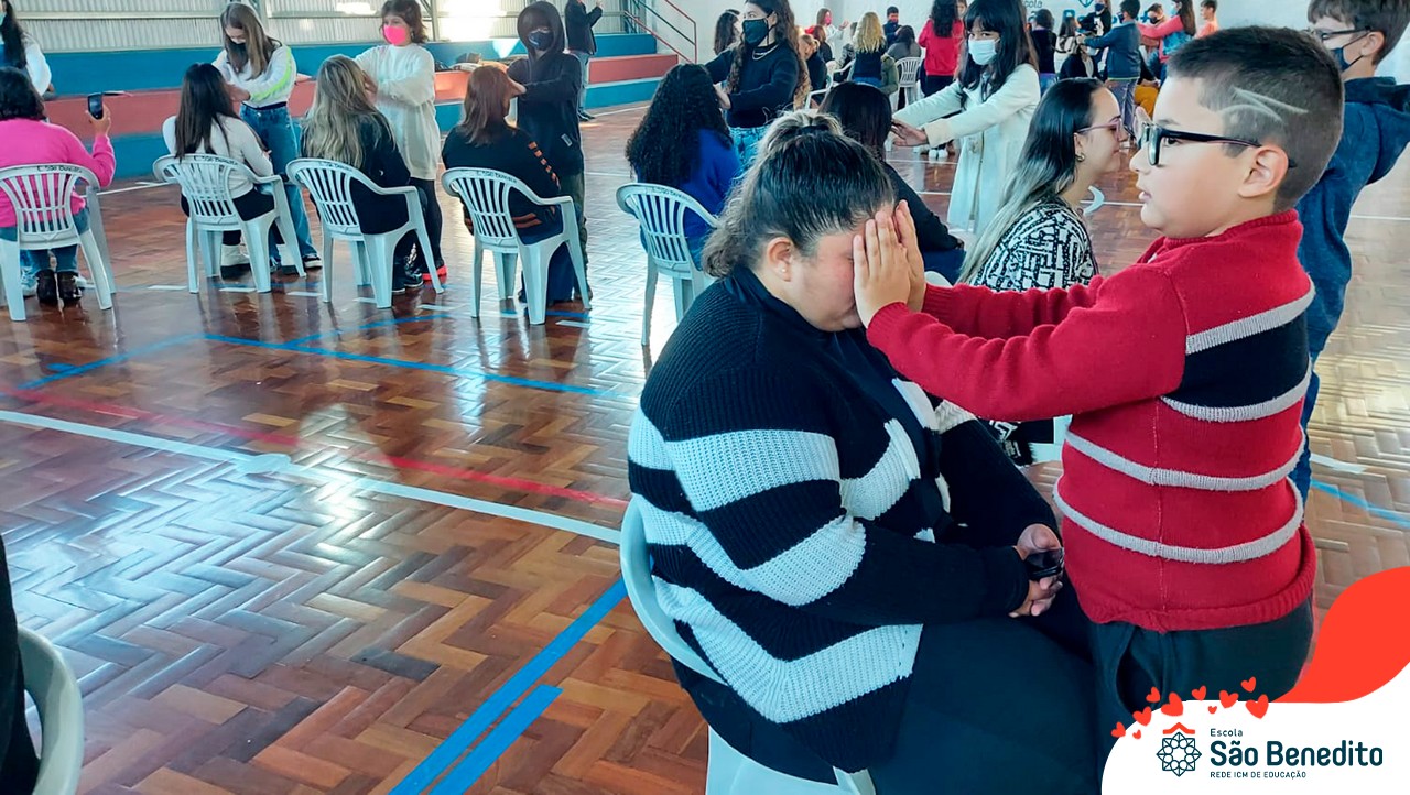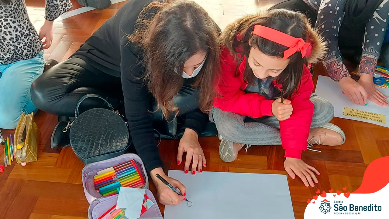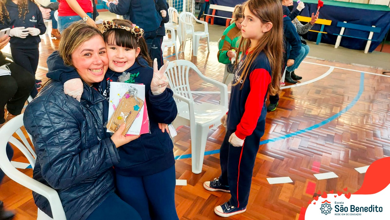 As tardes e manhãs foram recheadas de carinho em forma de apresentações e atividades com as mamães, que até mostraram seus talentos artísticos em conjunto com os estudantes, por meio de lindos desenhos. Também vivemos momentos de muita gratidão pela vida de cada mãe, seja ela de sangue ou de coração, e também por aquelas que já foram ser anjinhas no Céu.