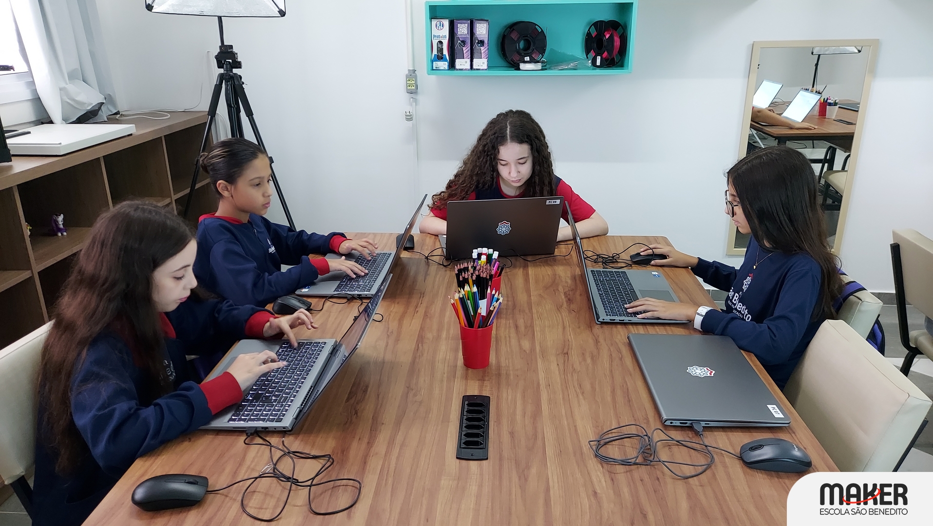 No dia 1º de abril, as portas do Espaço Maker reabriram para receber os novos e antigos membros da equipe de inventores do São Benedito. Neste ano, o Maker ESB conta com 5 turmas e passa a contemplar em sua proposta, estudantes do 5º Ano.
